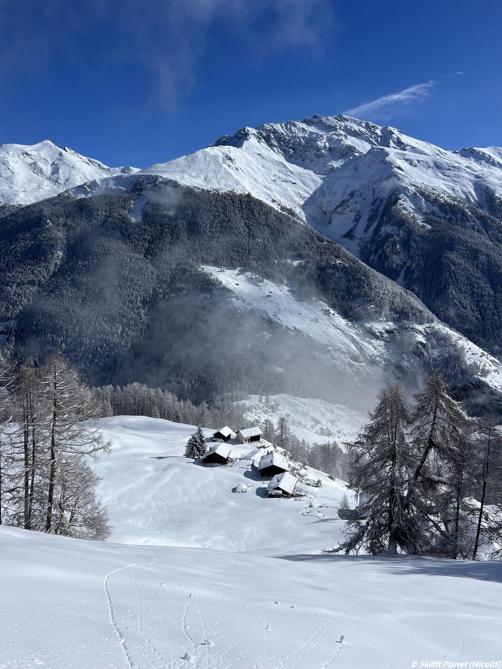 Ich bin mit Tourenskiern von Les Haudères nach La Terraz gestiegen, wunderschön. Danach 1-2 Abfahrten mit dem Skilift La Forclaz (es war "viel" los). Dann Skiabfahrt nach Les Haudères. Der Schnee war ziemlich schwer, aber dennoch recht gut zum Skifahren geeignet.