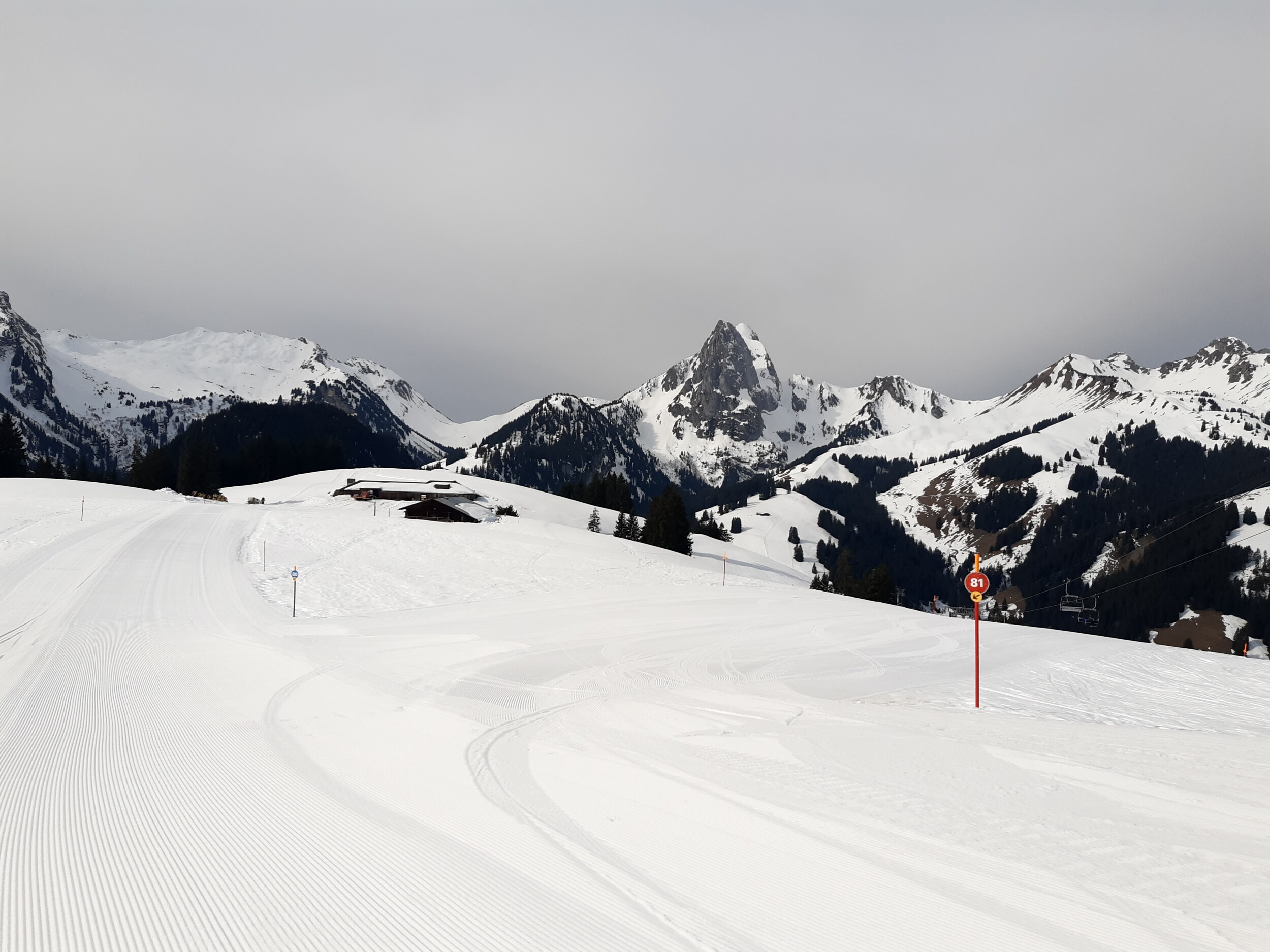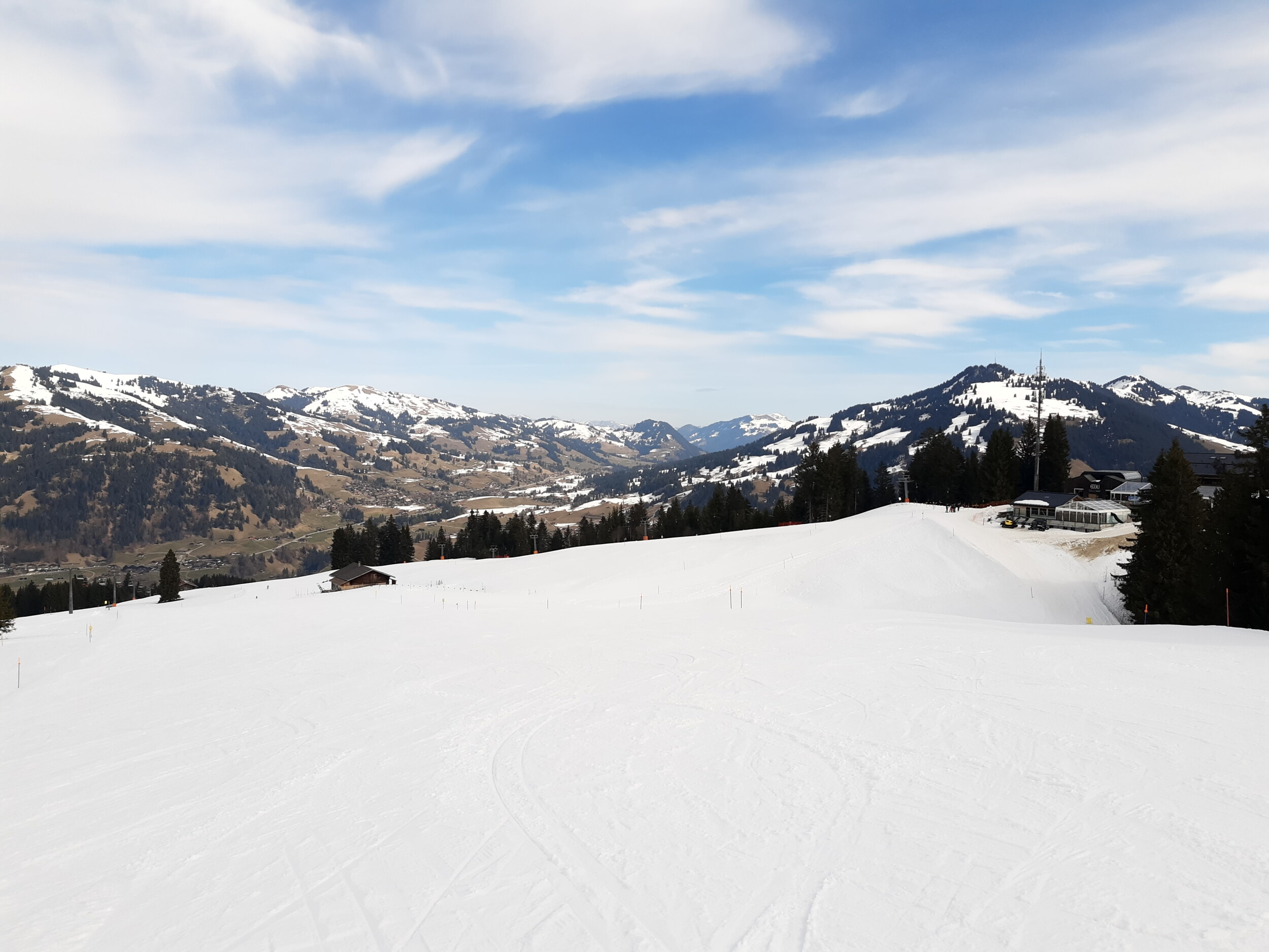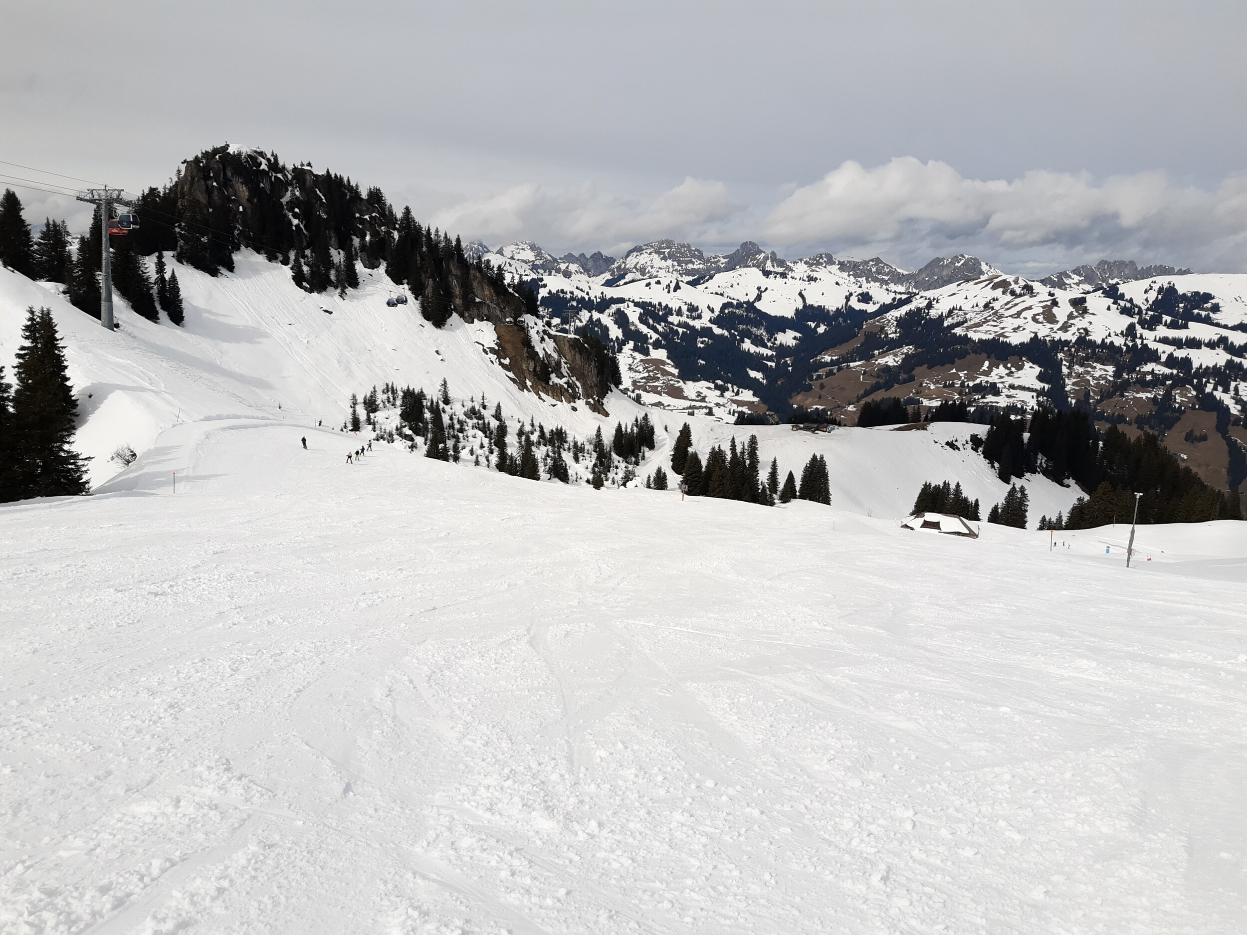 Naja, es ist ja momentan schon recht warm und die Pisten nachmittags fertig. An Ostern hat die Sonne noch mehr Kraft. Durch die geringe Höhe friert es nachts dann auch meist nicht mehr, so dass ich schon nachvollziehen kann, dass man Rougemont schließt. Es ist einfach zu wenig los. Darum reduziert Gstaad das Angebot ja in der späteren Saison. Gefällt mir zwar nicht, aber es ist nachvollziehbar. Die wenigen Skifahrer werden dann in Saanenmöser gebündeln, wobei man hier unverständlich mit dem Kunstschnee an vielen Pistenabschnitten knausrig ist. Hier gibt es wesentlich mehr schlechte Stellen mit Steinen und Dreck.