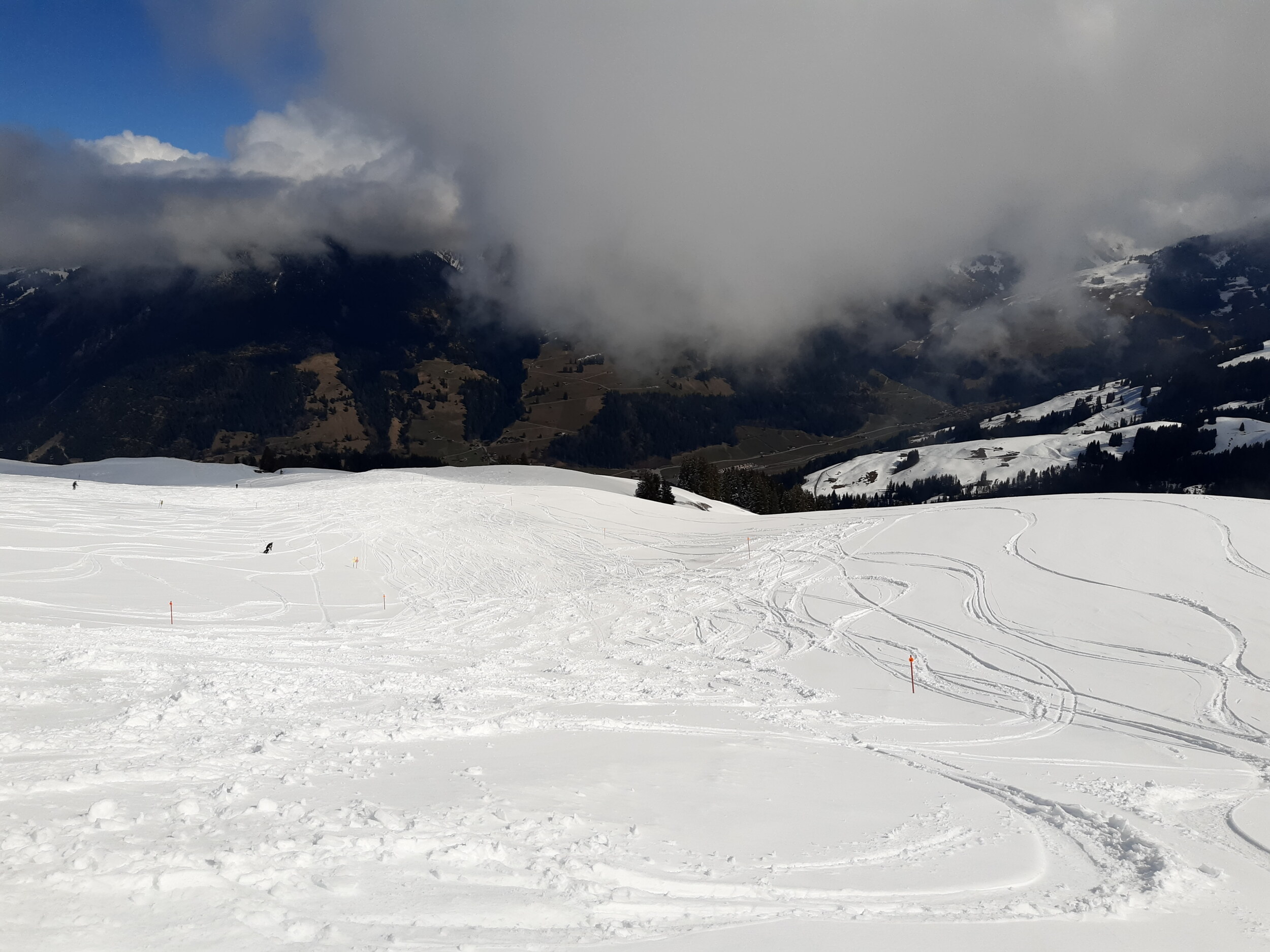 Die besten Pisten gab es mit Abstand an der zweiten Sektion der Rinderbergbahn. Hier war man auch wirklich komplett einsam unterwegs. Mir unverständlich, denn es war mit Abstand das Beste des Tages. Das Teilgebiet kann ich bei der Challenge irgendwie nicht auswählen...