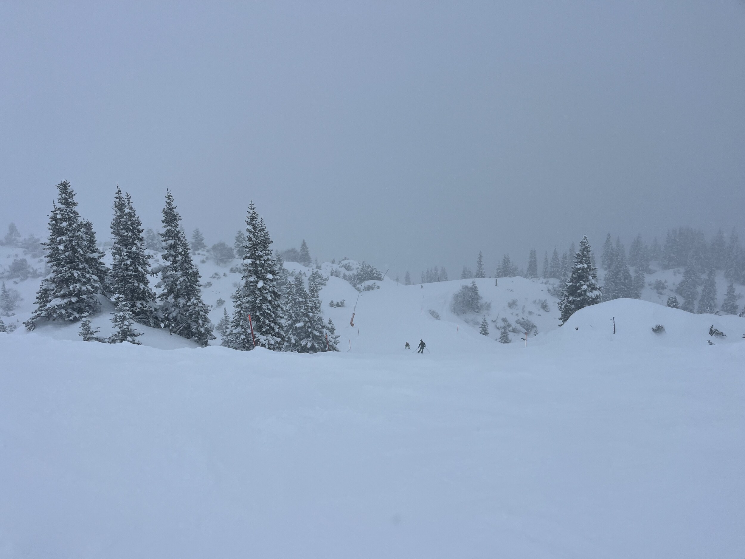 Interessant, wie der viele Neuschnee das Gelände zwischen Nagens und Scansinas geglättet hat. Die Stretg in erstaunlich gutem Zustand, der Tragödienhang mit mässigen Haufen, danach aus gleichem Grund wie oben beschrieben völlig plattgedrückt. Edit 17.30 Uhr: