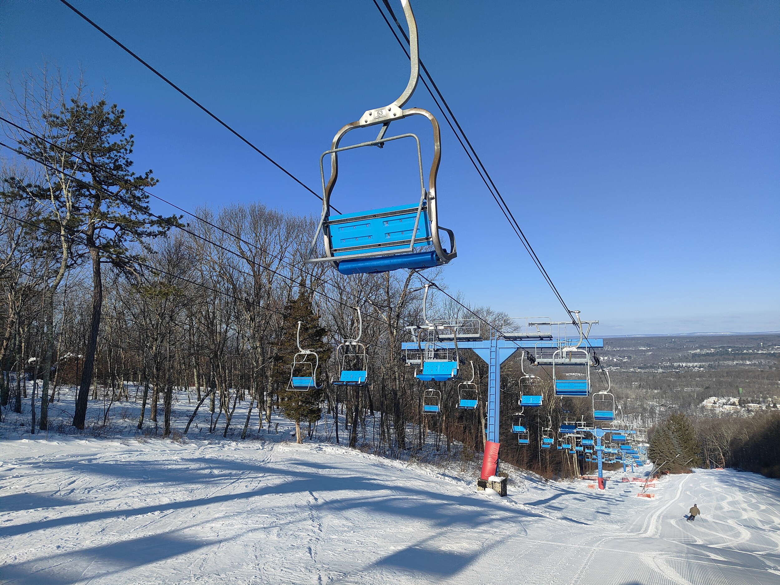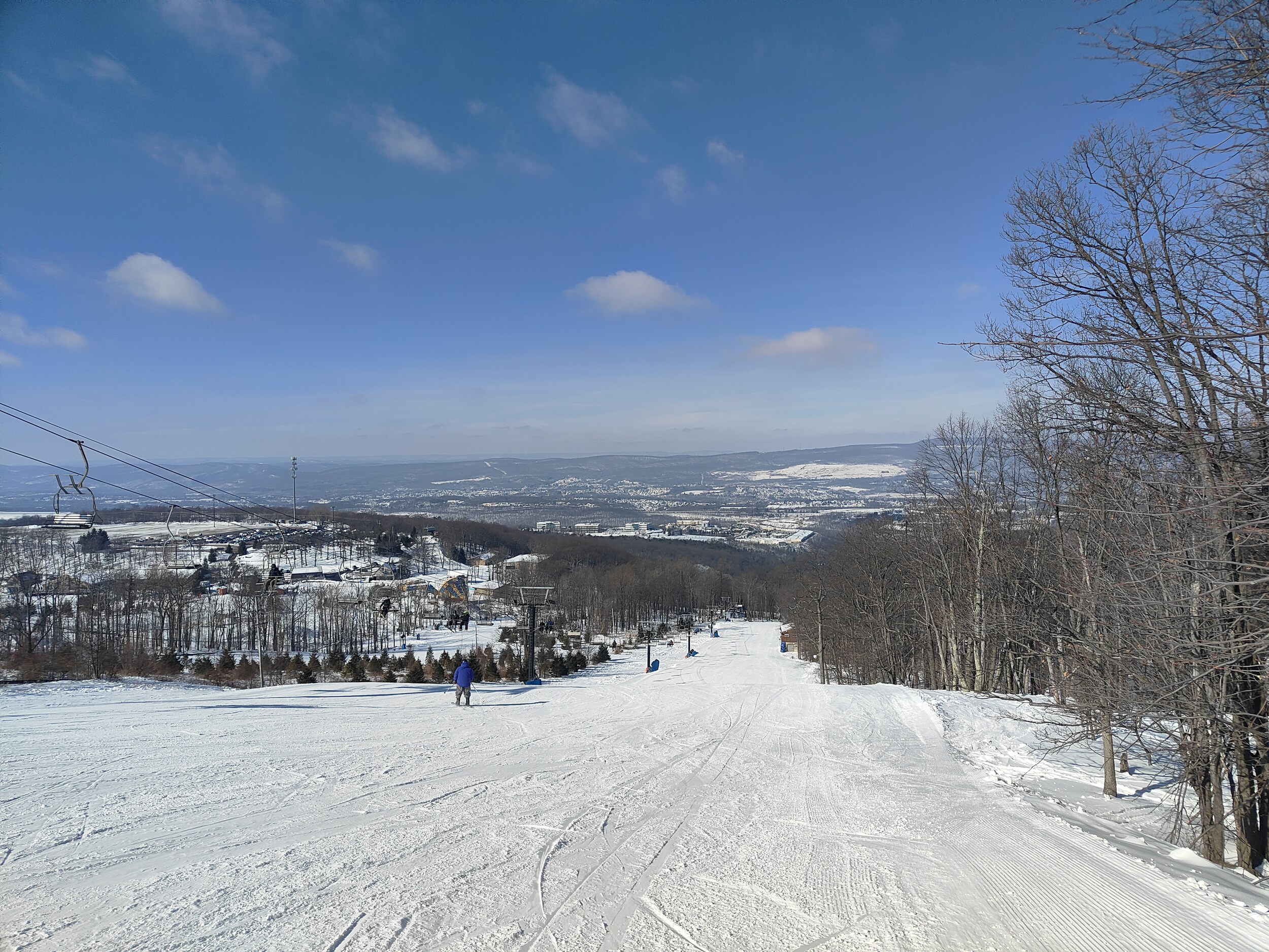 Scranton hat The Office, einen Ex-US-Präsidenten, war die erste Stadt mit elektrischer Strassenbahn (Electric City) - Scranton hat aber vor allem ein Skigebiet, das von Downtown in 15 Minuten erreichbar ist. Das Gebiet ist interessant erschlossen: Die (ziemlich coole) Lodge liegt in der Mitte des Gebiets. Von dort aufwärts liegen die einfachen Anfängerpisten, und von der Lodge abwärts führen die anspruchsvolleren Abfahrten in ein engeres Tal hinein, wo zwei Sessellifte wieder hinausführen - einer davon direkt zum Parkplatz. Ziemlich cooles Konzept, kann mir vorstellen, dass es an den Wochenenden hier ziemlich abgeht.