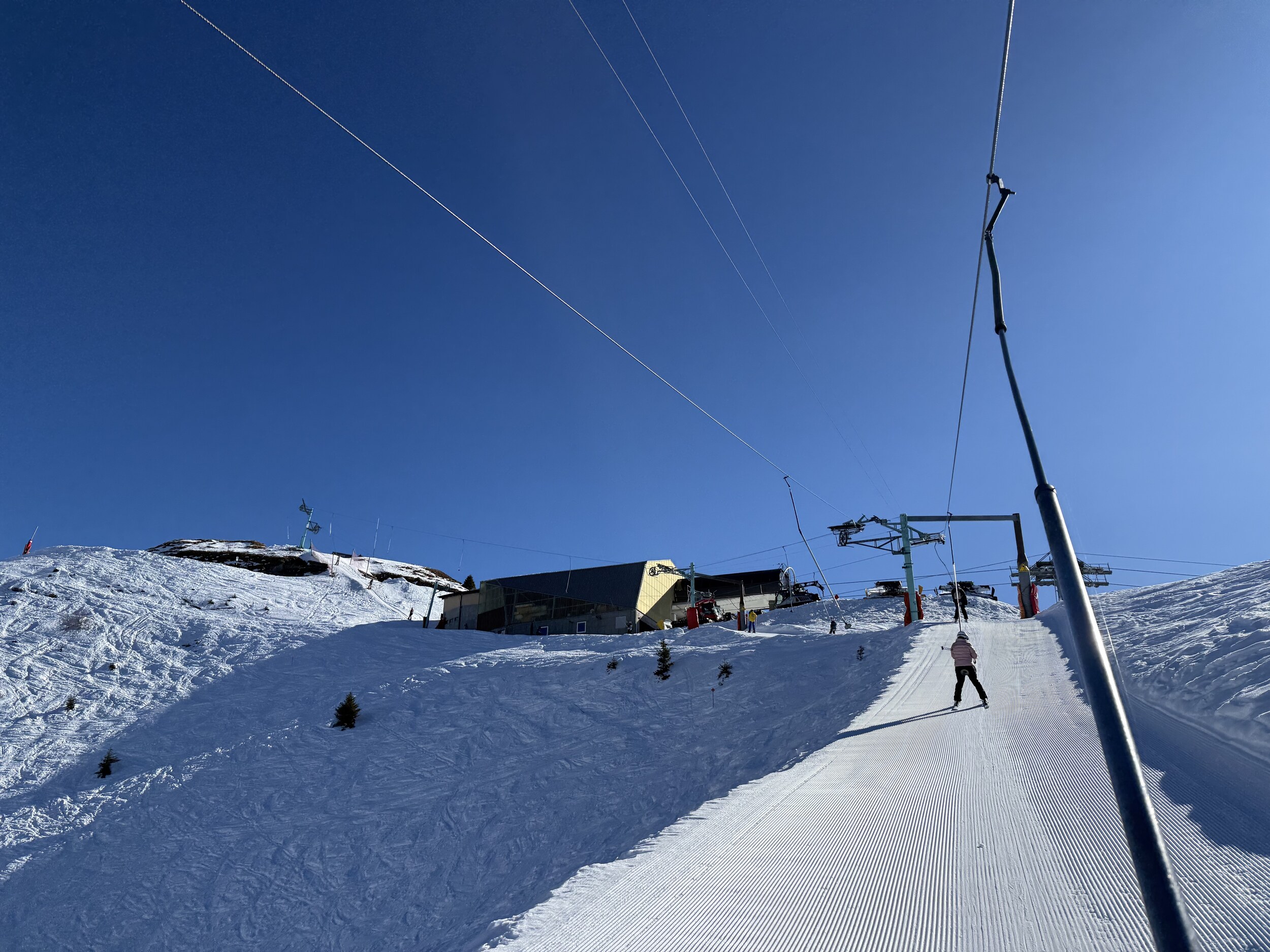 Wie in den vergangenen zwei Tagen auch, starten wir unseren dritten Tag nach eine kurze Abfahrt, am «Fracherets» Schlepper.