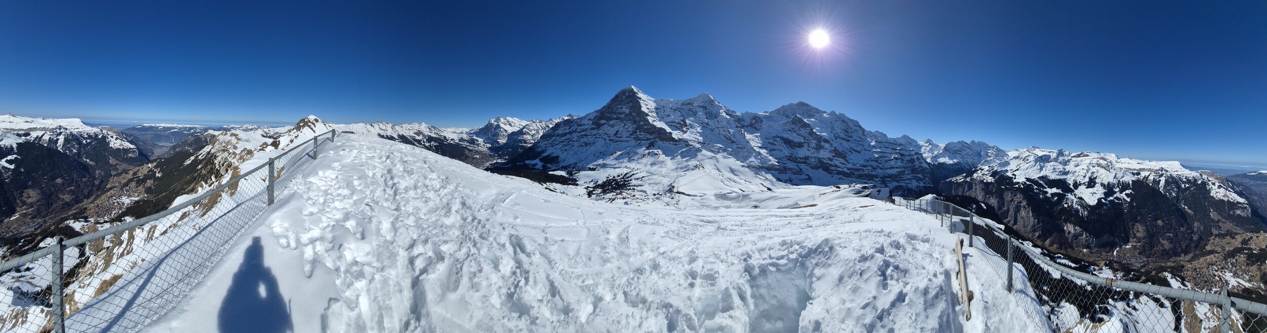 Am Tag der Heimreise wollte ich Mürren noch etwas anschauen und für ein Kaffee und vor allem Panoramofoto ohne Bewölkung nochmals aufs Schilthorn. Voila: