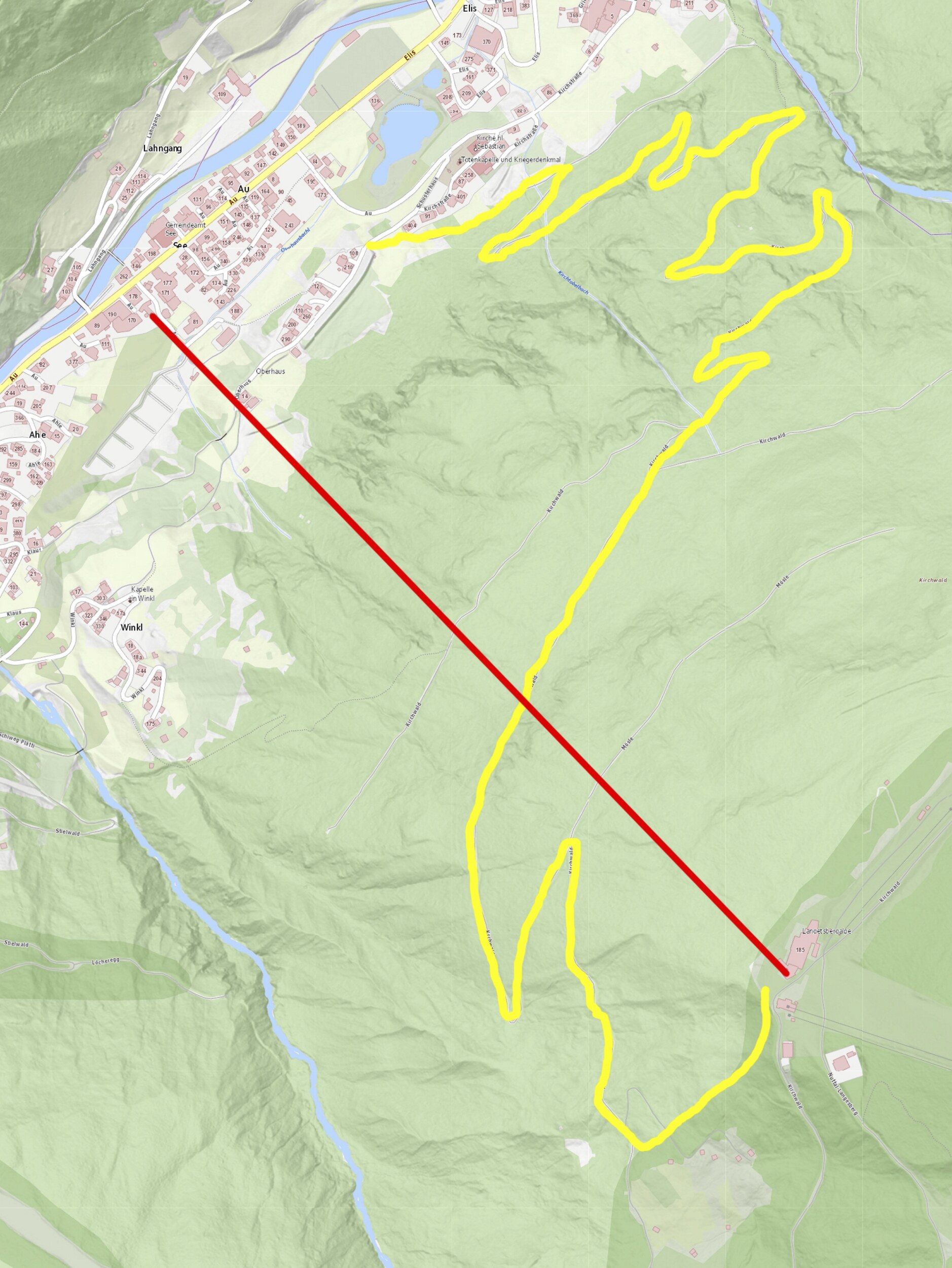 Mehr Höhe /1 Km = steil. Bei harten, eisigen Bedingungen auf jeden Fall Bremsschuhe und möglichst Rodel anstatt Schlitten.