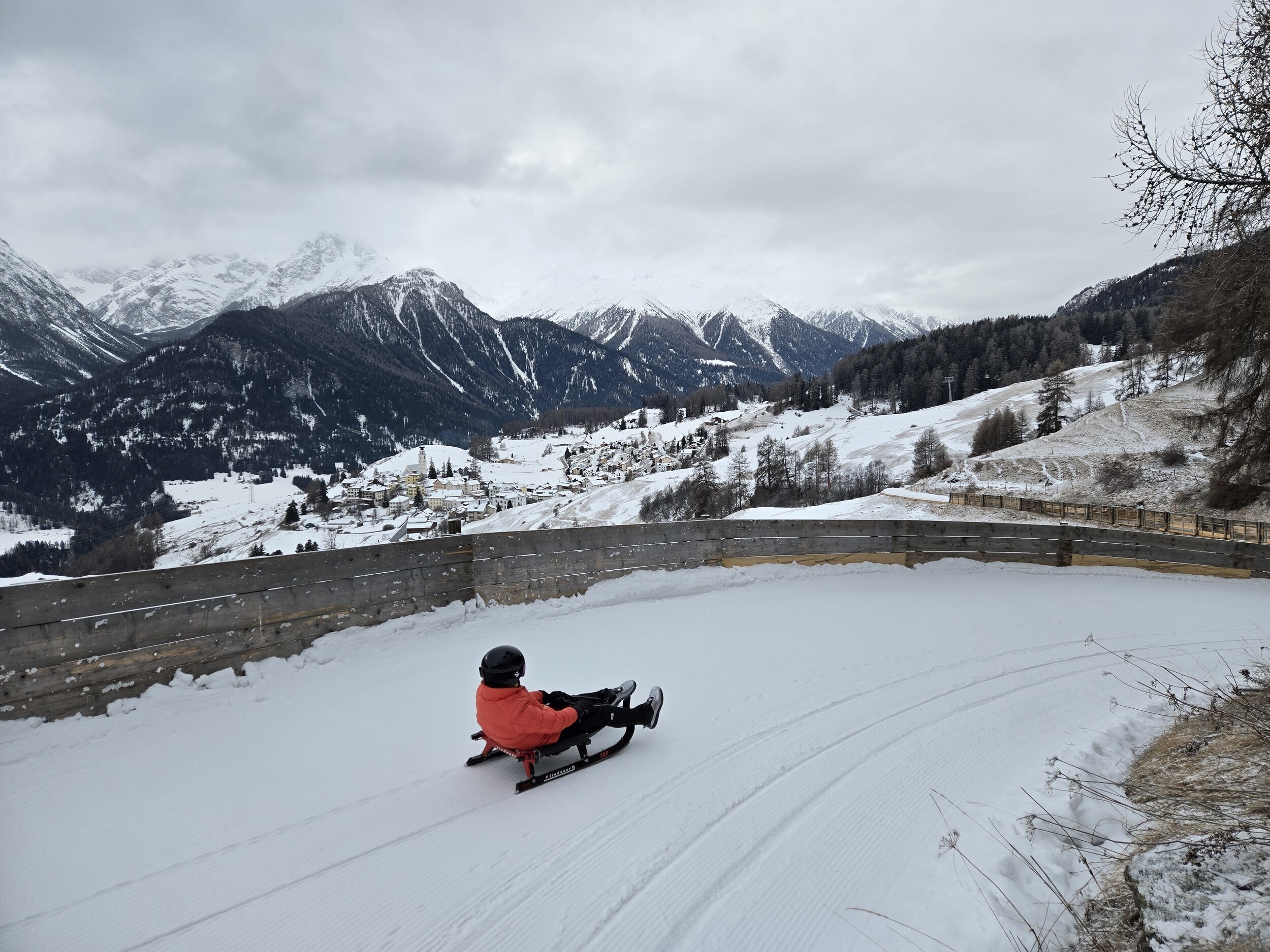 Einen Ausflug machten wir nach See (Paznauntal). Die Bahn ist steil/extrem schnell. Das letzte Stück ist die Rennstrecke des örtl. Rodelvereins. Allerdings ist die Preispolitik für Rodler eine Unverschämtheit (Einzelfahrt 19.-€, 3er-Ticket 57.-€, 6er-Ticket 108.-€. Ein Durchlauf, wenn man die Bahn kennt, dauert etwa 30-40min. Als Tagesticket wird die Skitageskarte zu 67.-€ empfohlen. Ferner haben wir die Rodelbahn in Ftan (Engadin) erkundet. Sie hat uns mit dem Streckenverlauf voll abgeholt. Eine klare Empfehlung. Steile Kurven, Kompression, leichte Kurven, etwas gleiten. Da kam keine Langeweile auf. Tageskarte 31.-Fr.