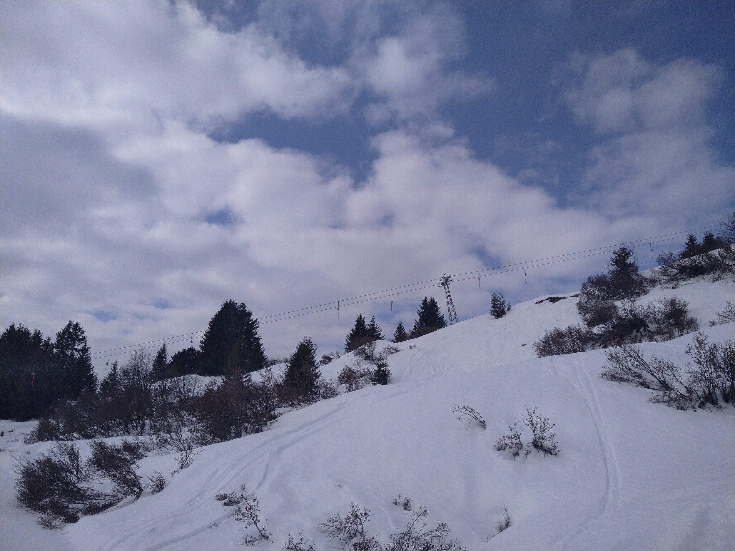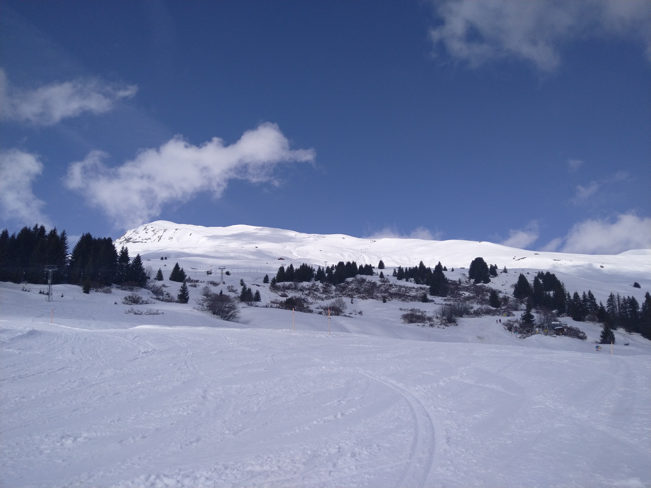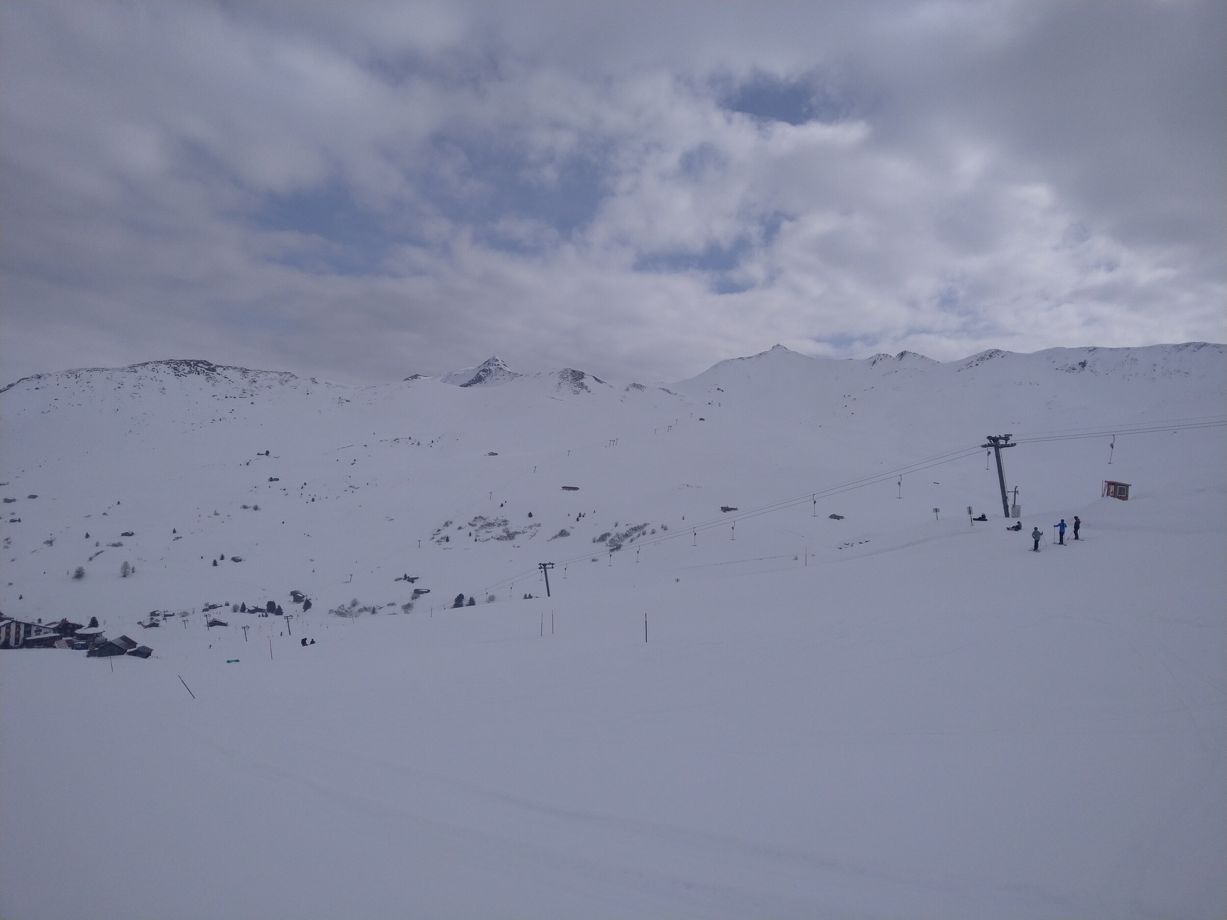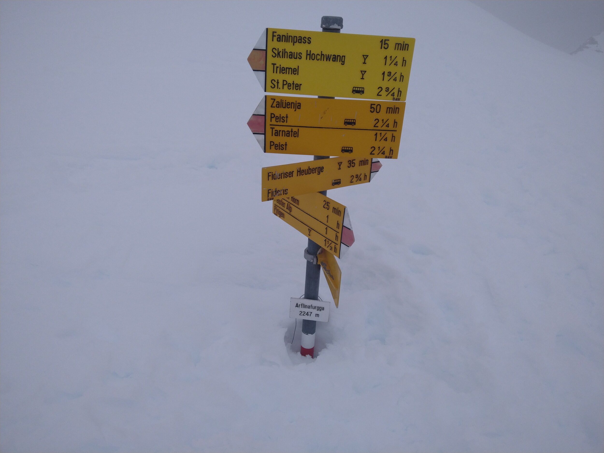Nach acht Skitagen spazieren wir heute auf dem Winterwanderweg von den Fideriser Heubergen Richtung Hochwang Triemel. Auffahrt mit den Heuberg-Bussen von Fideris, Abfahrt mit der Sesselbahn bis Fatschèl, dann mit dem Büsli bis St. Peter Mollinis.