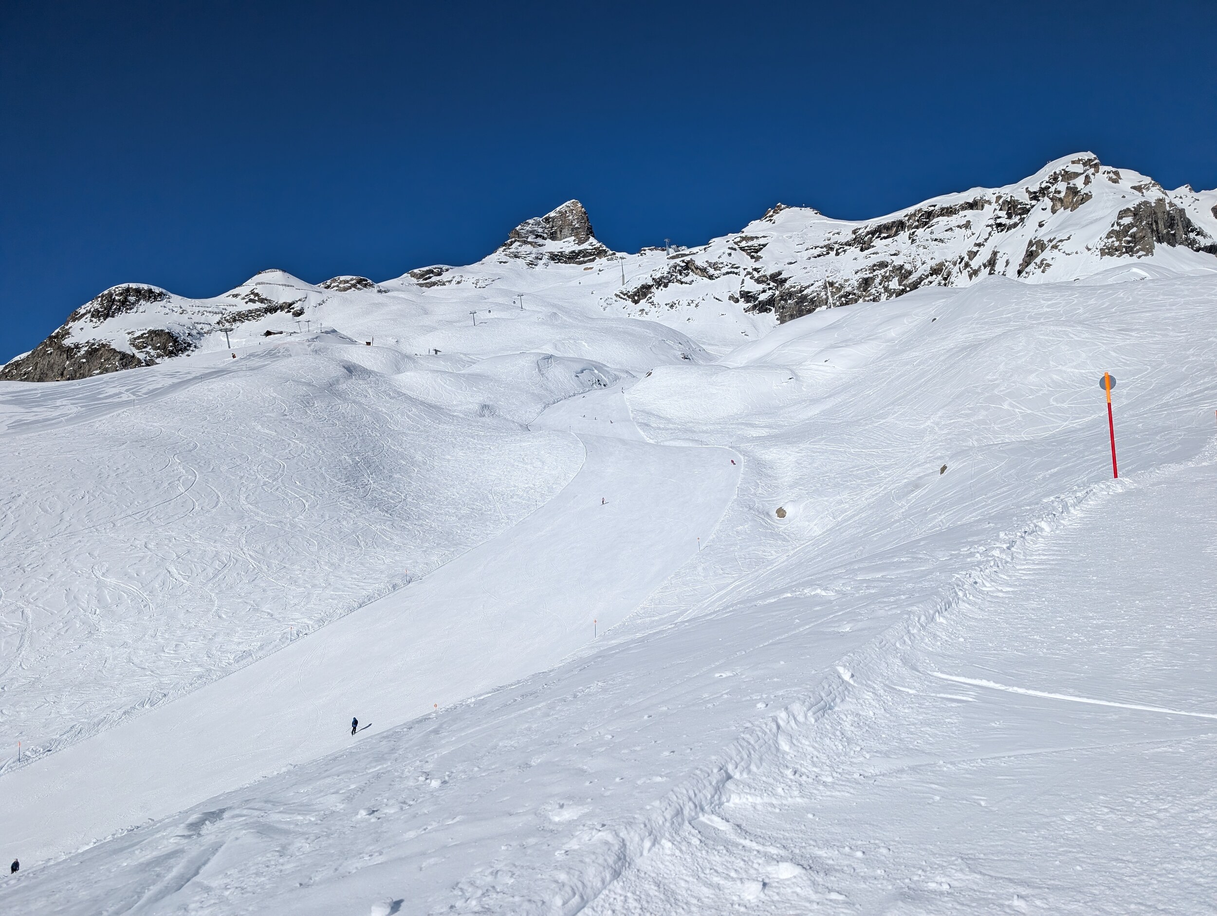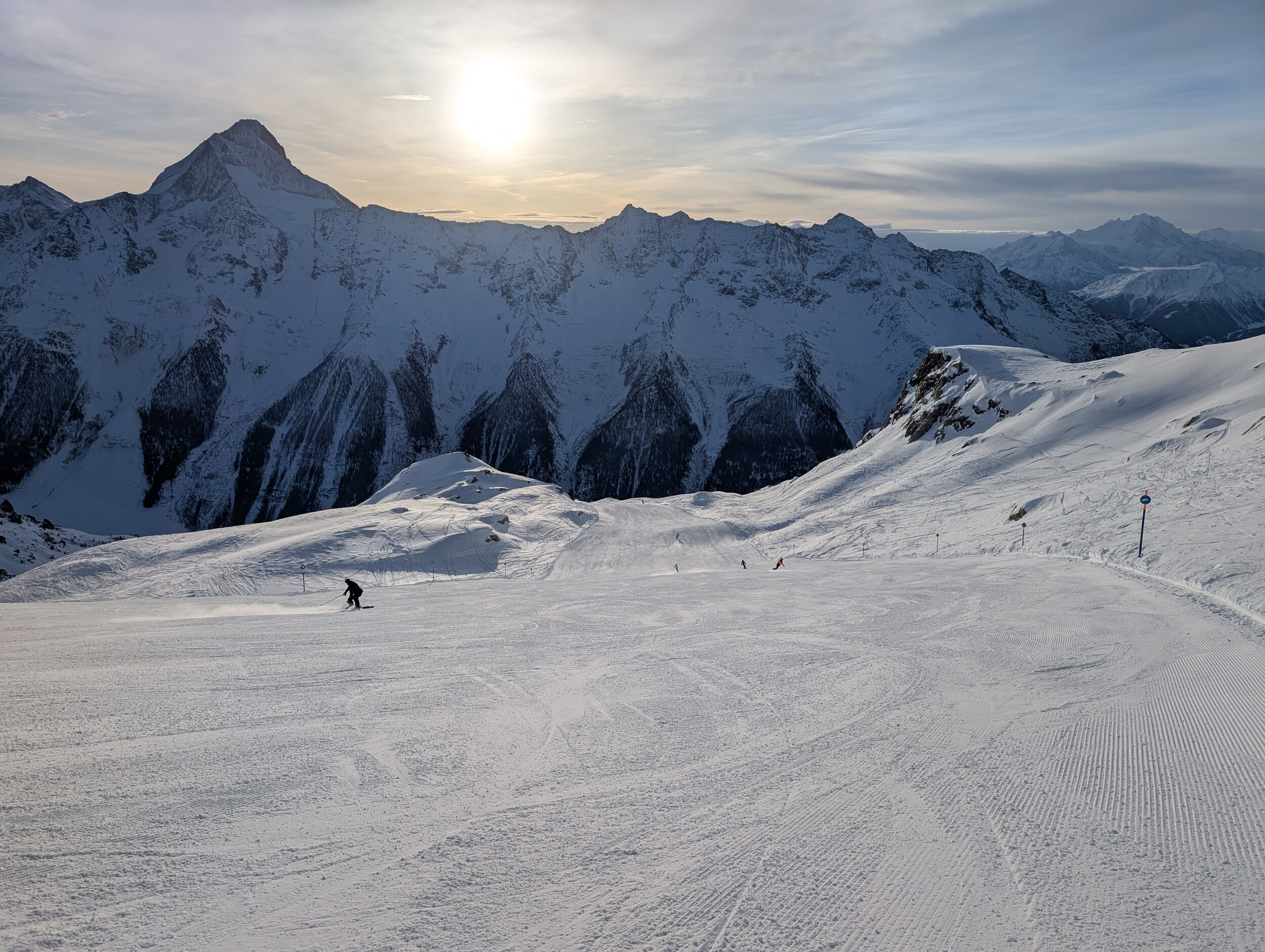 Mittlerweile ist auch die Piste Milibach offen. Auch der Trail zum Lötschenpass öffnet morgen. Die Verhältnisse sind angesichts der Schneemengen gut und der Andrang hält sich noch in Grenzen.