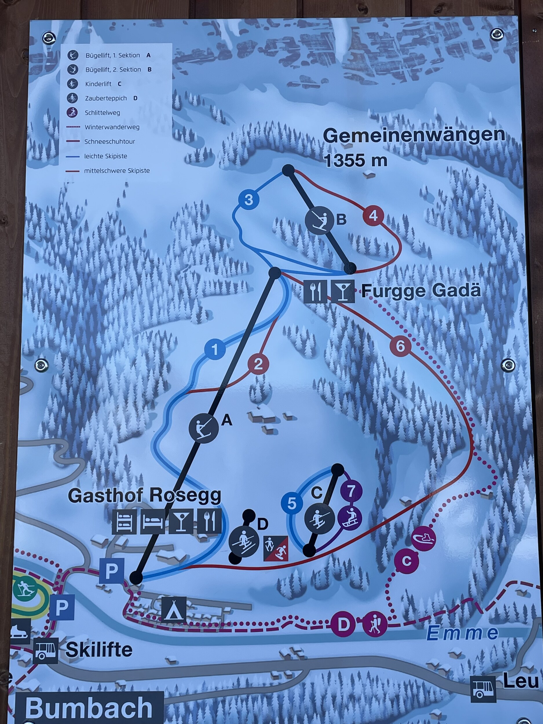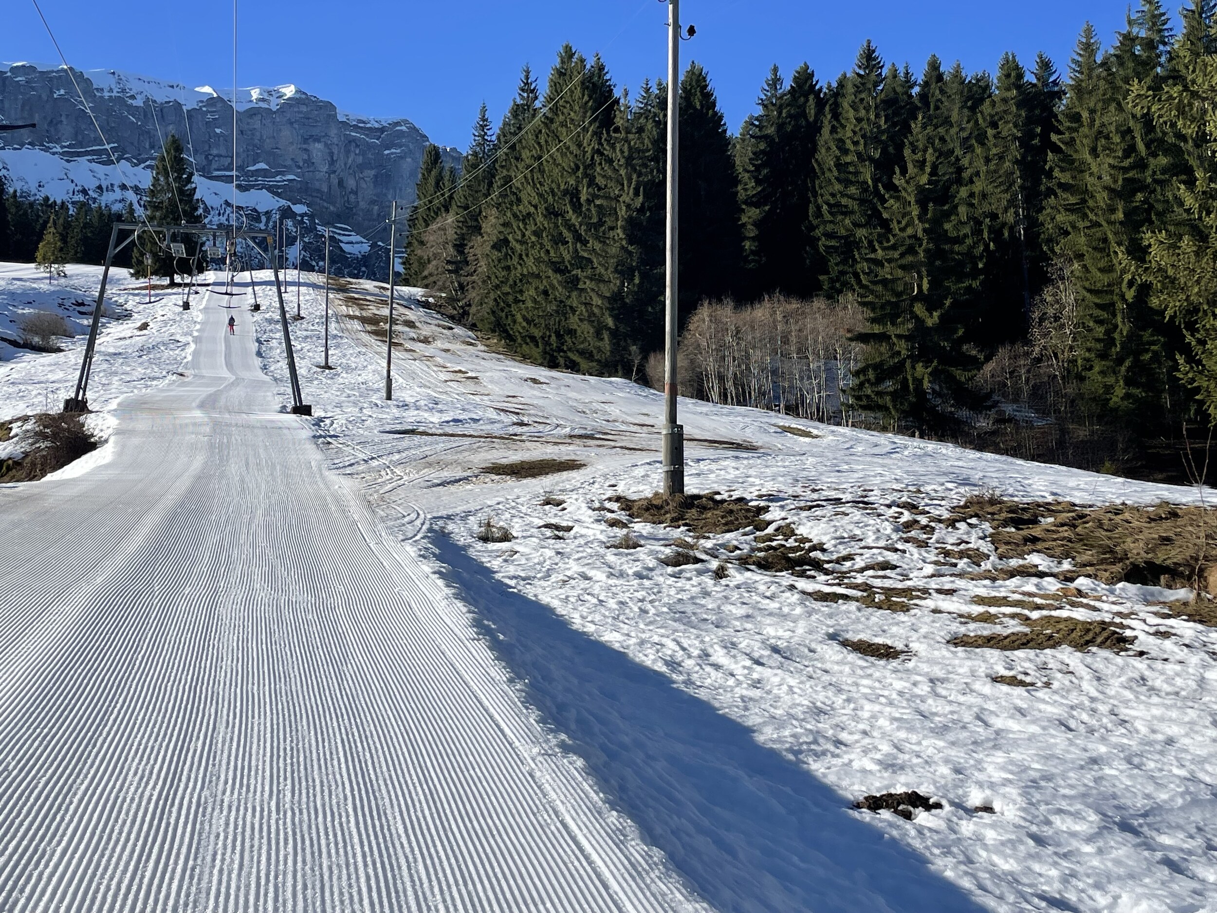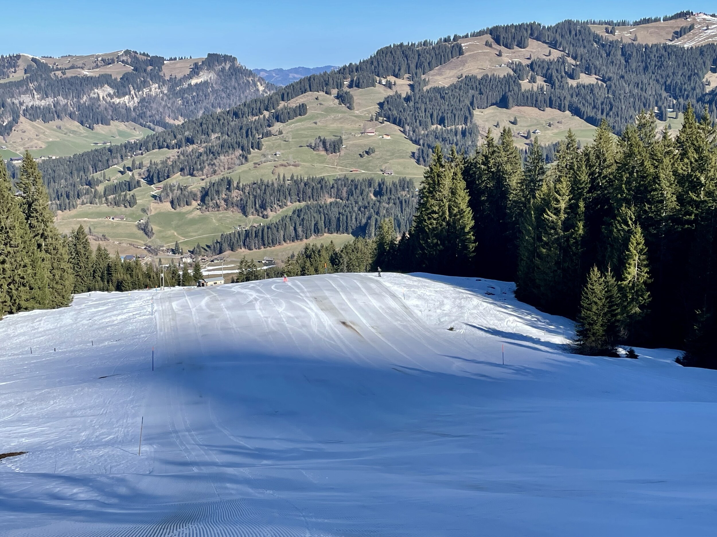 Heute war ich im Heimgebiet von Beat Feuz. Hat mir gut gefallen, herzig und heimelige Atmosphäre. Ich muss wieder kommen, wenn alle Pisten offen sind. Momentan sind leider nur die zwei beschneiten Hauptpisten an den SL‘s offen. Mit der bescheidenen Höhenlage von rund 900-1‘370 müM ist das bei der heissen Temperaturen doch beachtlich. Im Tal war 14Grad am Mittag.
