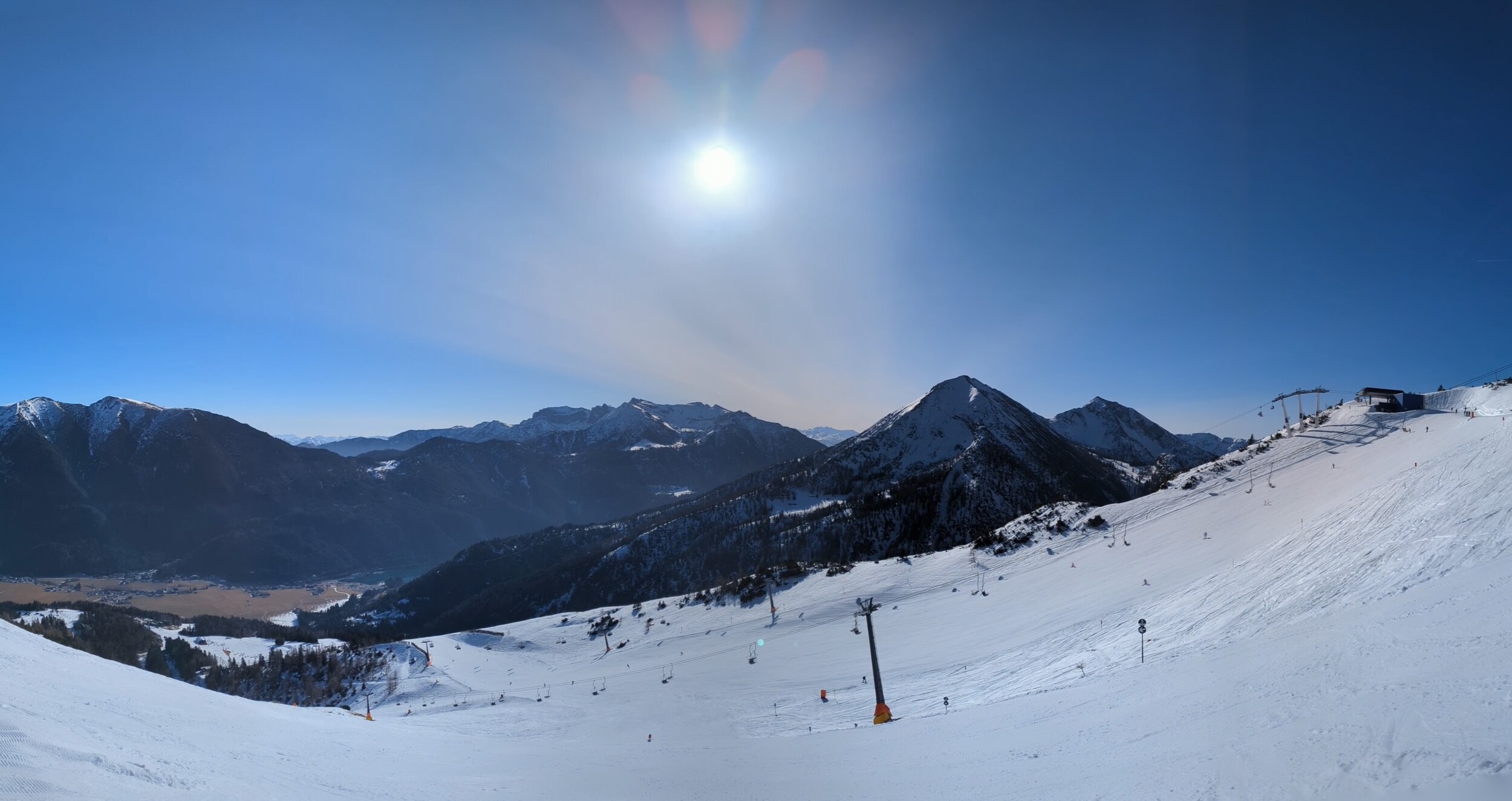 Piste 7: Sieht man auch nicht oft : Blick zum Achensee: Piste 4: Fazit: Ein super Vormittag, so muss Skifahren im März sein und darum liebe ich es! 10 Punkte. Gerne wäre ich nun noch weiter nach Pertisau und Maurach aber dort hat es diesen Winter ja nie Vollbetrieb leider. Daher geht's weiter im Zillertal.