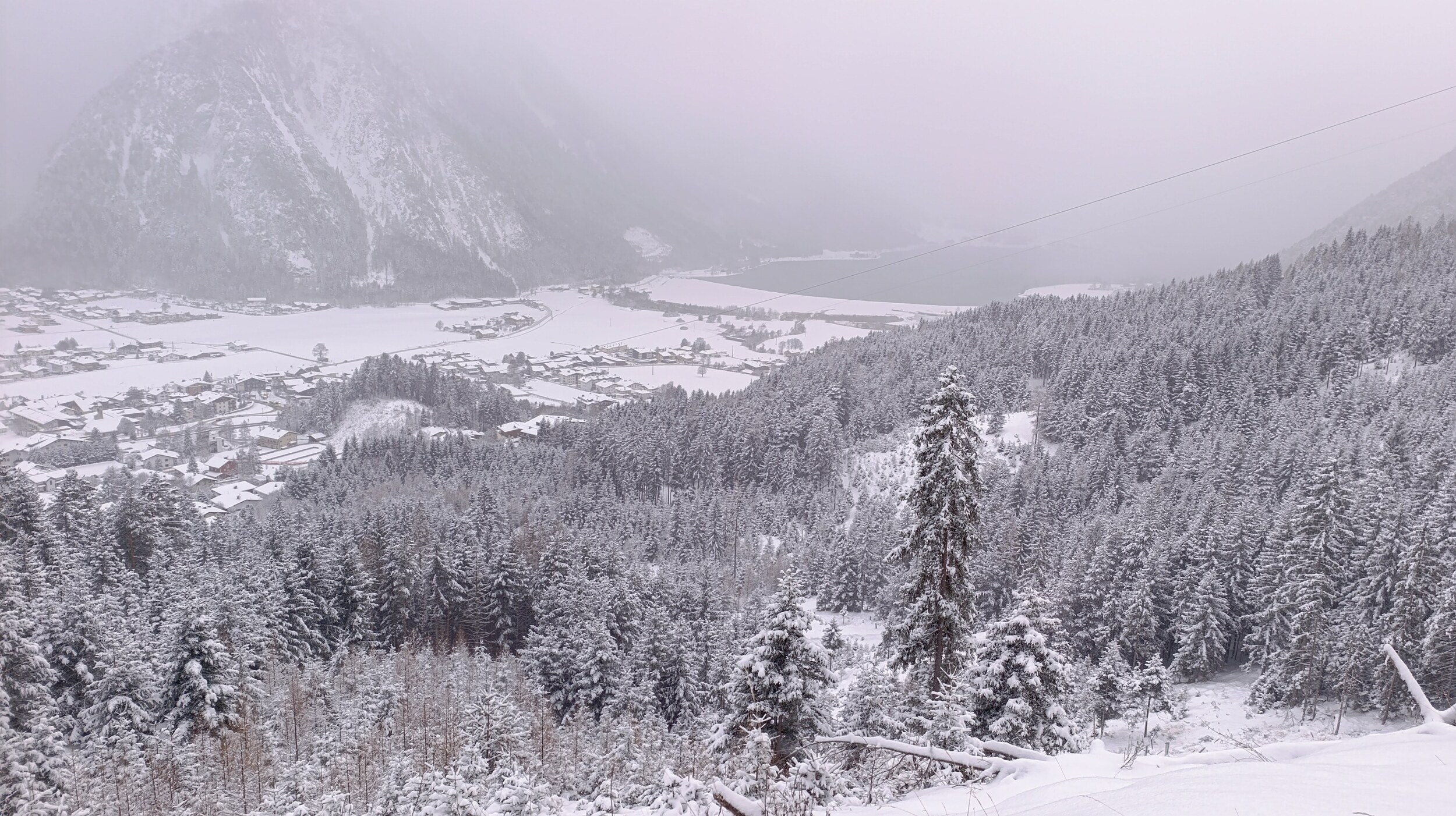 Nachdem der Schneefall immer stärker und mir kalt würde, hab ich ein Nickerchen gemacht und bin zum Rofan weiter gefahren. Zwar ist da fast nix offen, aber ich dachte einmal mit dem Hund die geschlossene Talabfahrt wird schon gehen.