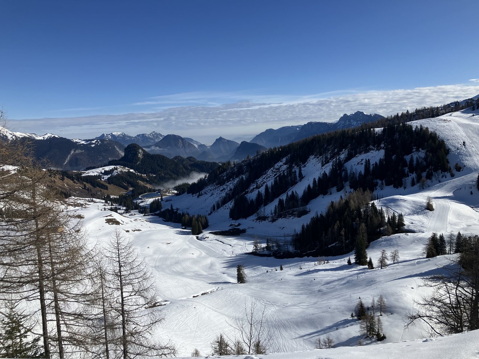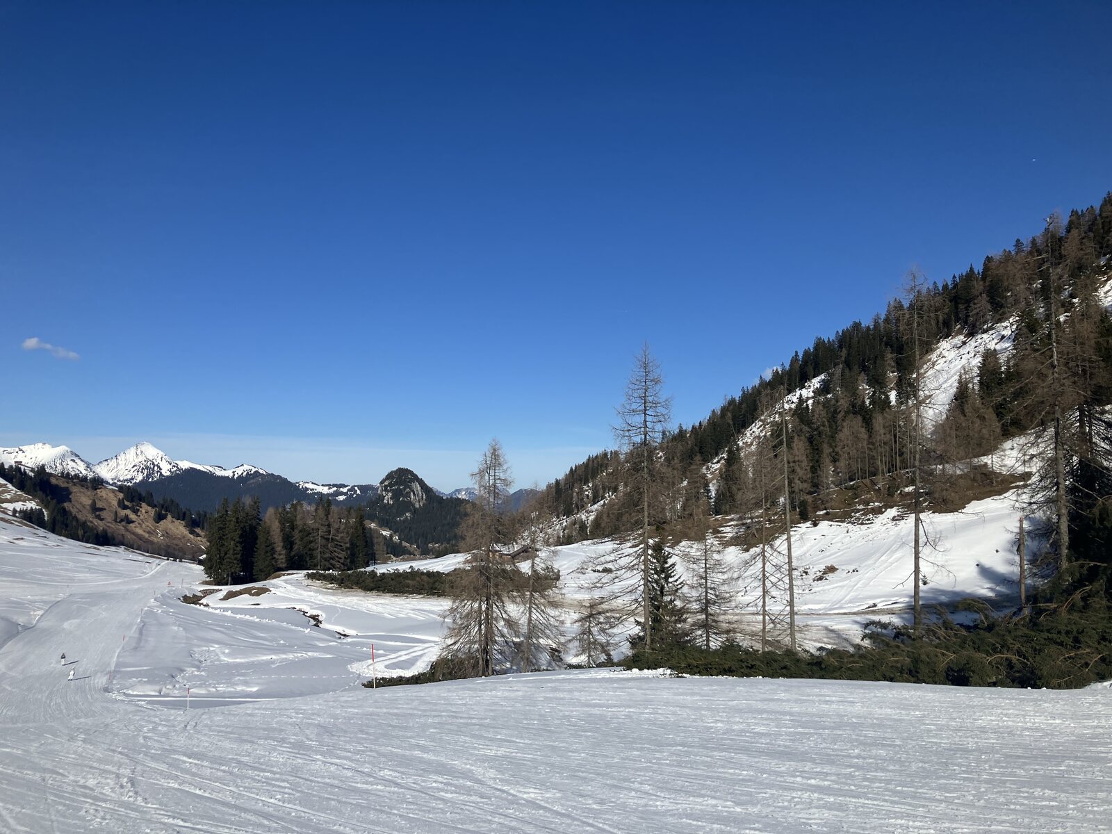 Weiter unten der Bereich, wo Märchenwald schon mit Grubhörndl zusammen getroffen ist. Piste wird weiter links geführt und bleibt damit höher sodass man nicht mehr schieben muss: