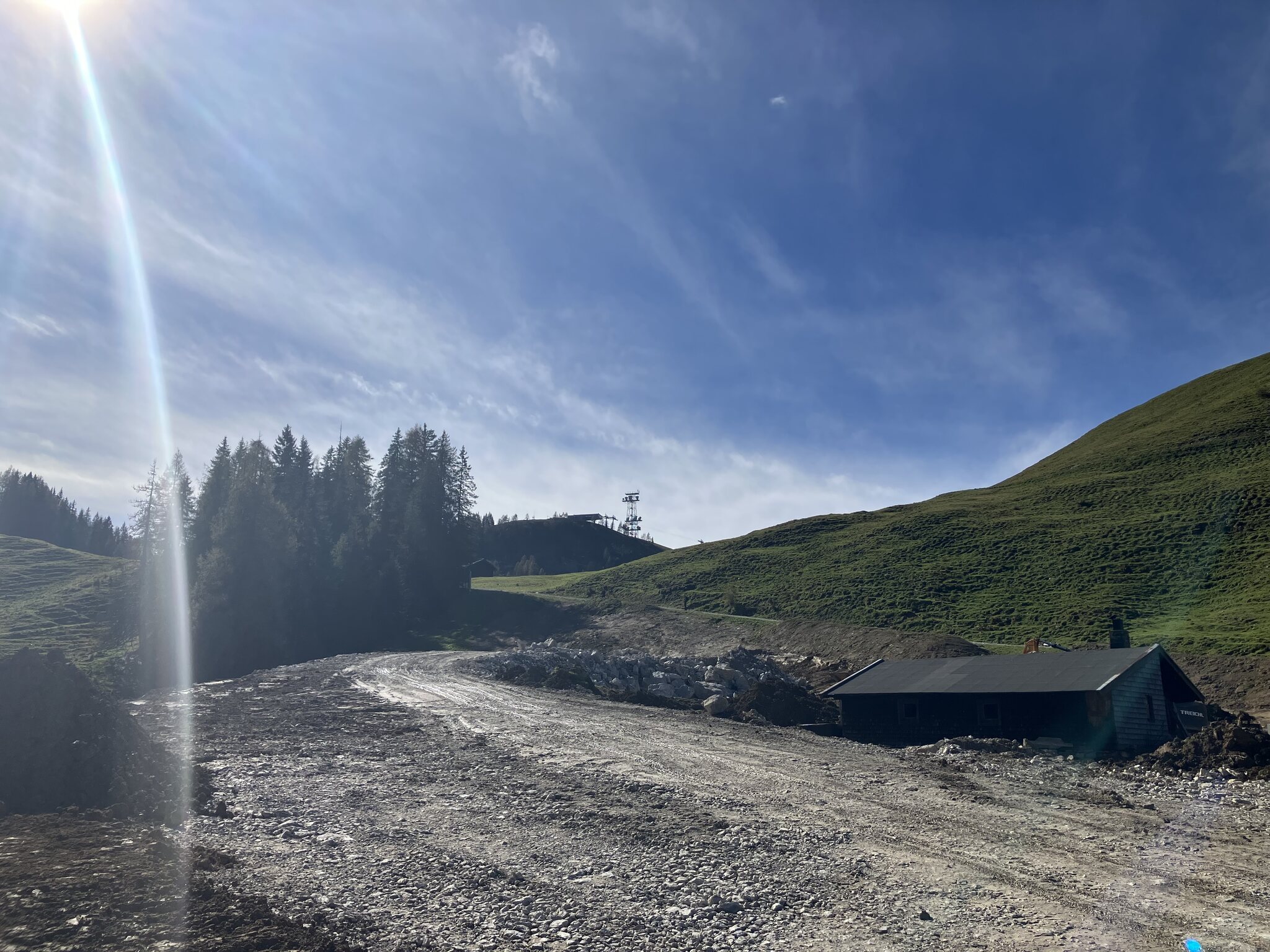 Rechts an der Hütte vorbei ist man in eine Mulde hinein gefahren, unten ging es dann flach weiter. Das wird jetzt aufgefüllt: