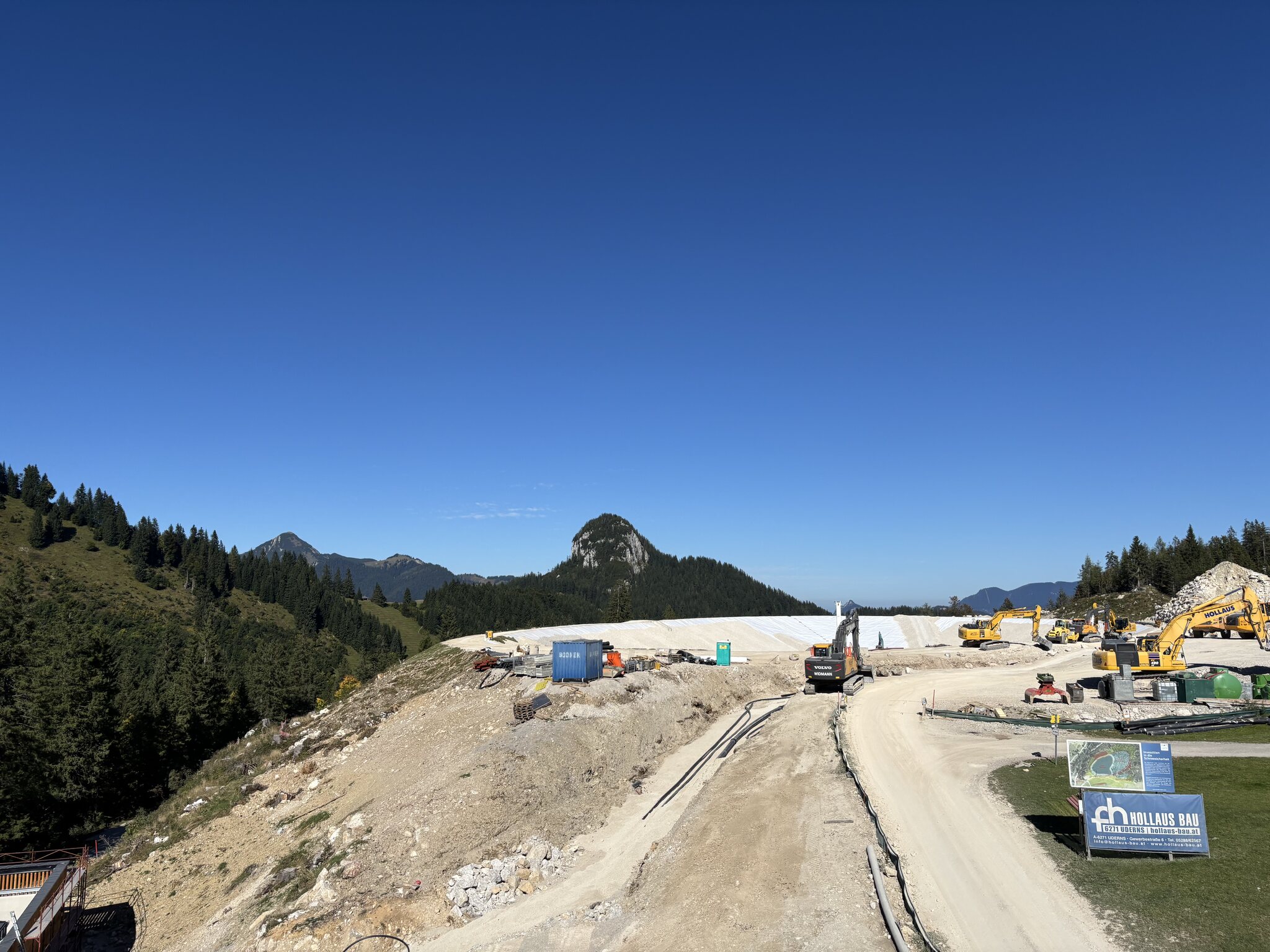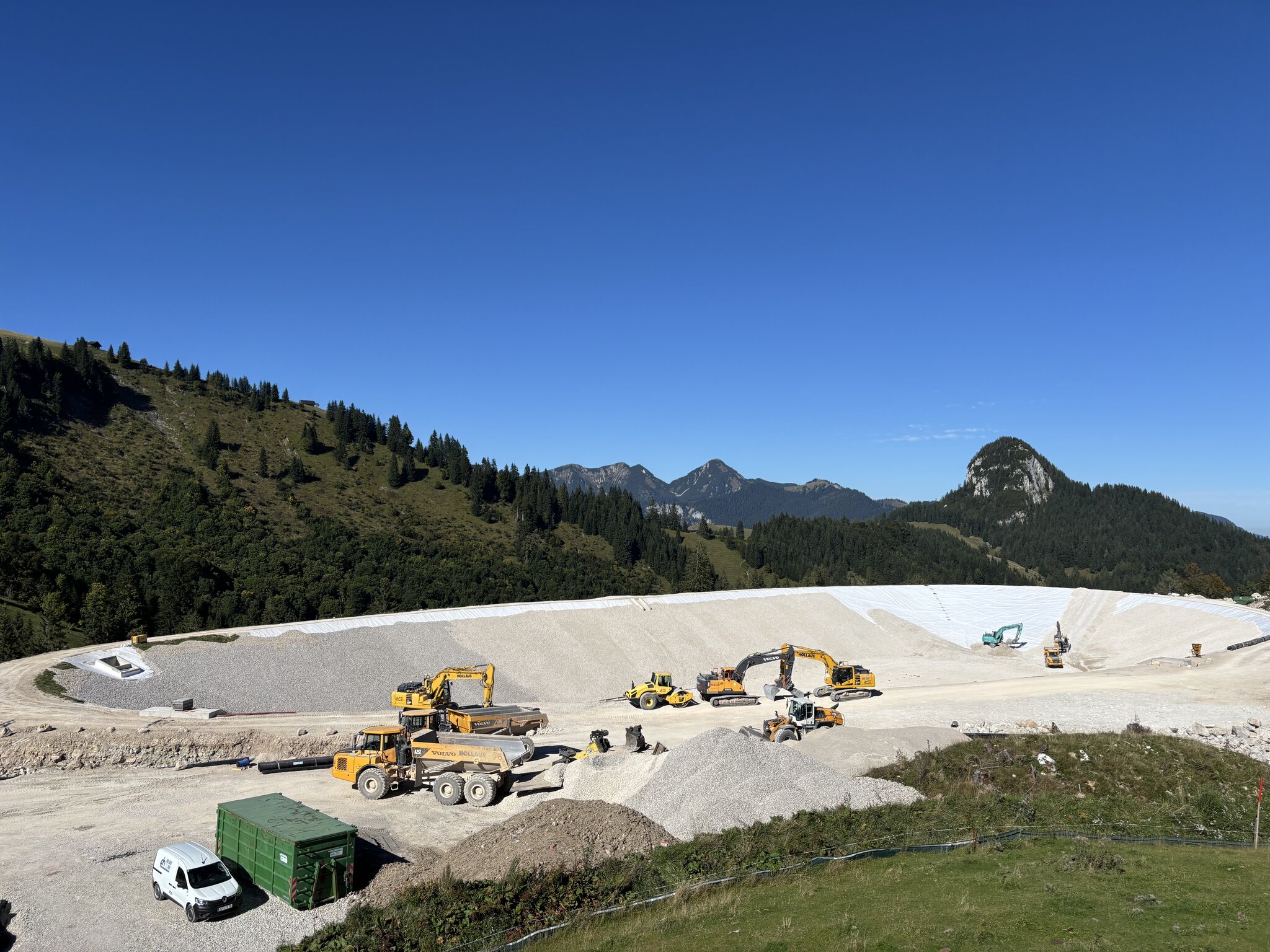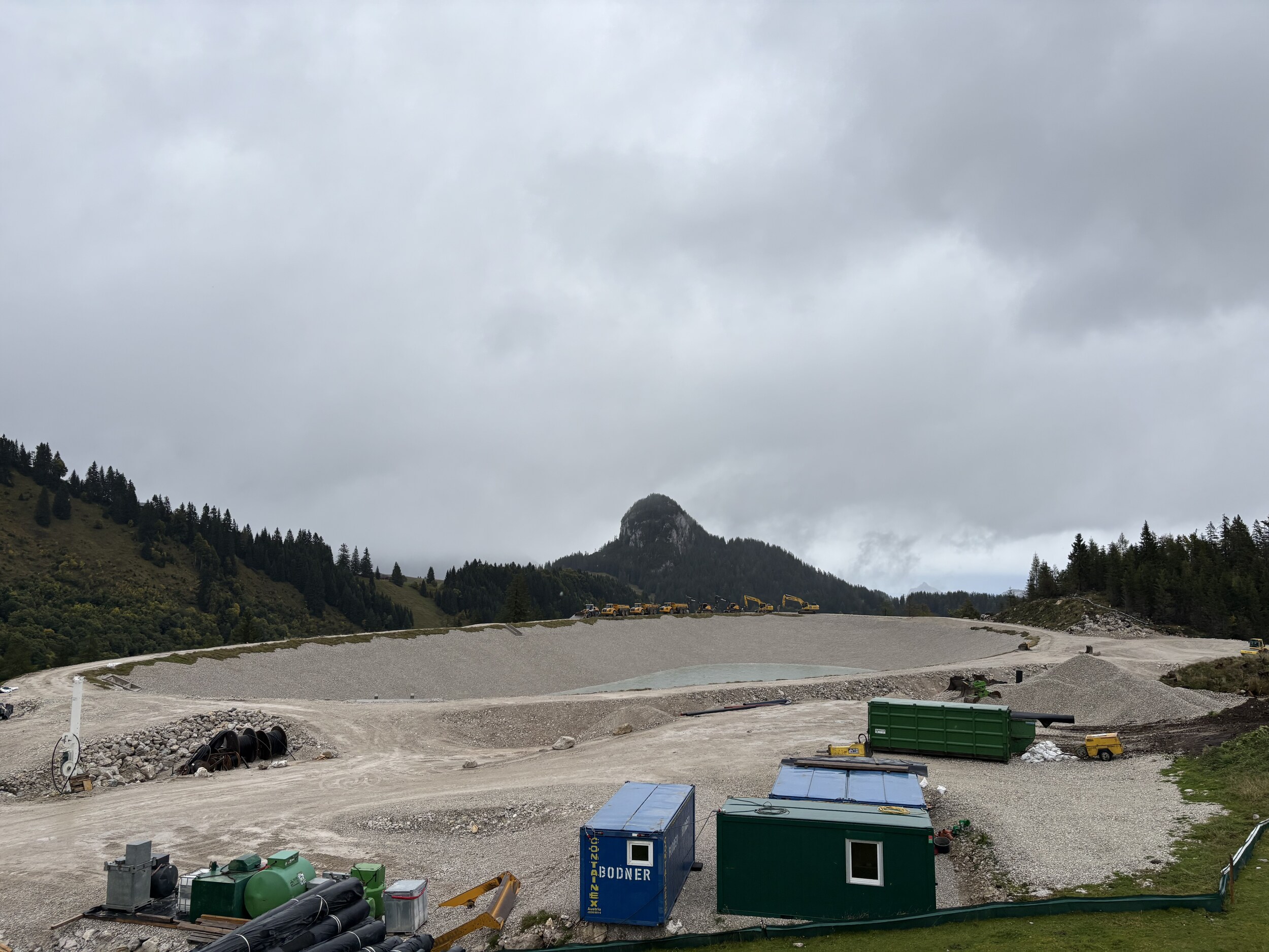 Baustellenupdate von heute. Beim Speicherteich kommt einiges an Material zusammen, was auf der Piste 3 verteilt wird.
