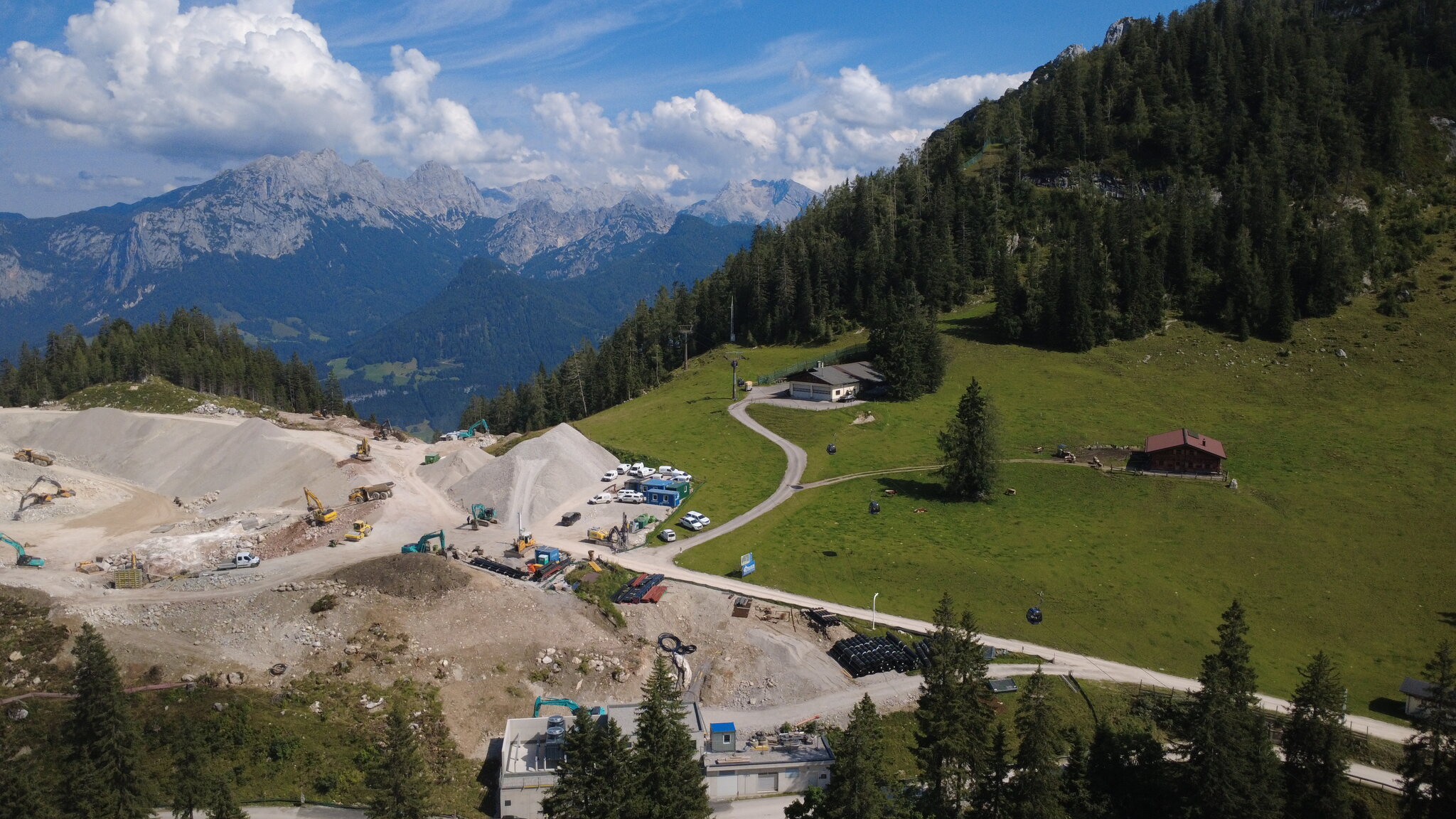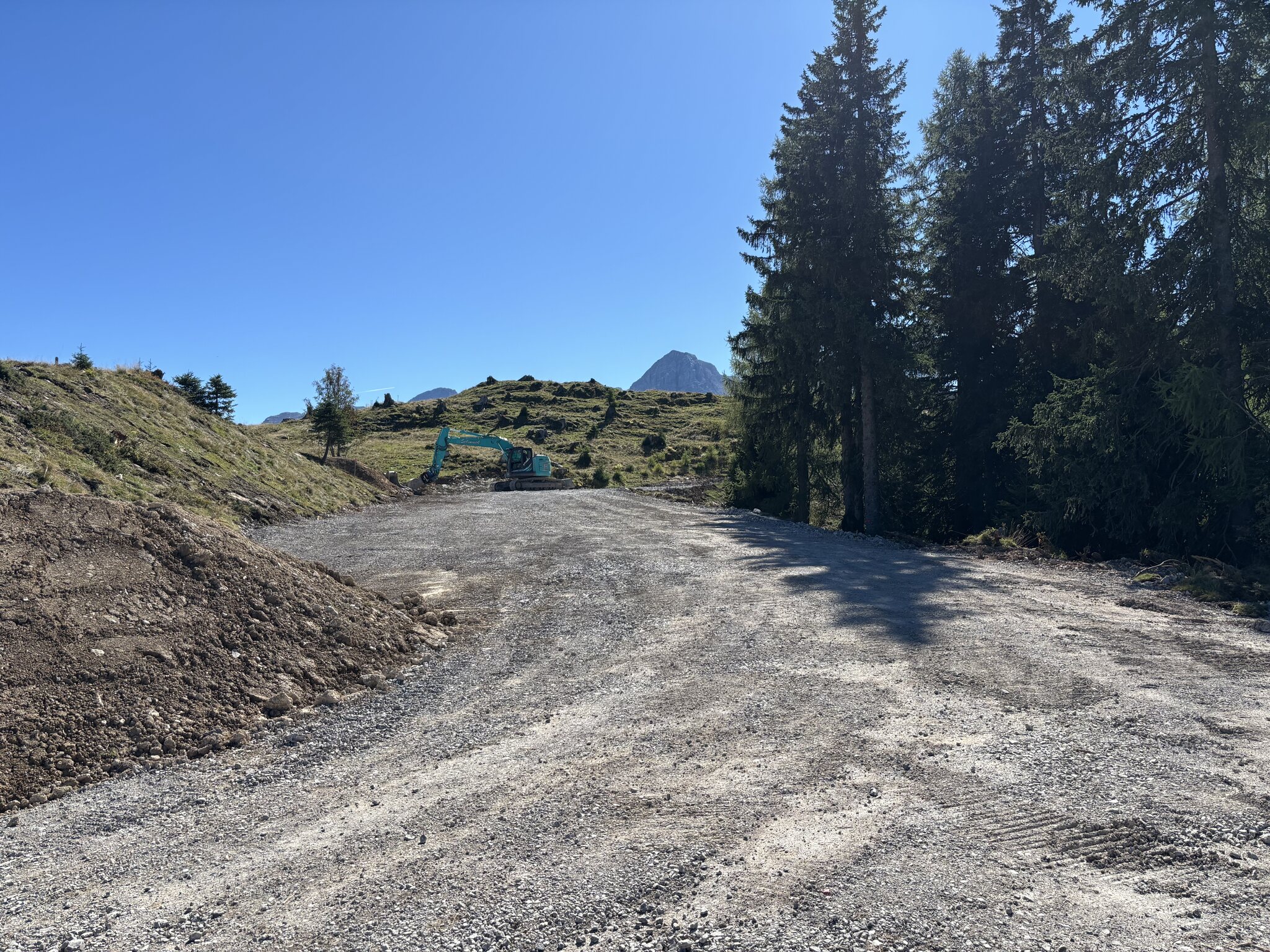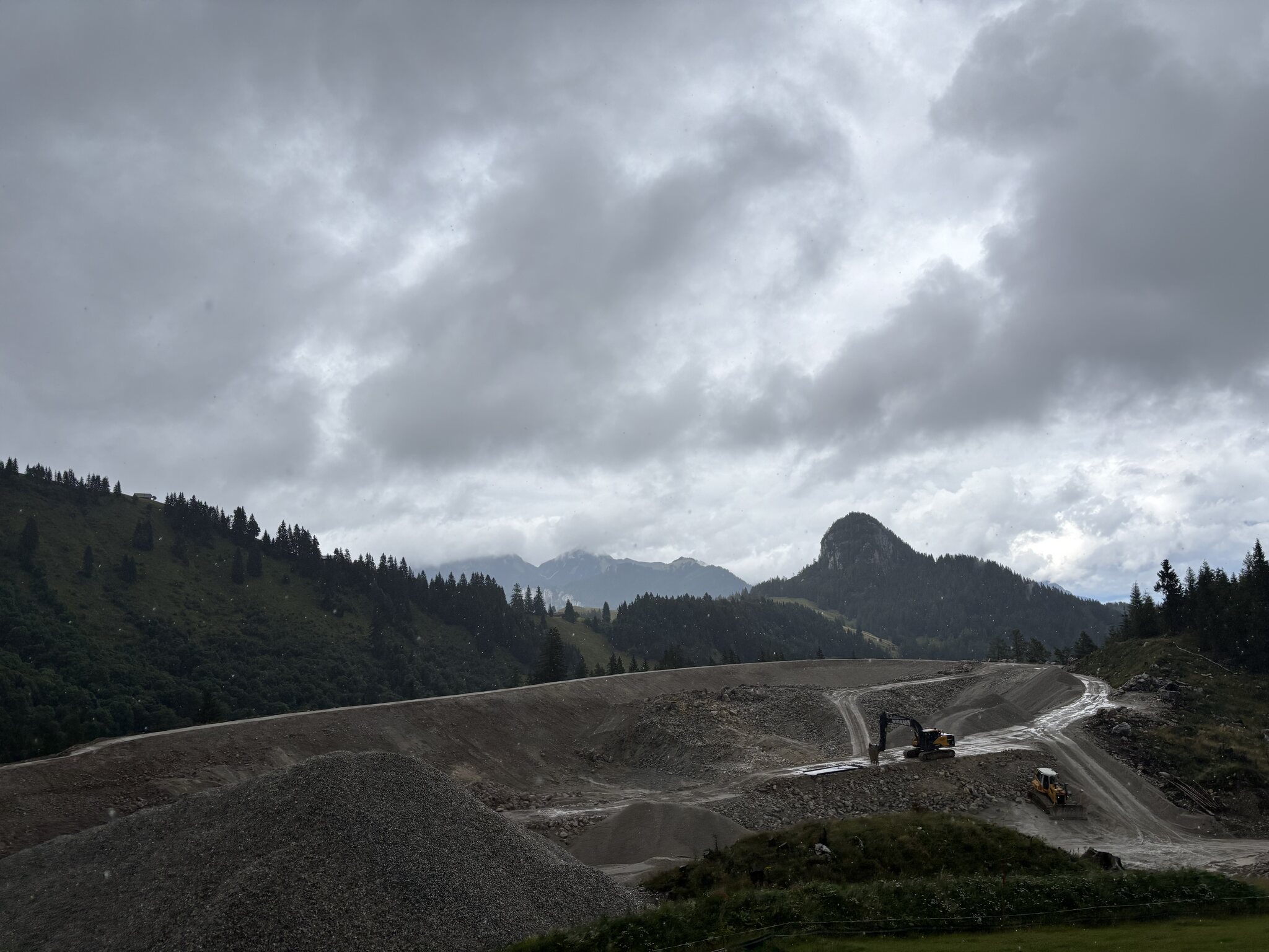 Baustellenupdate von heute. Beim Speicherteich kommt einiges an Material zusammen, was auf der Piste 3 verteilt wird.