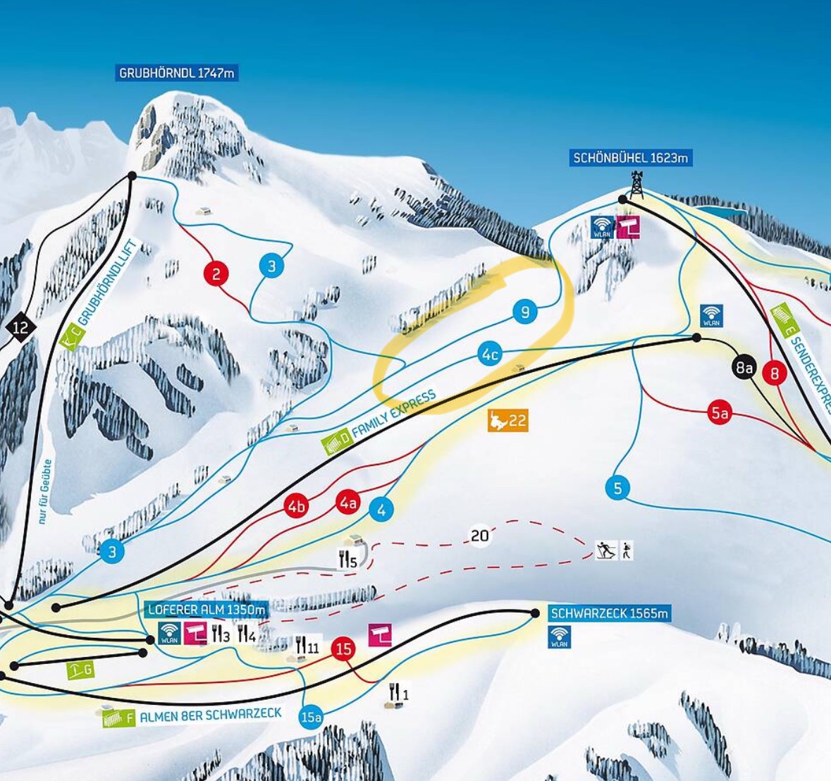 Joa, also das hat schon Hand und Fuß, die Märchenwaldpiste wird damit von oben bis unten eine attraktive Alternative, zwar flach aber für ein Familiengebiet gerade recht. Früher hat man sie wegen der Schiebepassagen eher gemieden.