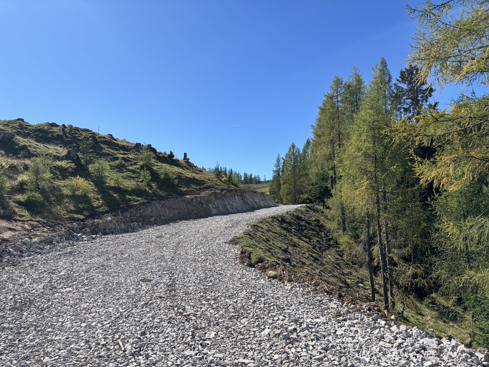 Hier gab es früher einen schmalen Weg mit zwei Gegenanstiegen. Das ist jetzt planiert und hat ein flaches aber durchgängiges Gefälle.