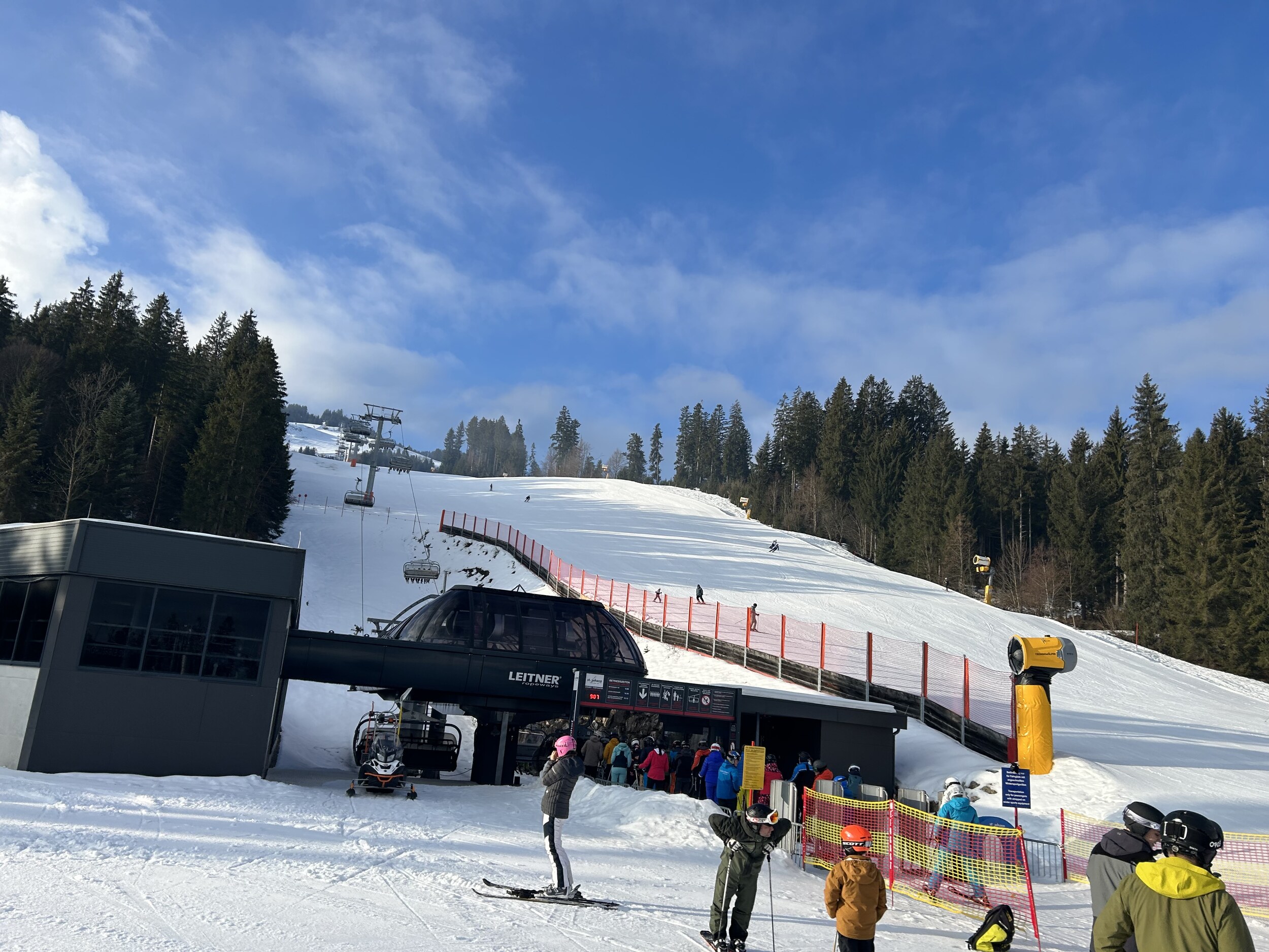 Komischerweise keine Wartezeiten an Gondel in Oberndorf und Penzing Sessel, rüber an den Harschbichl bin ich nicht da sicher Wartezeiten.