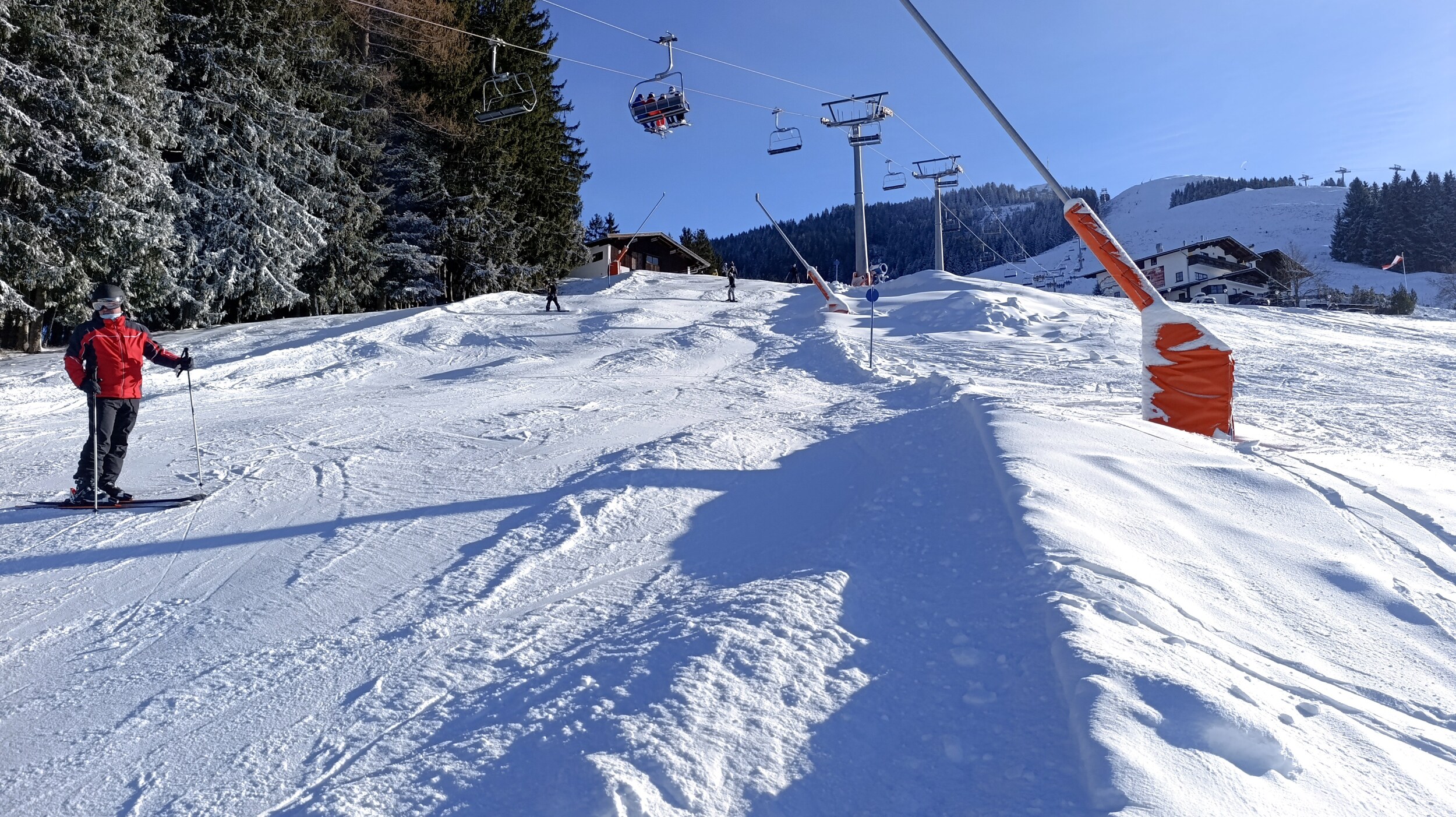 Schön waren auch beide Pisten zur Jodlalm. Die lange und langsame DSB bin ich nur einmal gefahren, aber dabei etwas mehr fotografiert. Sie ist ja in gut 2 Monaten Geschichte:
