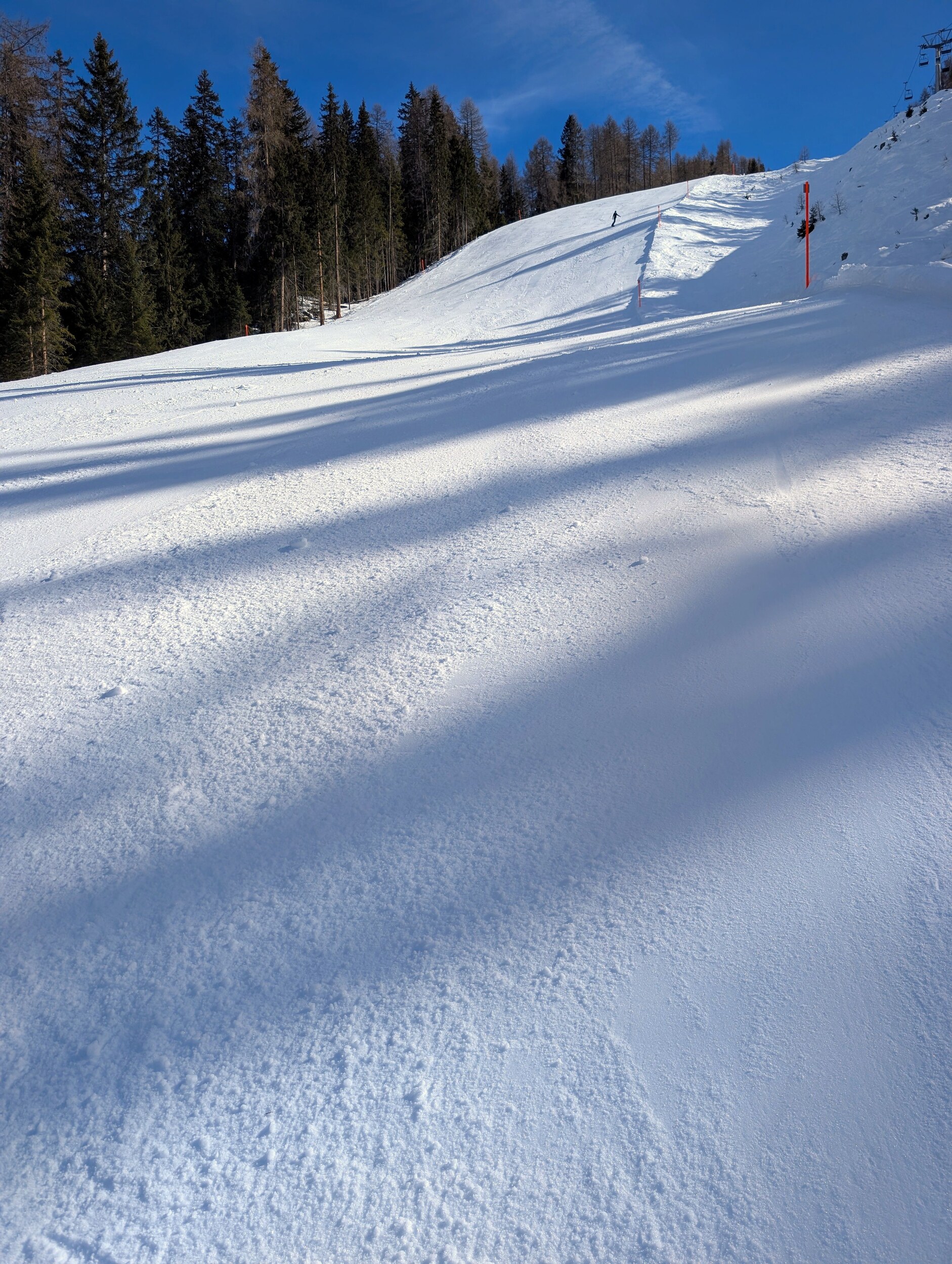 Die Piste hat nur bis zur Querverbindung offen. Nicht so wie im Pistenplan. Wir sind deswegen den Skilift nicht gefahren. Die Piste ist aktuell komplett vom Sechser aus erreichbar.