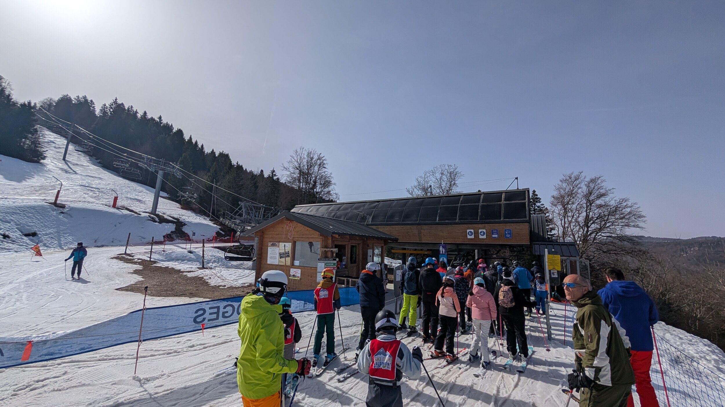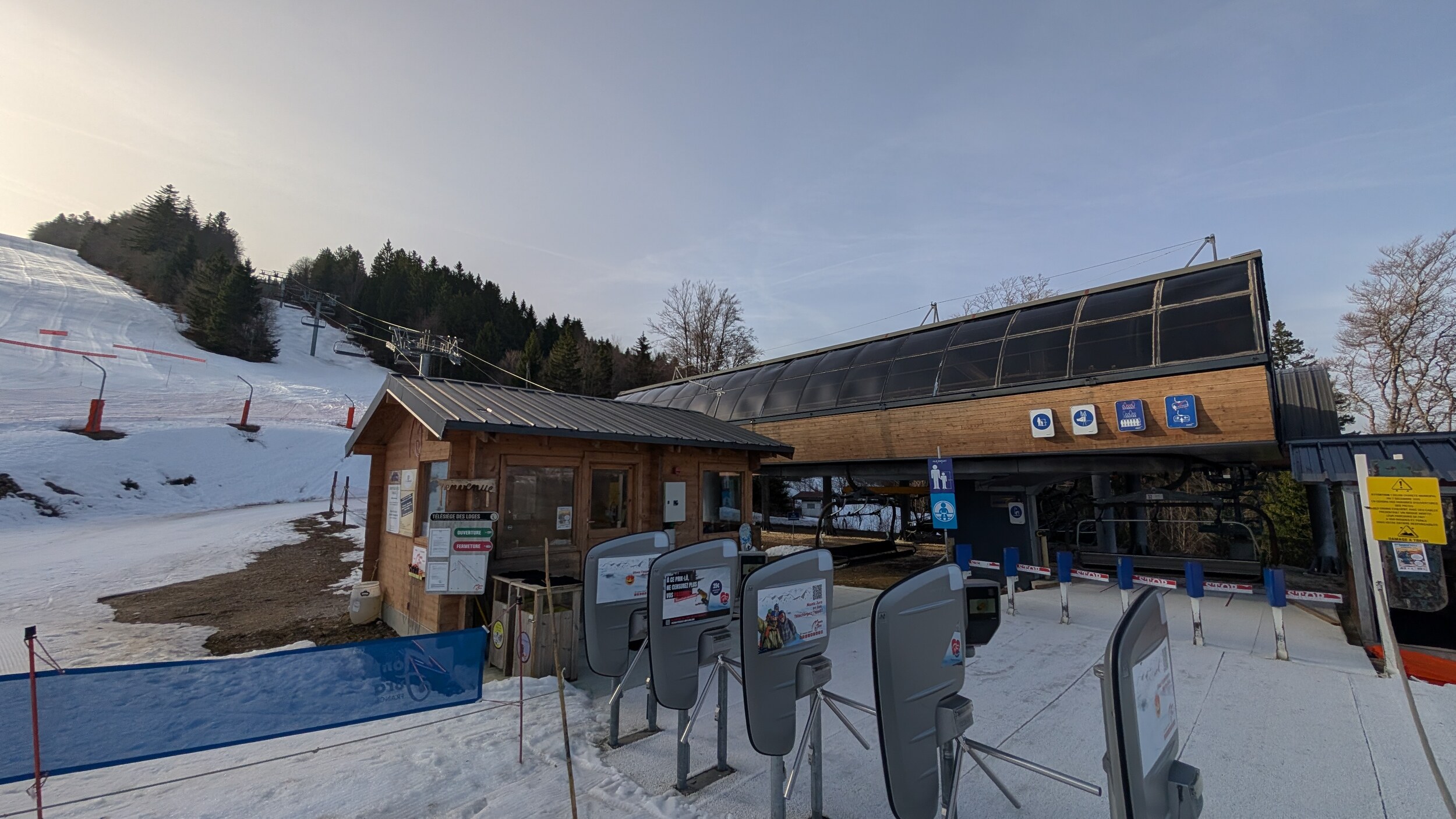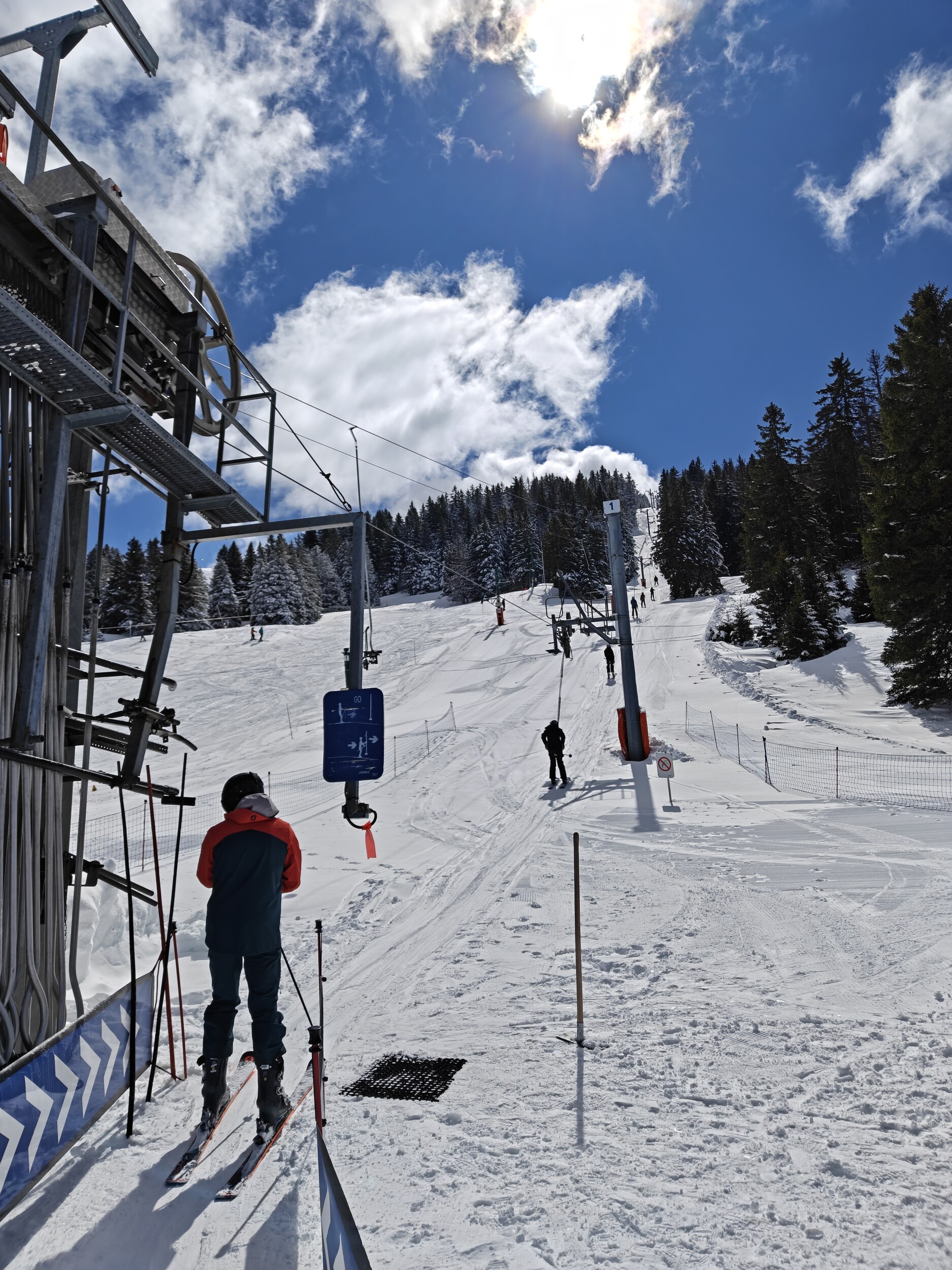 Das Auto parke ich heute kostenlos in Mijoux wo ich heute Nachmittag auch noch Skifahren will. Doch zunächst geht es mit dem Bus nach Lelex, in das größere Skigebiet der beiden. Netterweise nicht der Busfahrer mich kostenlos mit mit dem Linienbus, somit bin ich zeitlich perfekt um 8:45 Uhr bei der Talstation der Gondelbahn. Skipass habe ich online gekauft, und den Gutscheincodes des Adventskalenders verwendet, und kann somit direkt durchlaufen, hat alles also super geklappt!