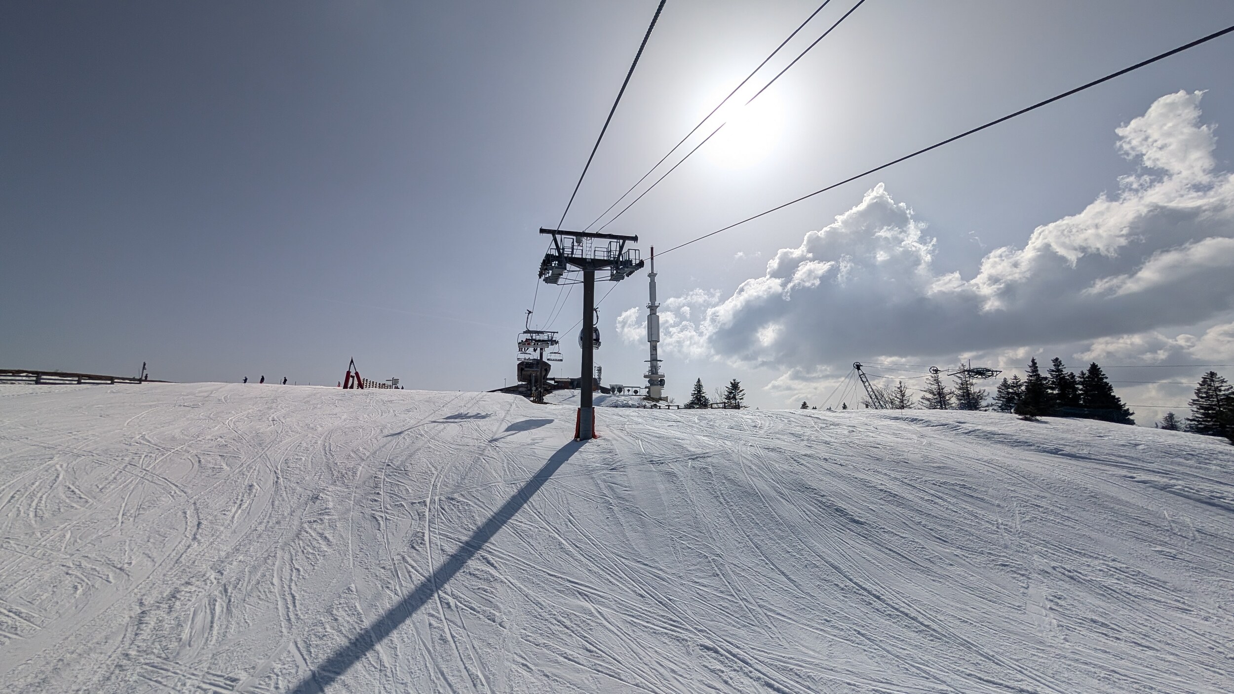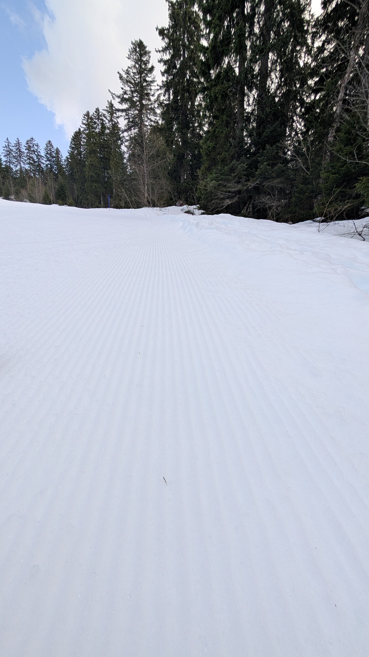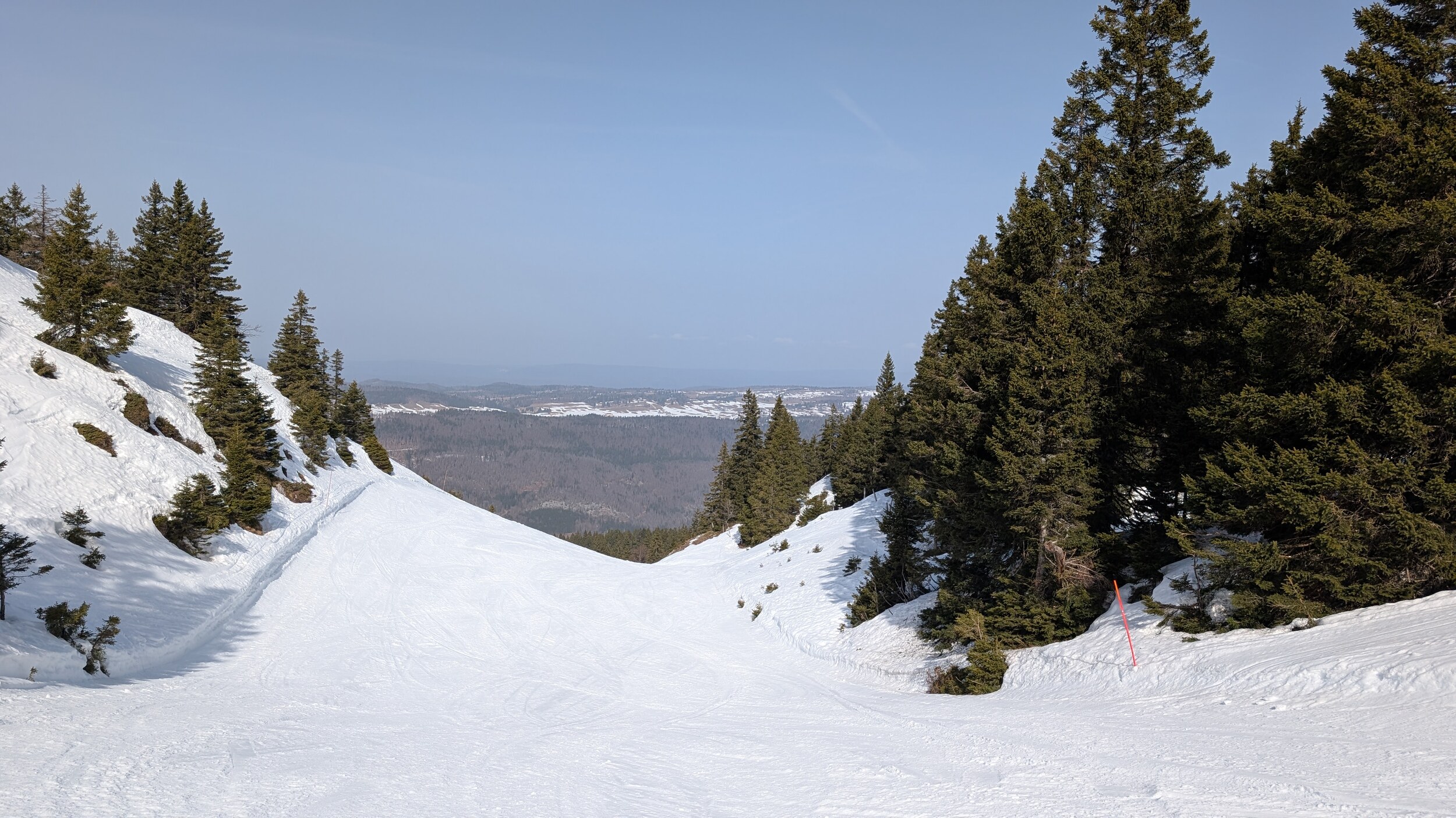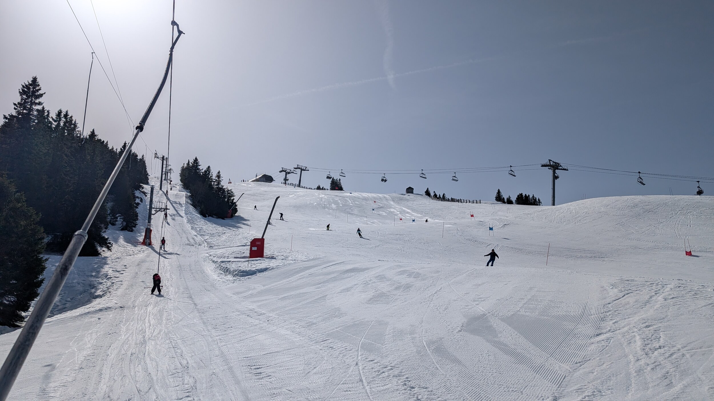 Ich war heute mal wieder im Jura unterwegs. Ein Tag Skivergnügen für 37 Euro - ein Traum. Dank Neuschnee von gestern Sonntag waren praktisch alle Pisten geöffnet und auch neben der Piste die Bedingungen gut. Ich hätte nicht gedacht, im März nochmals solch winterliche Bedingungen im Jura vorzufinden. Inzwischen bin ich ein wirklicher Mittelgebirgsfan, ich mag das „lockerere“ Skifahren. Vom Höhenunterschied her ist es wohl das interessanteste Gebiet im Jura und mich beeindrucken die Landschaft der Haute-Chaîne sowie der Blick Richtung Mont Blanc jedes Mal aufs Neue. In nächster Zeit stehen im Gebiet einige Veränderungen an: Die beiden Kabinenbahnen werden ersetzt und die Beschneiung im Gipfelbereich wird noch leicht ausgebaut.
