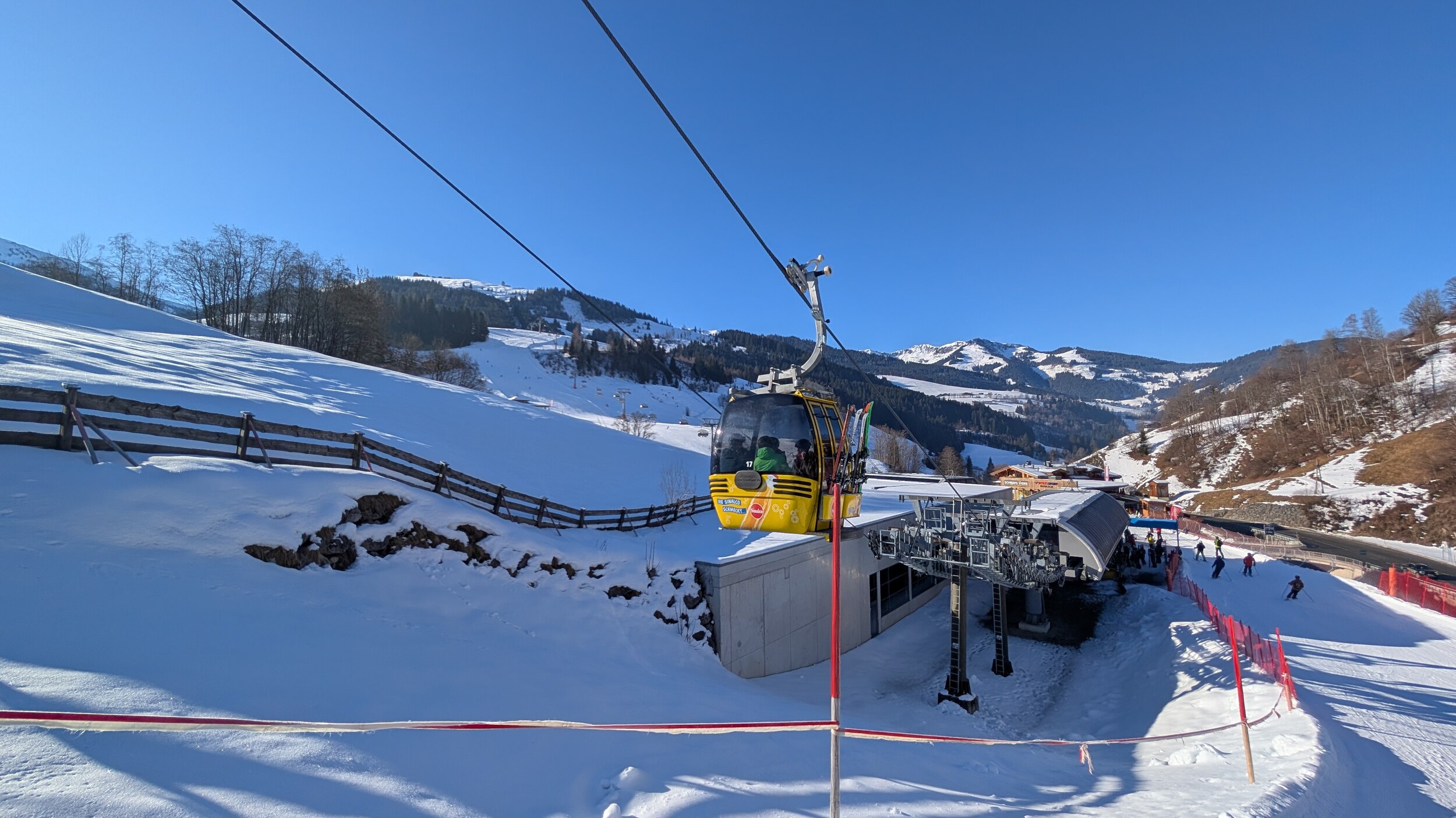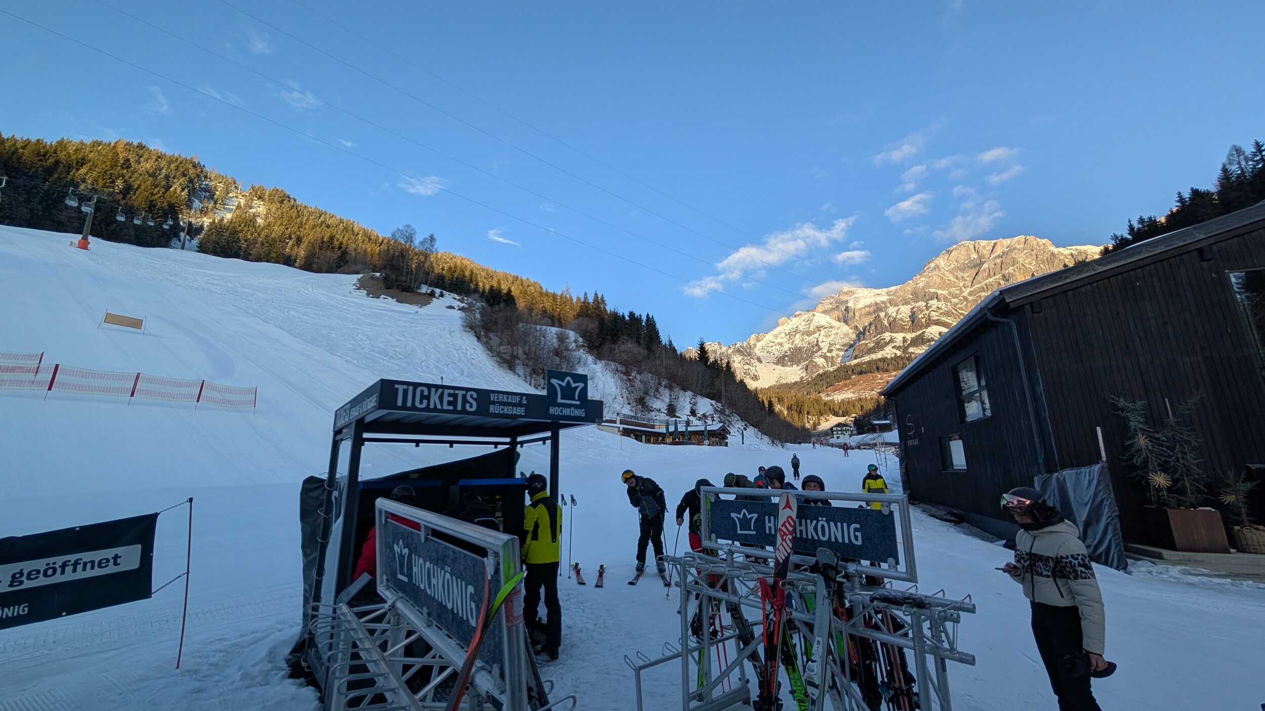 Heute meine Erstbefahrung am Hochkönig, am Morgen ist der Parkplatz schon sehr schnell voll zum Glück sind wir rechtzeitig da gewesen. Wetter wieder Kaiserwetter, mal schauen wie das Schnee in der geringen Höhenlage sich den Tag über verhält.