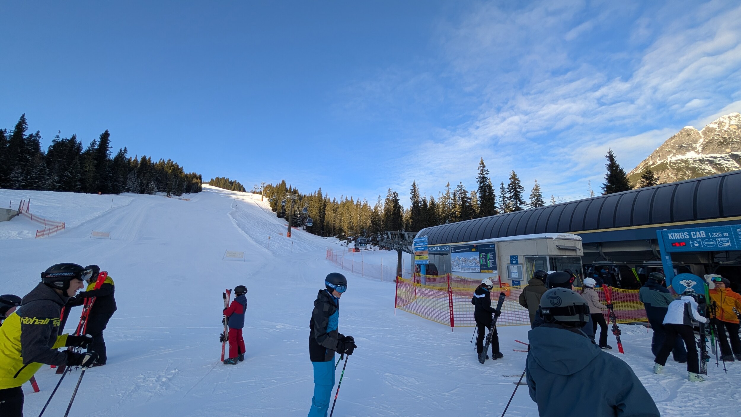 Falls du nach Liftwartezeiten fragst: minimal. An der 6EUB Karbachalm musste ich bei der 2. Auffahrt, also etwa um 8:45, zwei oder drei Minuten anstehen (und auch das nur weil (a) Leute zu blöd sind um bis 6 (!) zählen zu können und (b) der Anstehbereich so angelegt ist dass man als Singlefahrer nicht an den Wartenden vorbeikommt und traurig den unvollständig besetzten Kabinen zuschauen muss). Königskabine