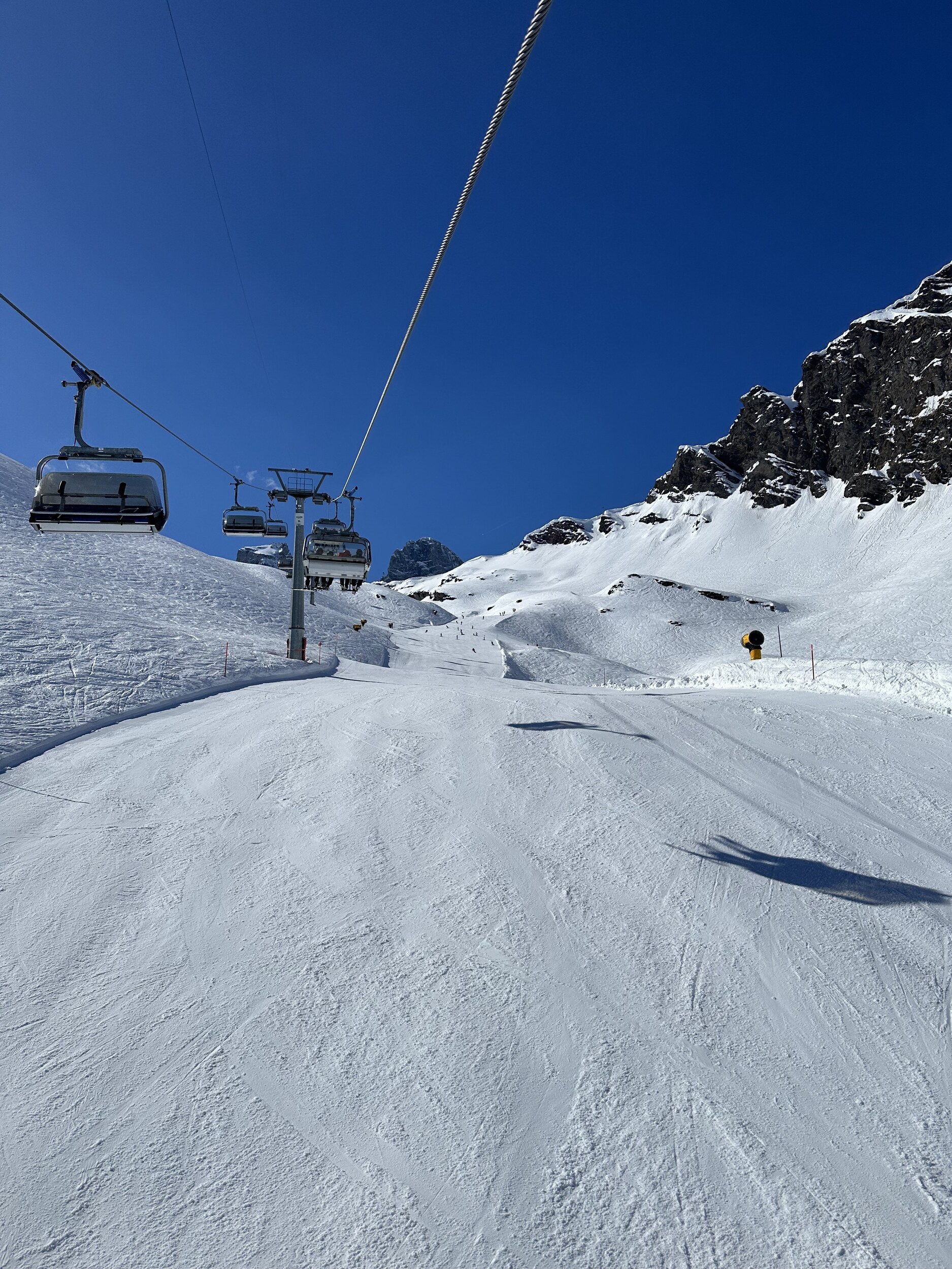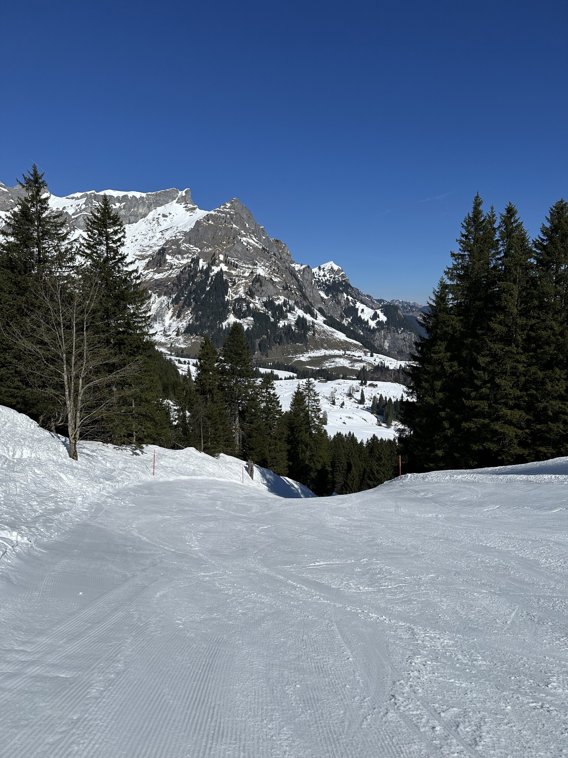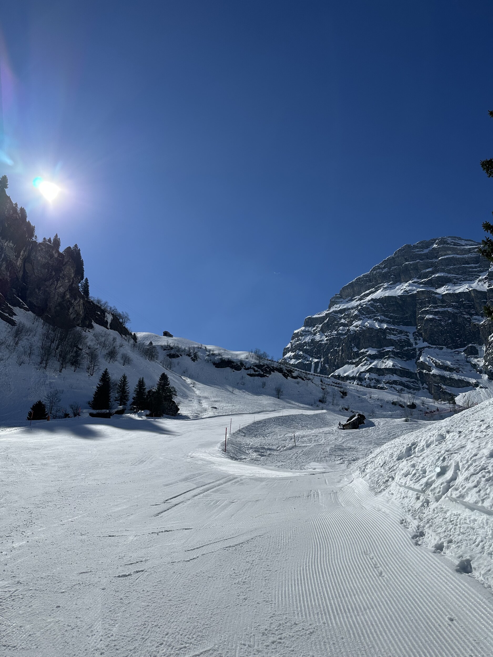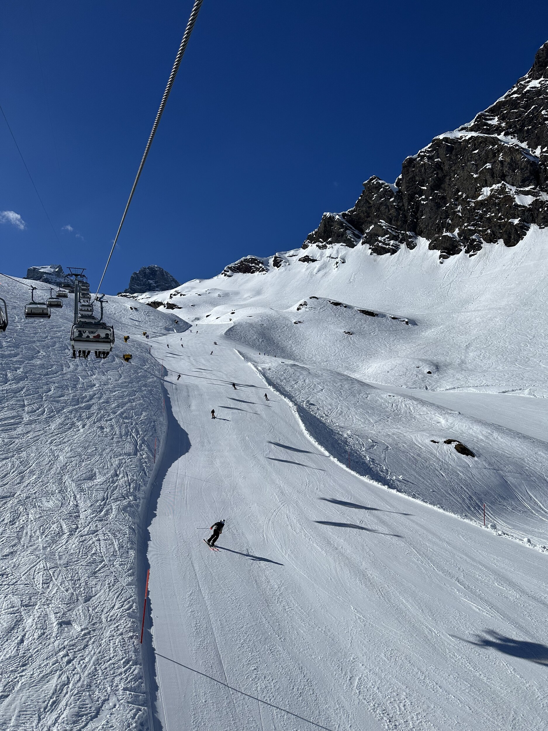 Weiterhin sehr gute Verhältnisse, schön griffig und nicht schlecht präpariert. Leute hatte es heute auch kaum mehr. Es wird langsam ruhiger.