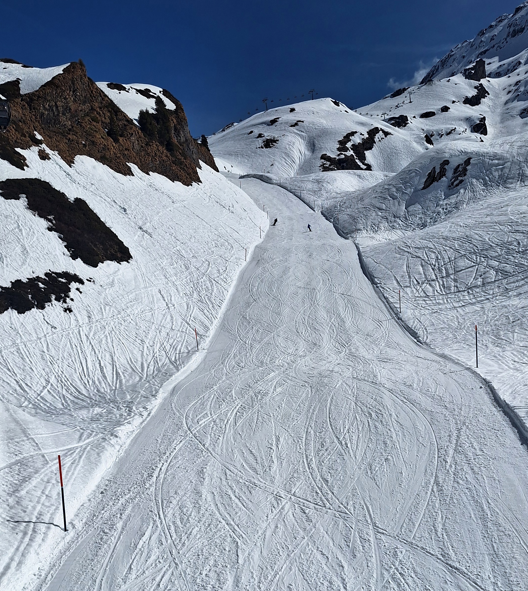 Top top heute, wahrscheinlich die besten Verhältnisse von der ganzen Saison. Top präpariert, griffig, keine Leute und ideale Temperatur zum Skifahren. Schade das der Jochpass mitte April zugeht. Mit dem Schnee in den kommenden Tagen würde es locker in den Mai reichen. Und auch die Talabfahrt ist noch problemlos, diese geht sicher bis Saisonende.