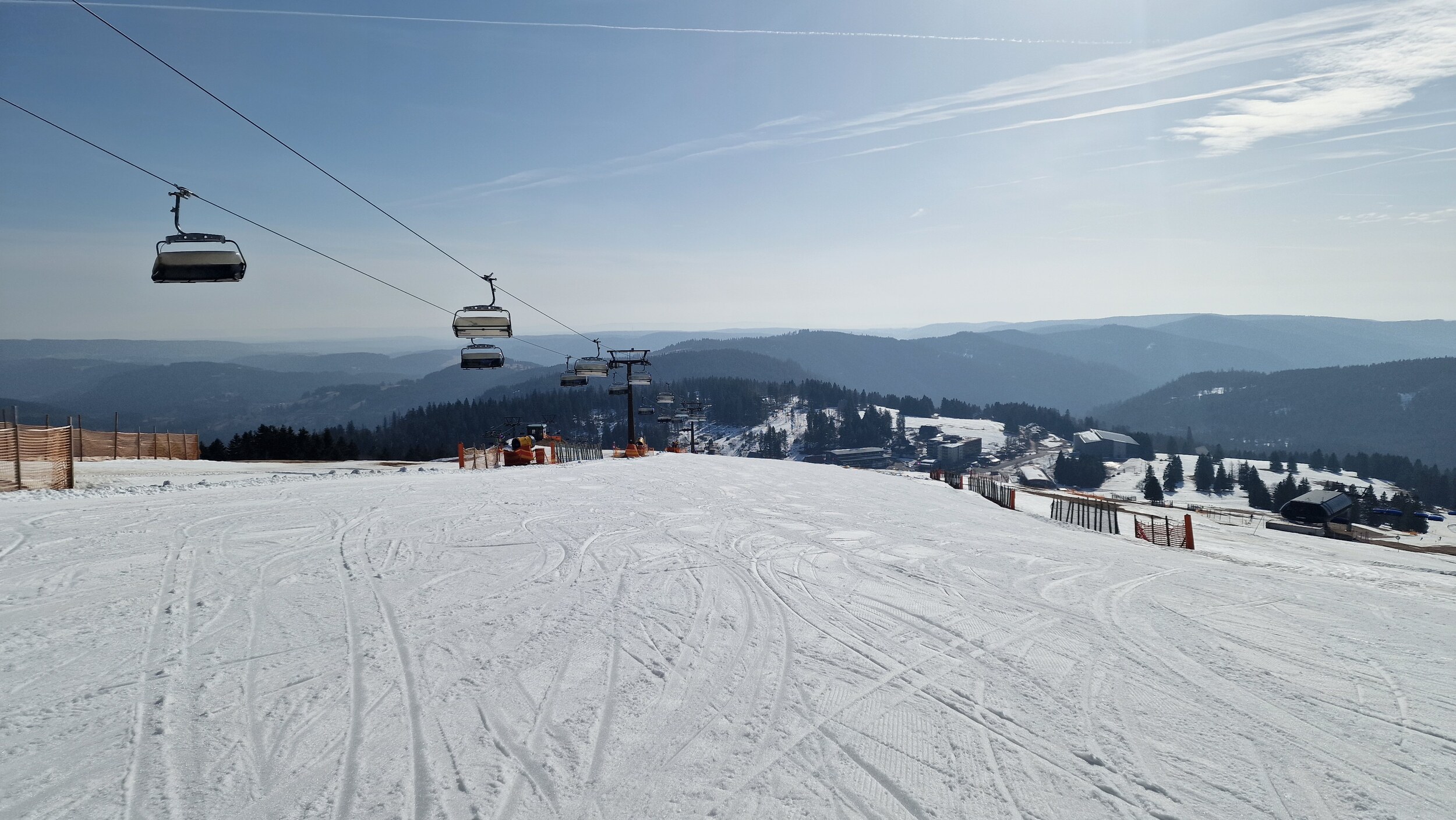 Naja man hat ja quasi keine Beschneiung bzw. kein Wasser. Wenn man rüber in die Vogesen schaut, sieht man in La Bresse gut was mit genügend Wasser möglich ist.