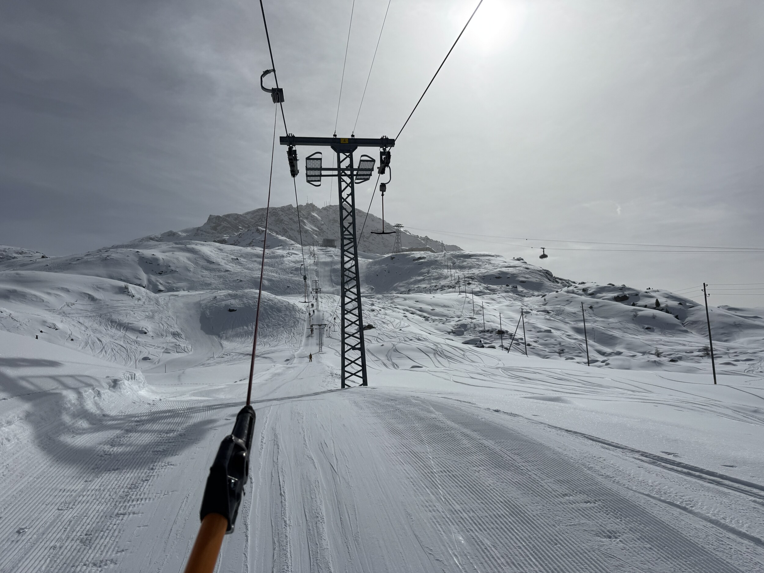 Ich musste mich erstmal wieder an das Fahren eines steilen Schleppliftes gewöhnen