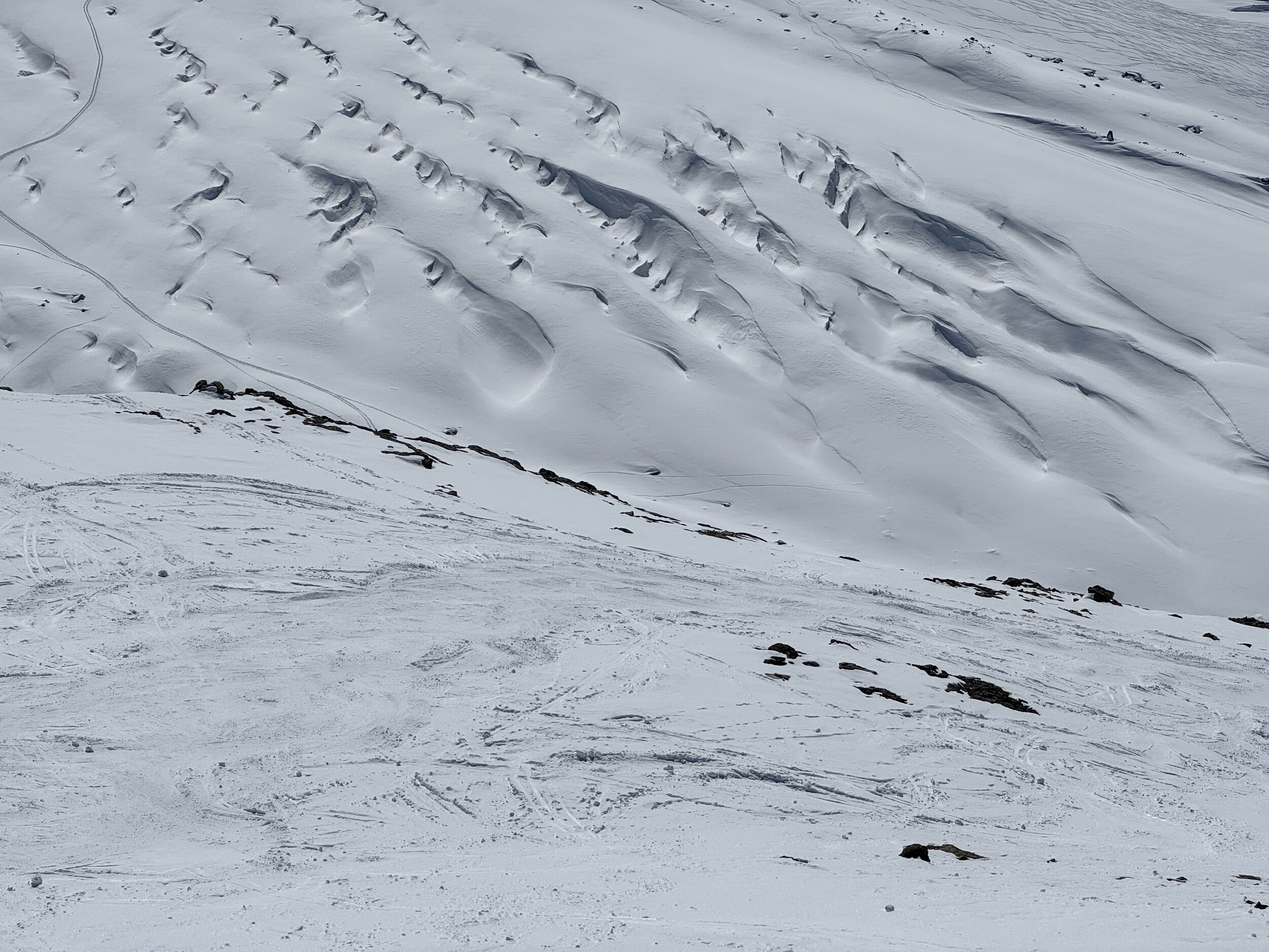 Schnee kaum weich. Diavolezza hat oben einige wenige Eisplatten.