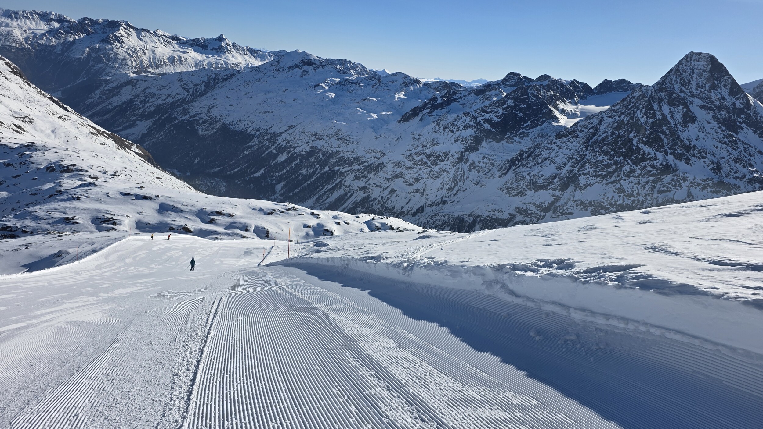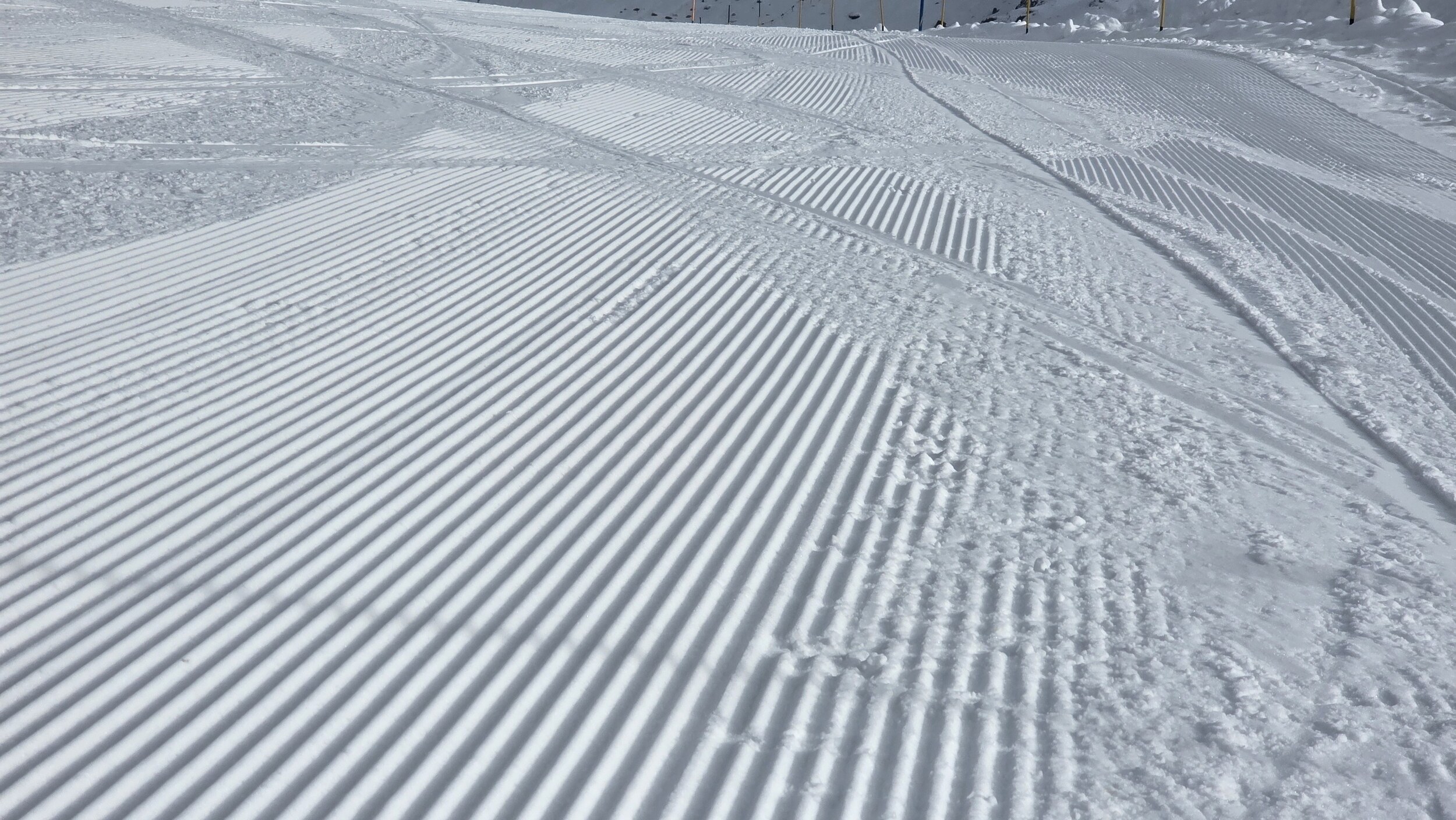 Der Pistenzustand in Furtschellas ist super, der einzige Mangel war hier und da etwas herein gewehter Neuschnee