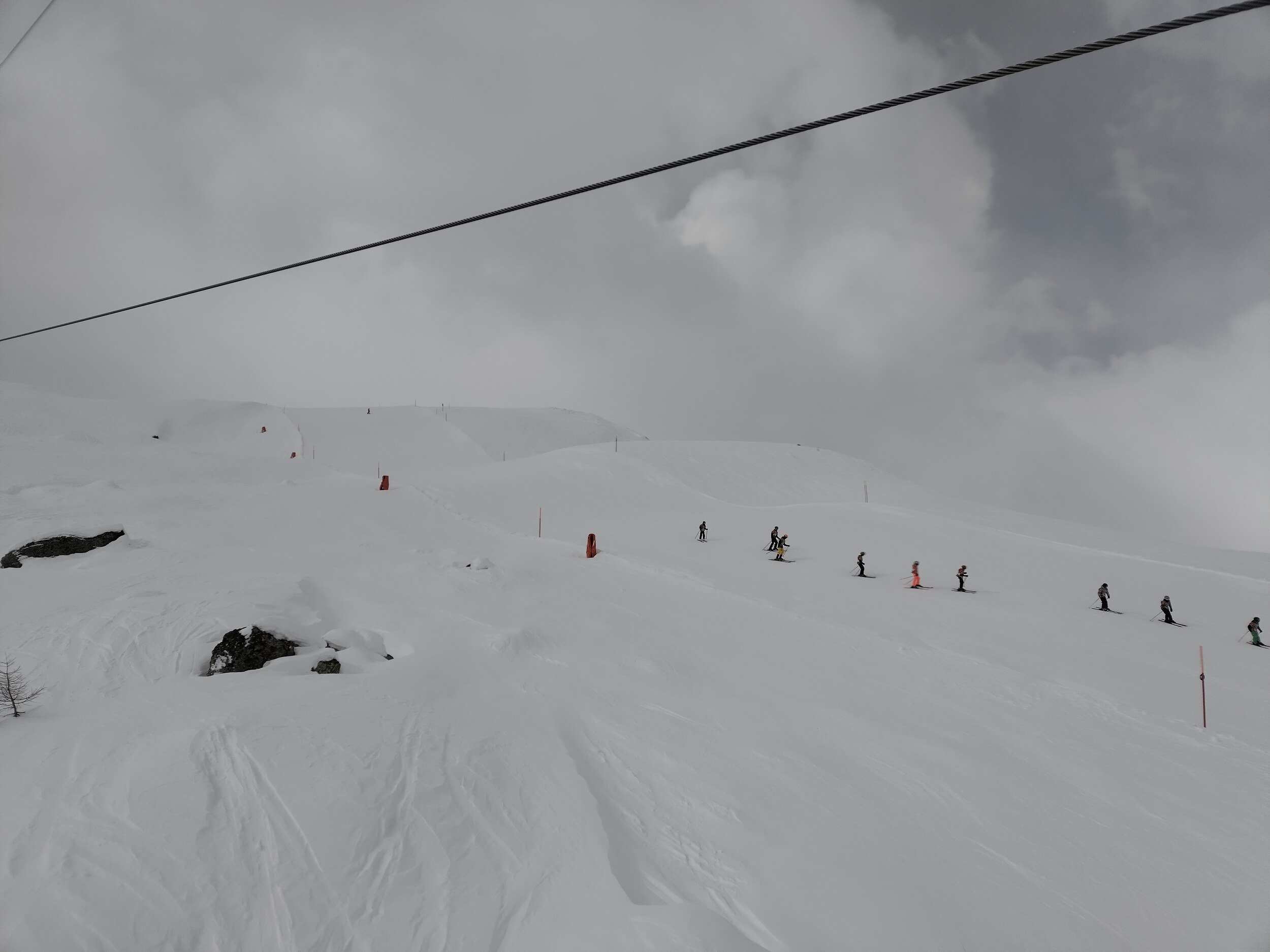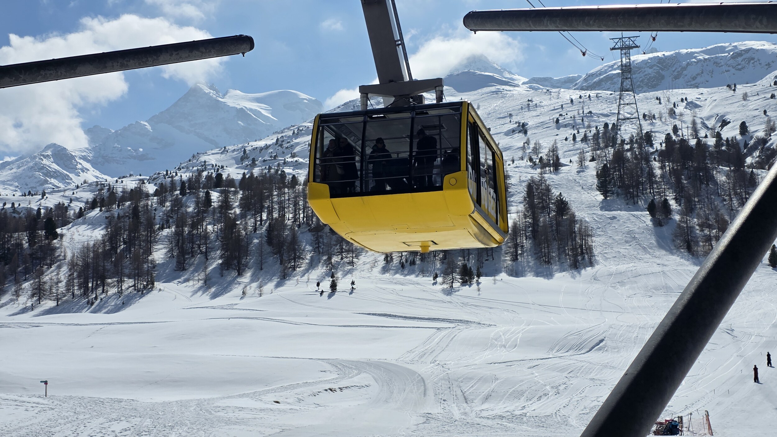 Mittwoch wieder die Runde ab Furtschellas, wieder top Pisten, dazu besten Sicht am Vormittag. Immer noch sch*** kalt und windig, und die Furtschellas-KSB ist für groß gewachsene Menschen immer noch untauglich.