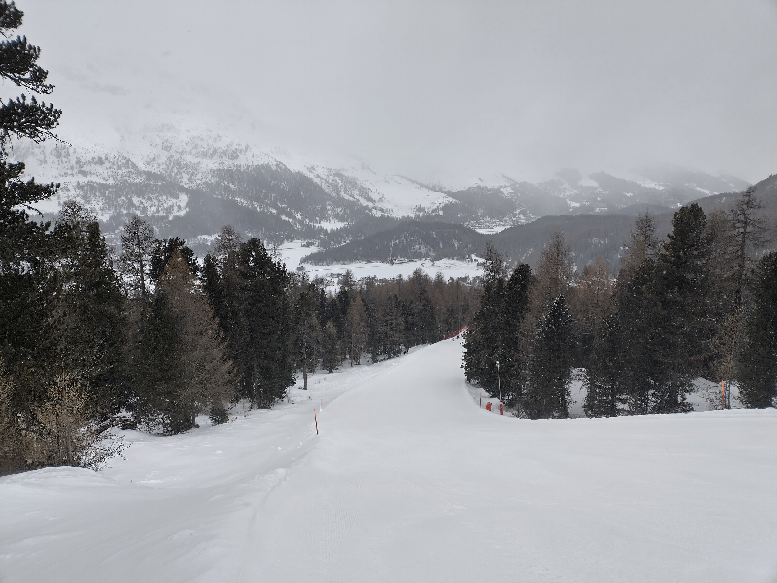 Aus meiner Sicht würde der Schnee nicht reichen für die Hahnensee. Die Piste braucht ja eine gute Unterlage. Es liegt im Engadin deutlich weniger als in Nordbünden. Auch am Piz Nair ist neben der Piste kaum was.