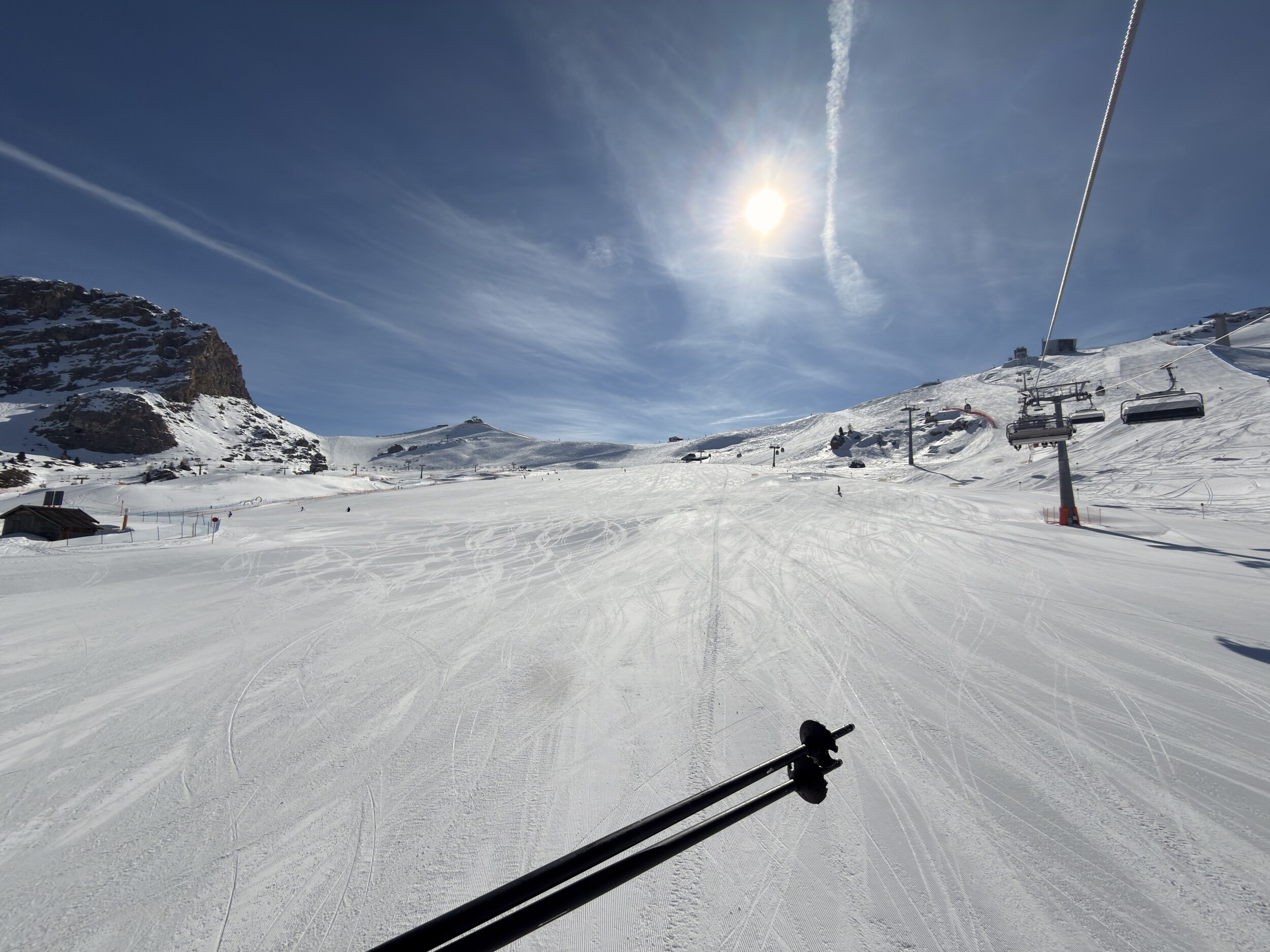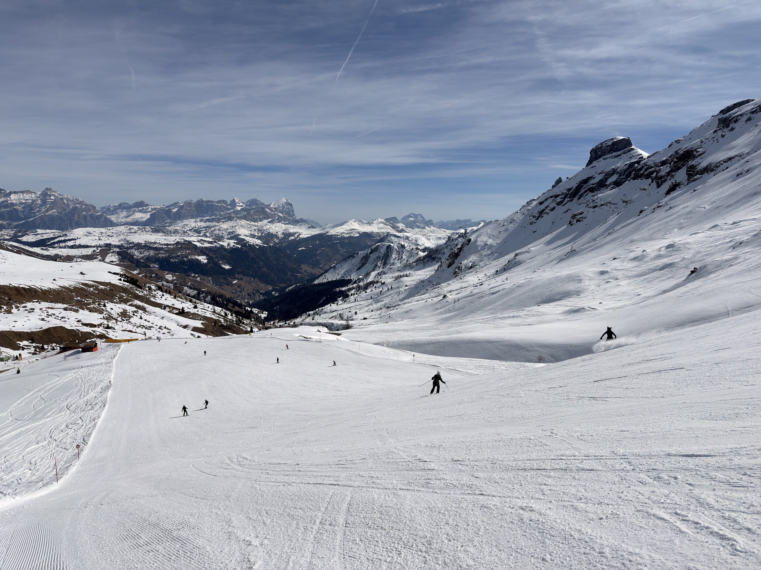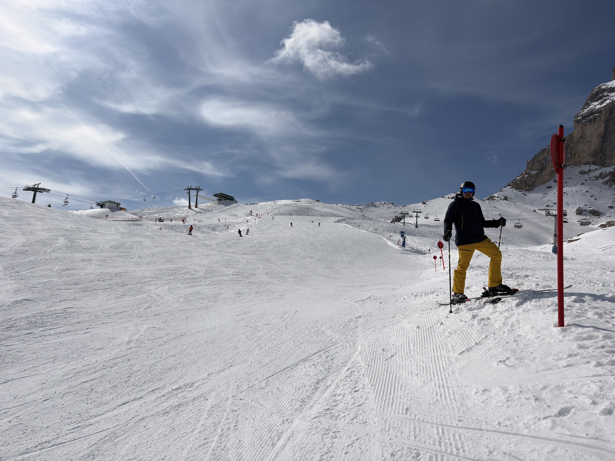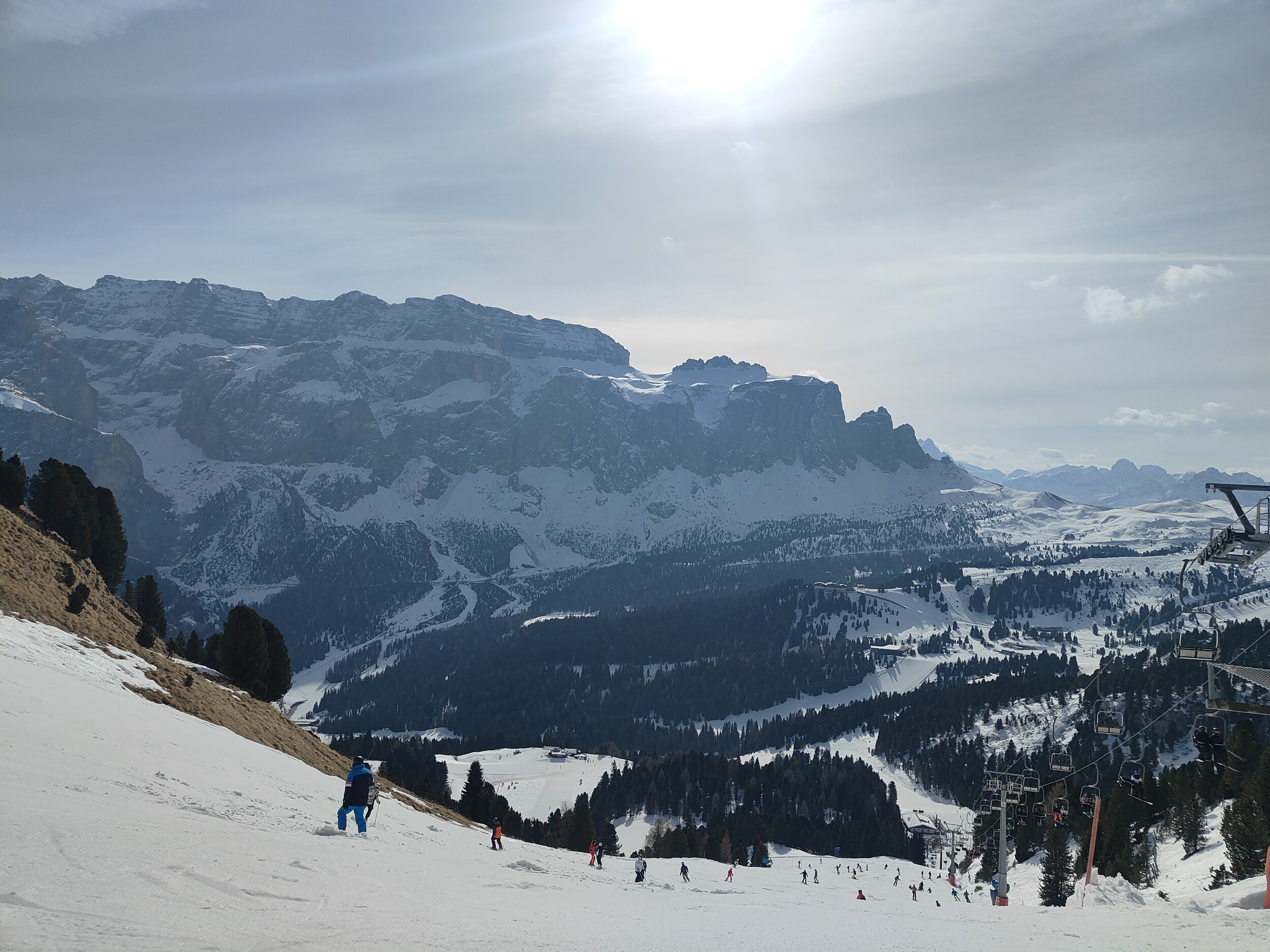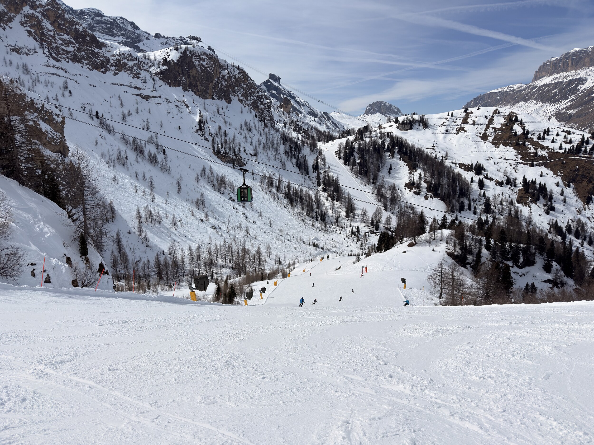 Und für Ferien ist nichts los. Im Edelweiß Tal waren wir gestern bis 11 Uhr die einzigen auf der blauen neben den 2 Schwarzen. Und den ganzen Tag hatten wir vielleicht 2 oder 3 mal jemanden mit im Lift. Ob in Colfosco oder San Cassiano es war sehr wenig los.