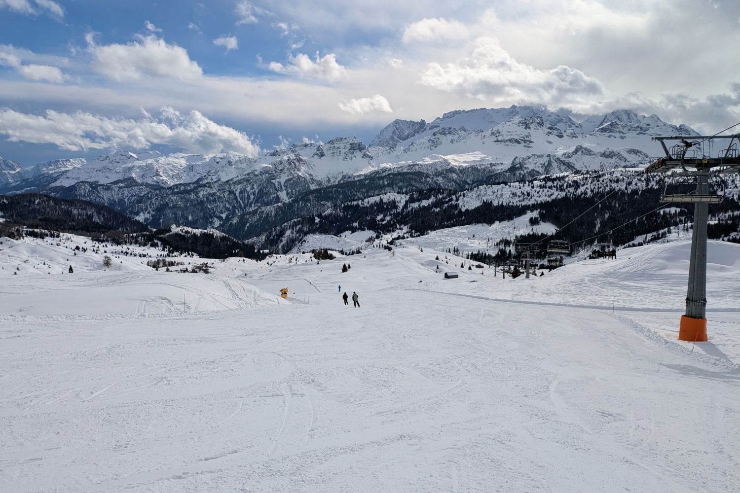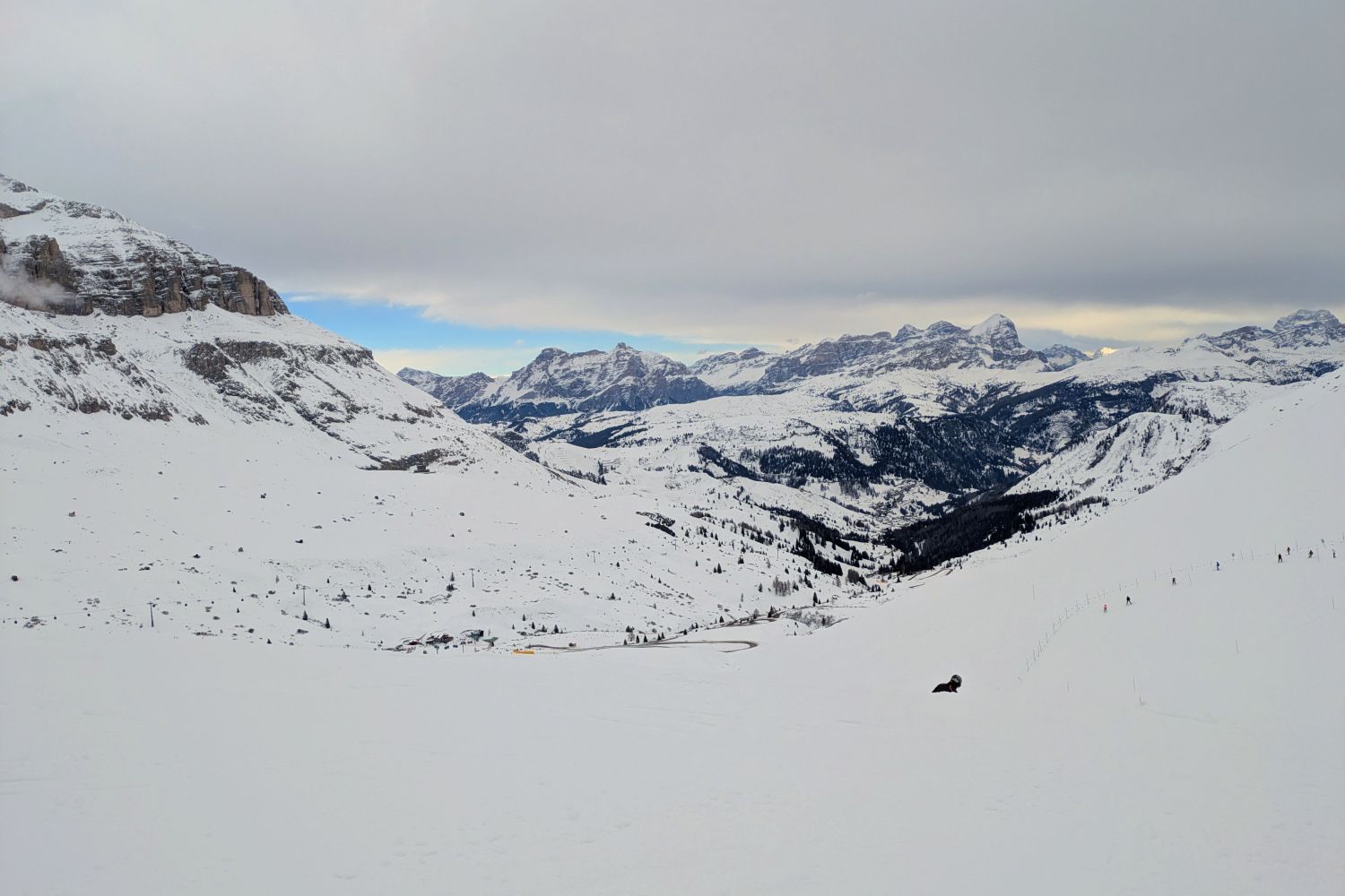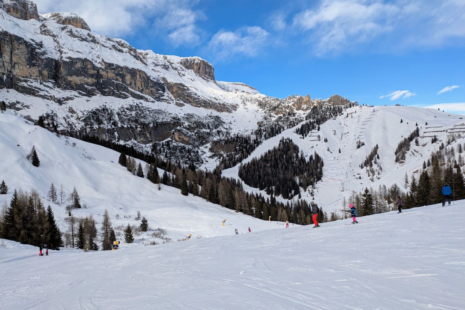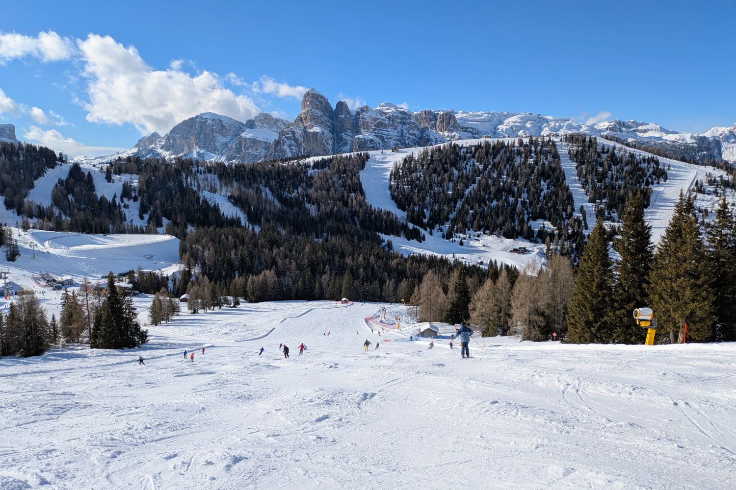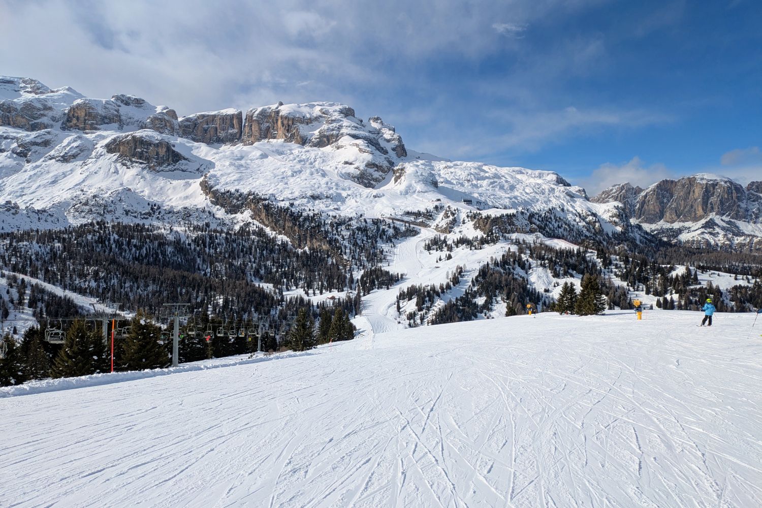 Und für Ferien ist nichts los. Im Edelweiß Tal waren wir gestern bis 11 Uhr die einzigen auf der blauen neben den 2 Schwarzen. Und den ganzen Tag hatten wir vielleicht 2 oder 3 mal jemanden mit im Lift. Ob in Colfosco oder San Cassiano es war sehr wenig los.