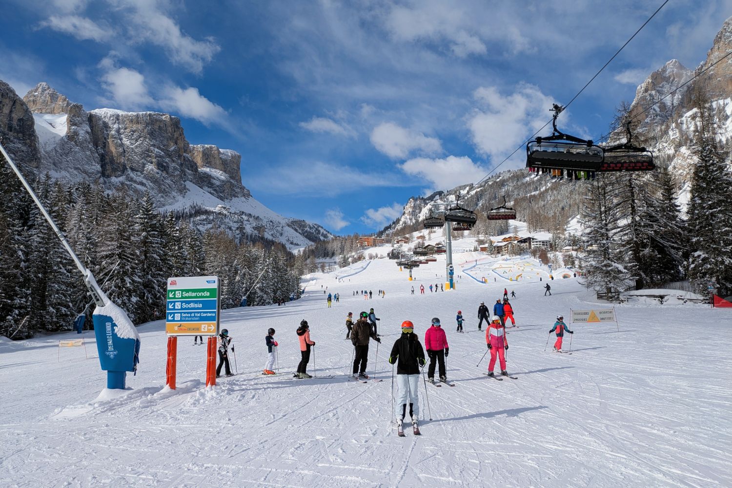 Lifte Total 29: Alpenrose, Arabba Fly, Borest, Burz, Campolongo, Catores Martin, Cir, Citta dei Sassi, Col Raiser, Colfosco, Fermeda, Frara, Gherdeina Ronda, Kristiania, Le Pale, Seletei, Piz Seteur I, Piz Seteur II, Plan da Tieja, Plans, Saslong, Sass Bece, Sass Pordoi, Sasso Levante, Sochers, Sochers-Ciampinoi, Sodlisia, Stella Alpina, Val Setus