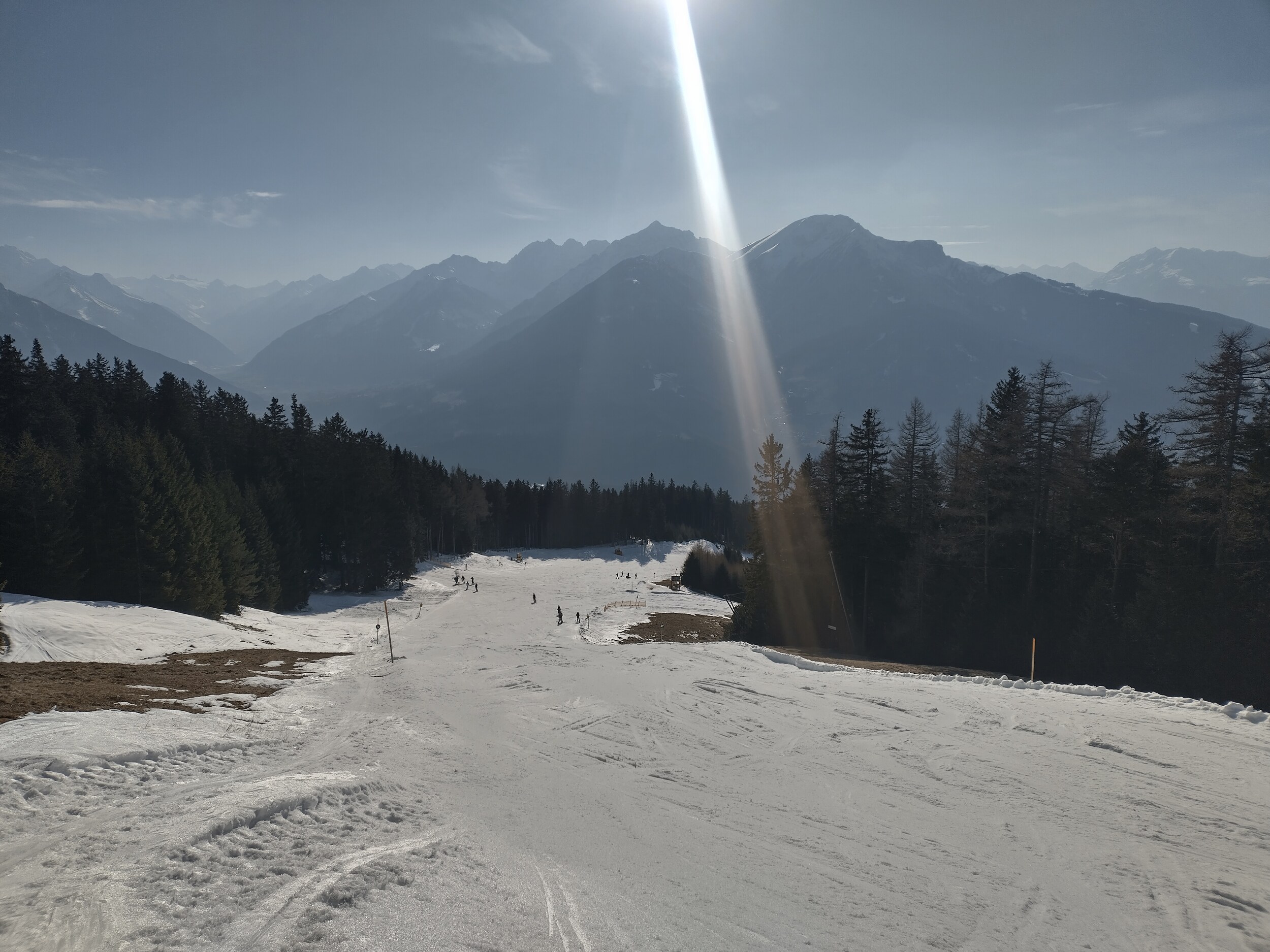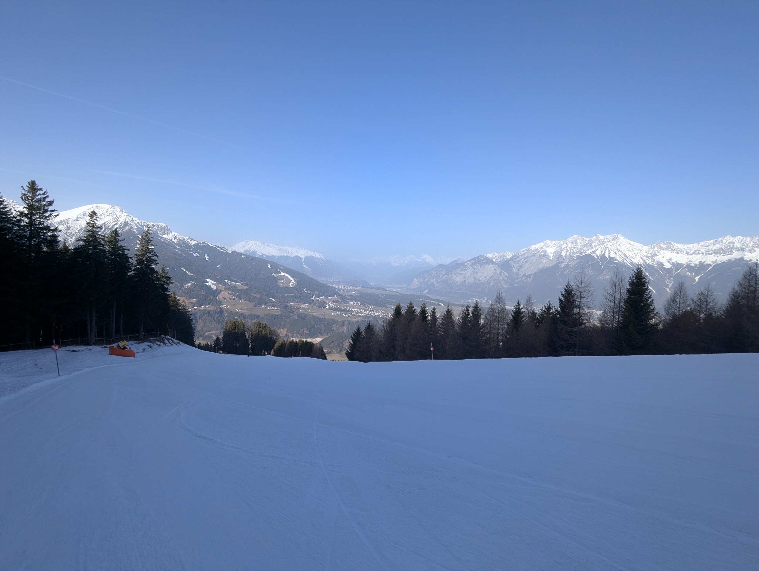 Heute zunächst am Patscherkofel. Gutes Wetter, etwas weniger Saharastaub und für Wochenende wenig los. Einzig zwei Rennkurse blockieren einen Teil von Pisten.