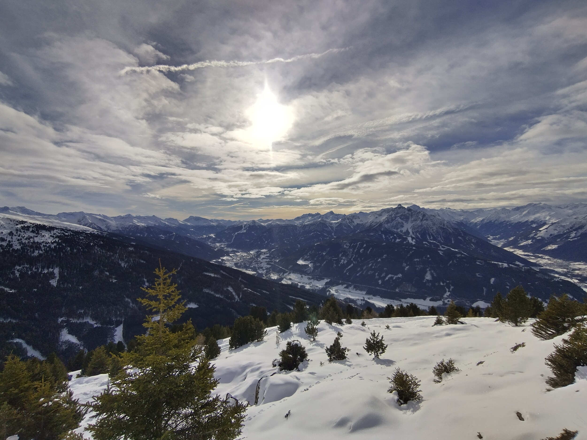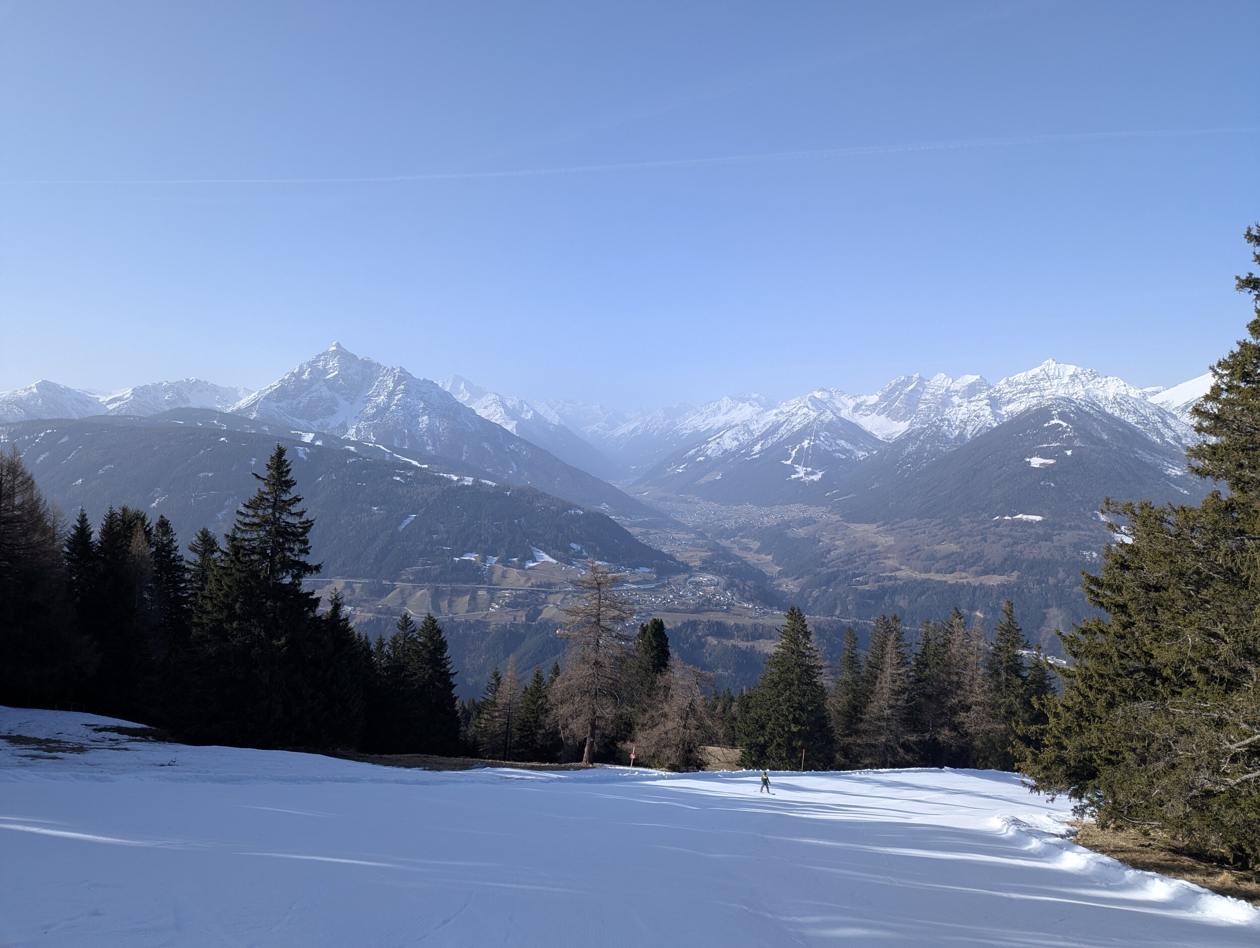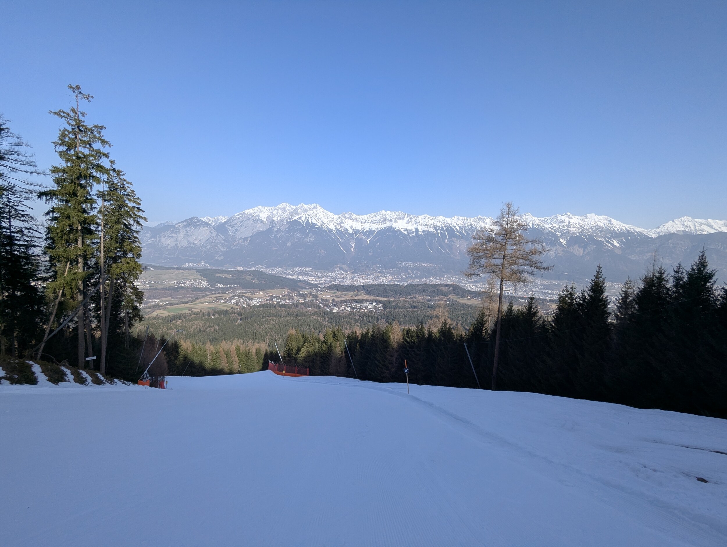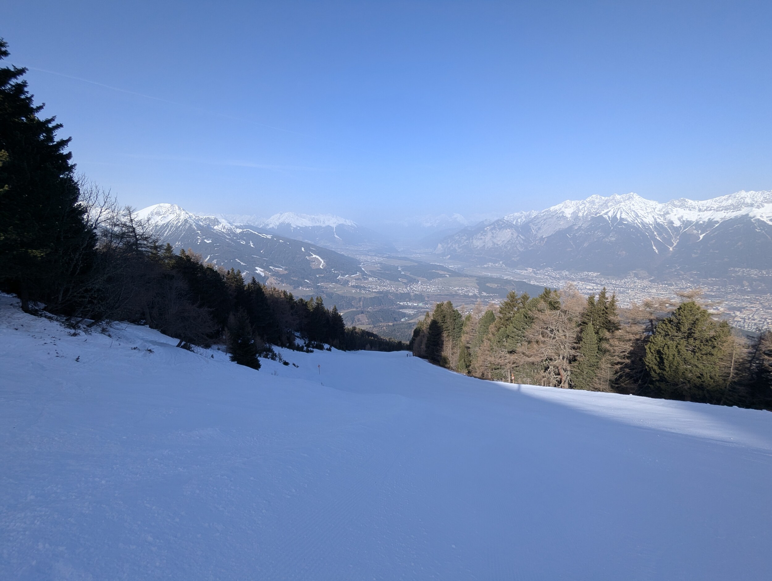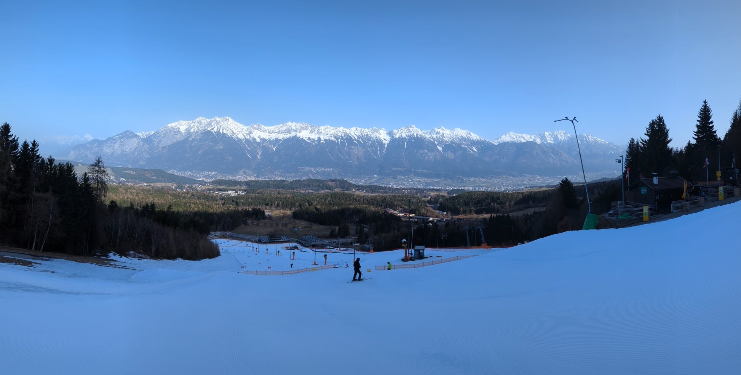 Blick über Innsbruck zur Nordkette. Vor 3 Tagen bin Ich quasi Schneefrei zur Seegruben rauf und runter. Selbst zum Hafelekar käme man noch gut zu Fuß