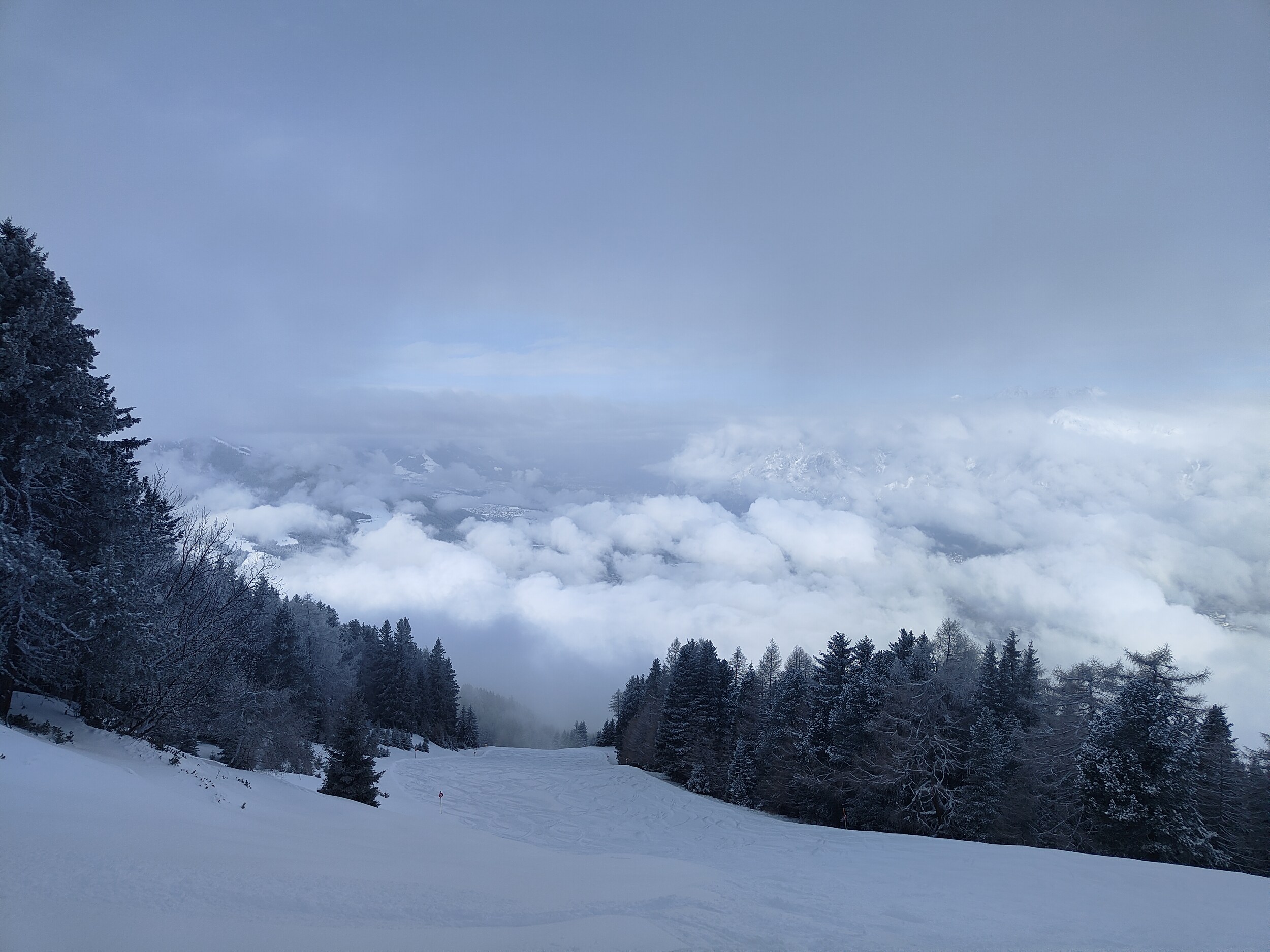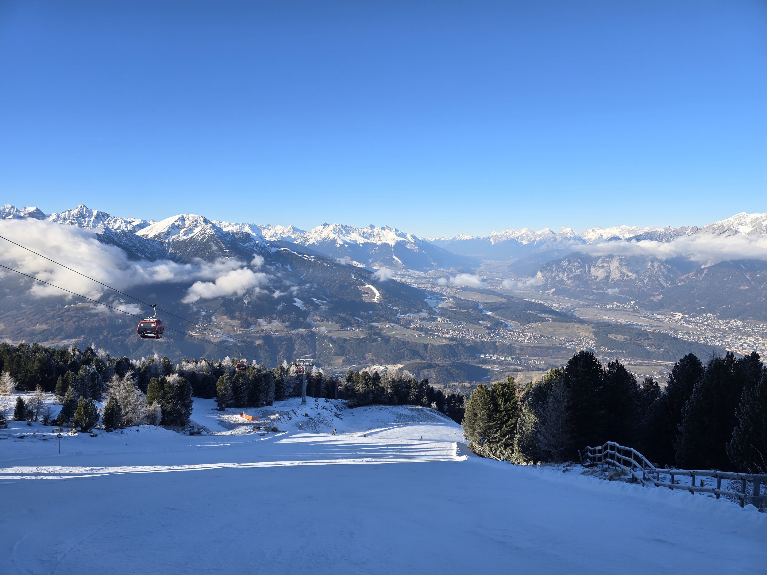 Dieses Trauma gehe ich heute an. Ich fahre den Patscherkofel. Und zwar am Tag, an dem Marco Odermatt seinen vierten Super-G-Weltcup gewinnt. Gibt es einen besseren Tag dafür? Die 30cm Neuschnee sind das Sahnehäubchen auf meiner Fahrt die Olympia-Strecke von 1976 (ja, 50 Jahre Franz Klammer Gold wurde diesen Februar gefeiert) hinab. Einfach cool, dieser Berg mit 960 Höhenmetern, nur 15 Minuten Fahrt vom Hotel entfernt (mit dem Skibus sind's 25 Minuten). Wie cool muss das erst mit Aussicht sein auf Innsbruck! Verständlich, dass da die nicht-Österreicher ein bisschen länger gebraucht haben bei ihrer Fahrt am 21. Dezember 1998.