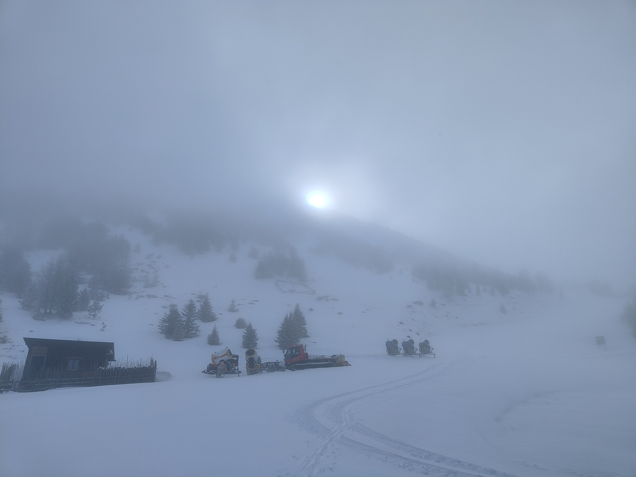 Los ist sehr wenig, leider weiterhin nur eine Piste und auf der FIS passiert wenig aber einige Kanonen laufen, die meisten aber nicht...