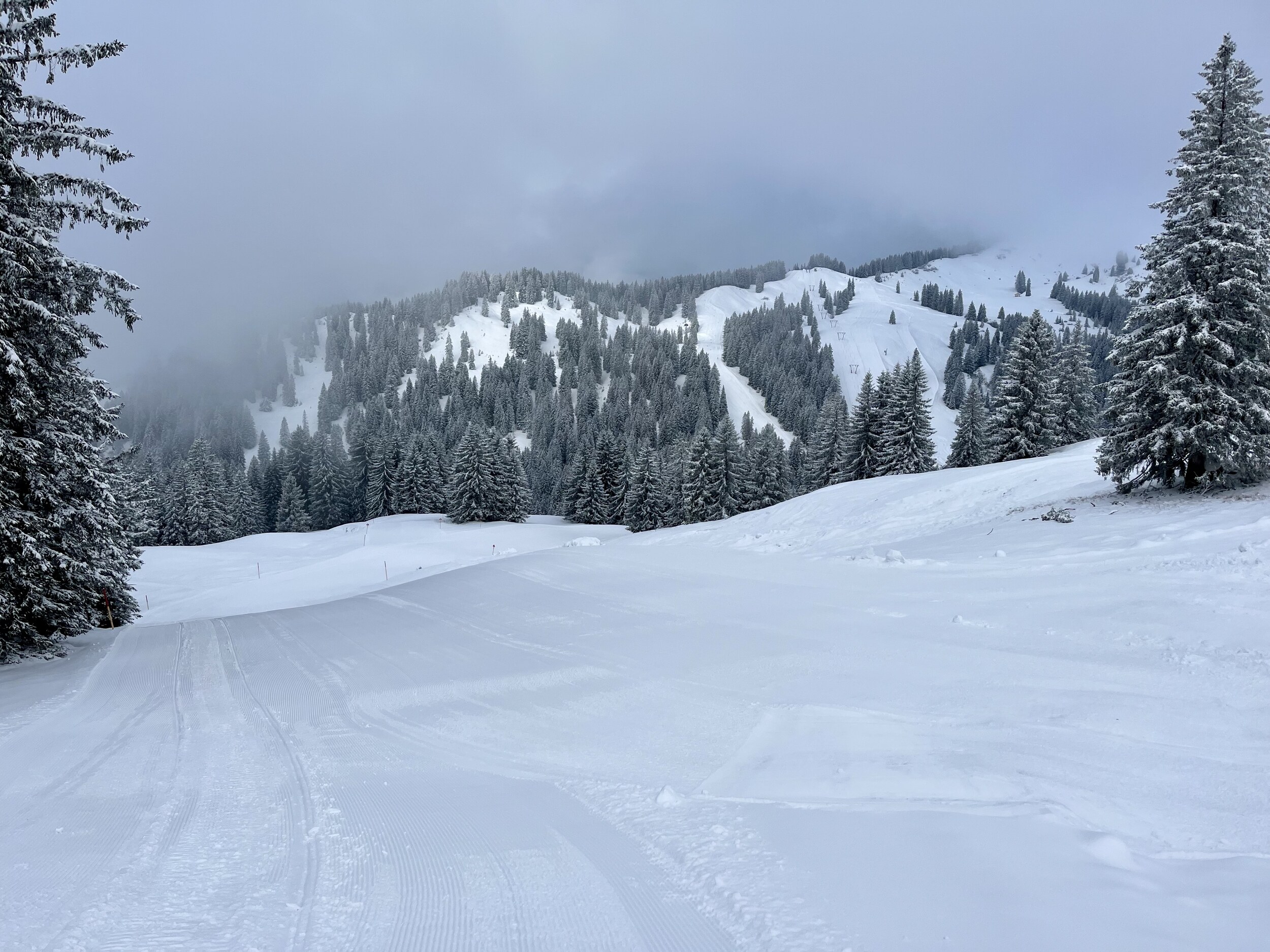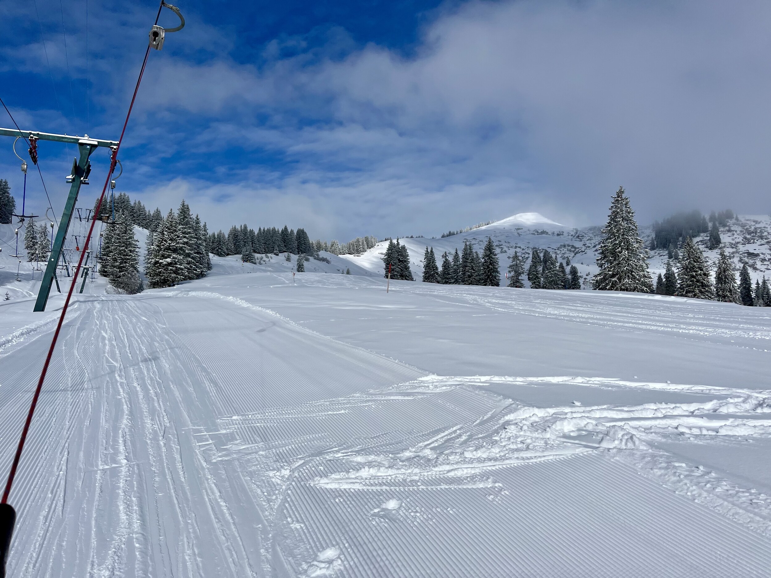 Im Tagesverlauf zunehmend Aufklaren und immer bessere Fernsicht. Die Pisten hielten erstaunlich gut. Gegen 12 Uhr wurden sie durch den Neuschnee zwar deutlich aufgefahren, blieben aber weiterhin gut beherrschbar. Für mich persönlich einer der besten Skitage des Winters.