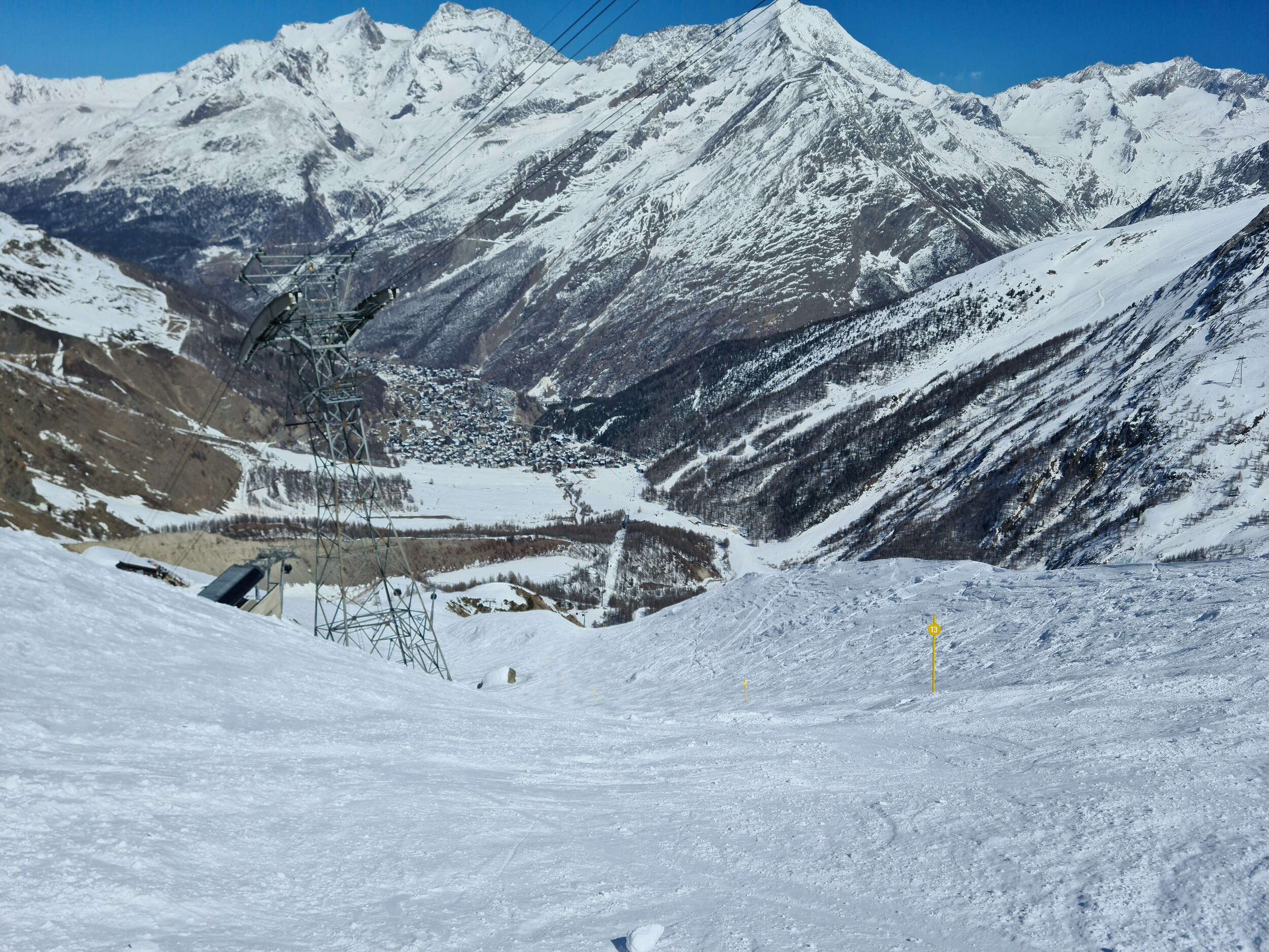 Am 03.04. war ich das erste Mal in Saas-Fee. Die Gletscherlandschaften sind definitiv beeindruckend und schön. Negativ ist mir aber aufgefallen, dass es (wohl auch dank Feiertag) an vielen Liften bis mindestens Mittag einige Minuten Wartezeit gab und durch die wärmer gewordenen Temperaturen die Pisten im unteren Skigebietsteil sulzig wurden. Die Pisten waren sonst soweit gut und hatten soweit ich es gesehen habe auch genug Schnee, oben war noch etwas pulvriger Schnee, weiter unten dann erwartungsgemäß wärmer. Insgesamt gibt es von mir für den Tag 8 Punkte.