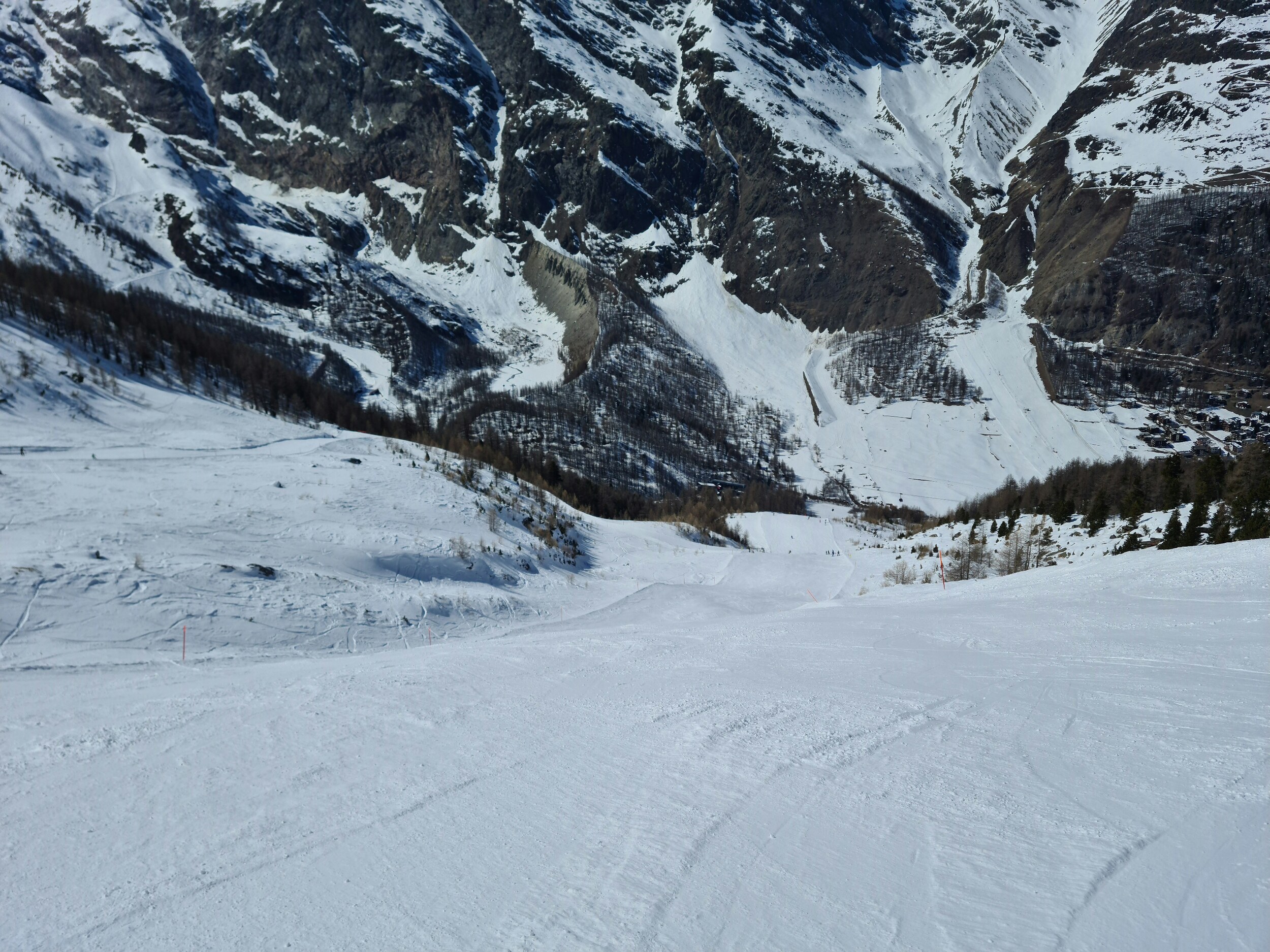 Auch heute herrschten wieder beste Verhältnisse mit hart-griffig bzw. pulvrigen Pisten. Die Piste an Allalin 2+3 ist nun auch deutlich kompakter geworden und nicht mehr so schnell ausgefahren wie noch gestern. Präparierung war auch wieder besser als gestern. Einzig auf den Talabfahrten gibt es ein paar abgerutschte Stellen. Der allerletze Hang der 2 (Galen) am Plattjen (jene nach der Kreuzung mit der 3) war eisig und schlecht zu fahren, dort wurde es gestern Abend sulzig. Ansonsten herrschen aber durchgehend winterliche Bedingungen.
