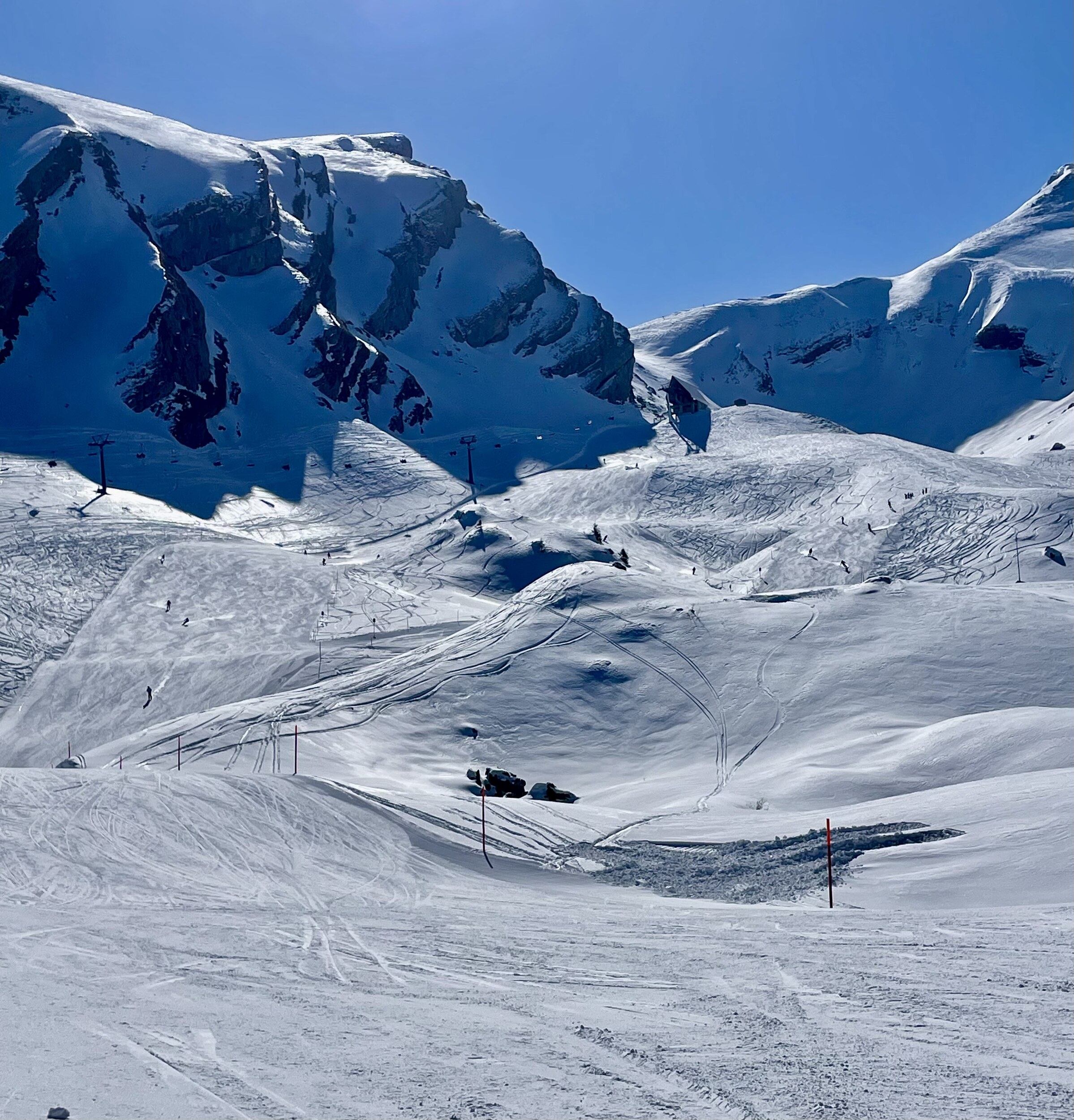 So nun übernehme ich die Berichterstattung hier von ski-chrigel für die letzten paar Tage der Saison. Heute war ich zusammen mit meinem Vater am „Seppitag“ im Gebiet unterwegs. Gut gefüllt, aber für einen Feiertag nicht schlimm.