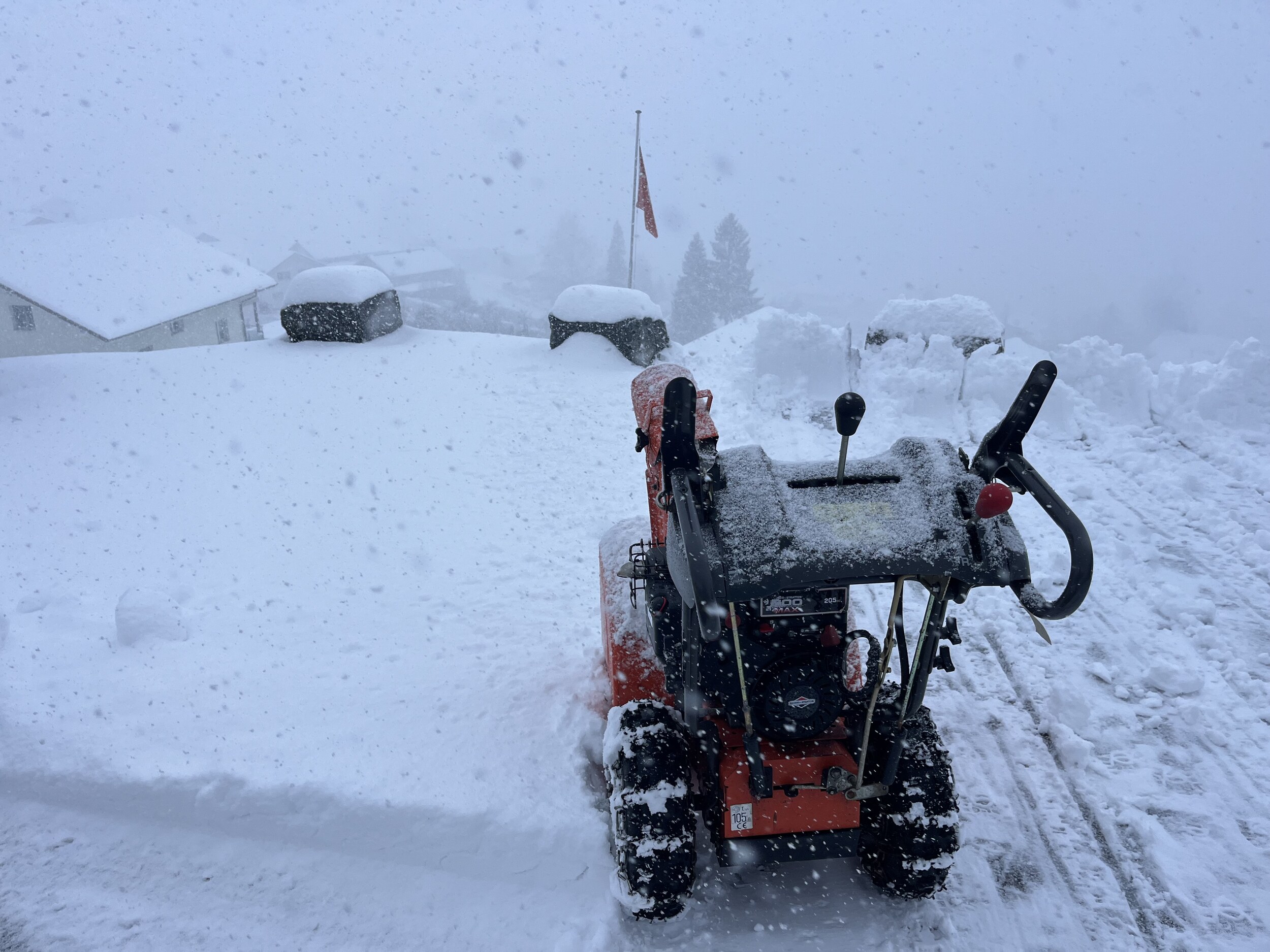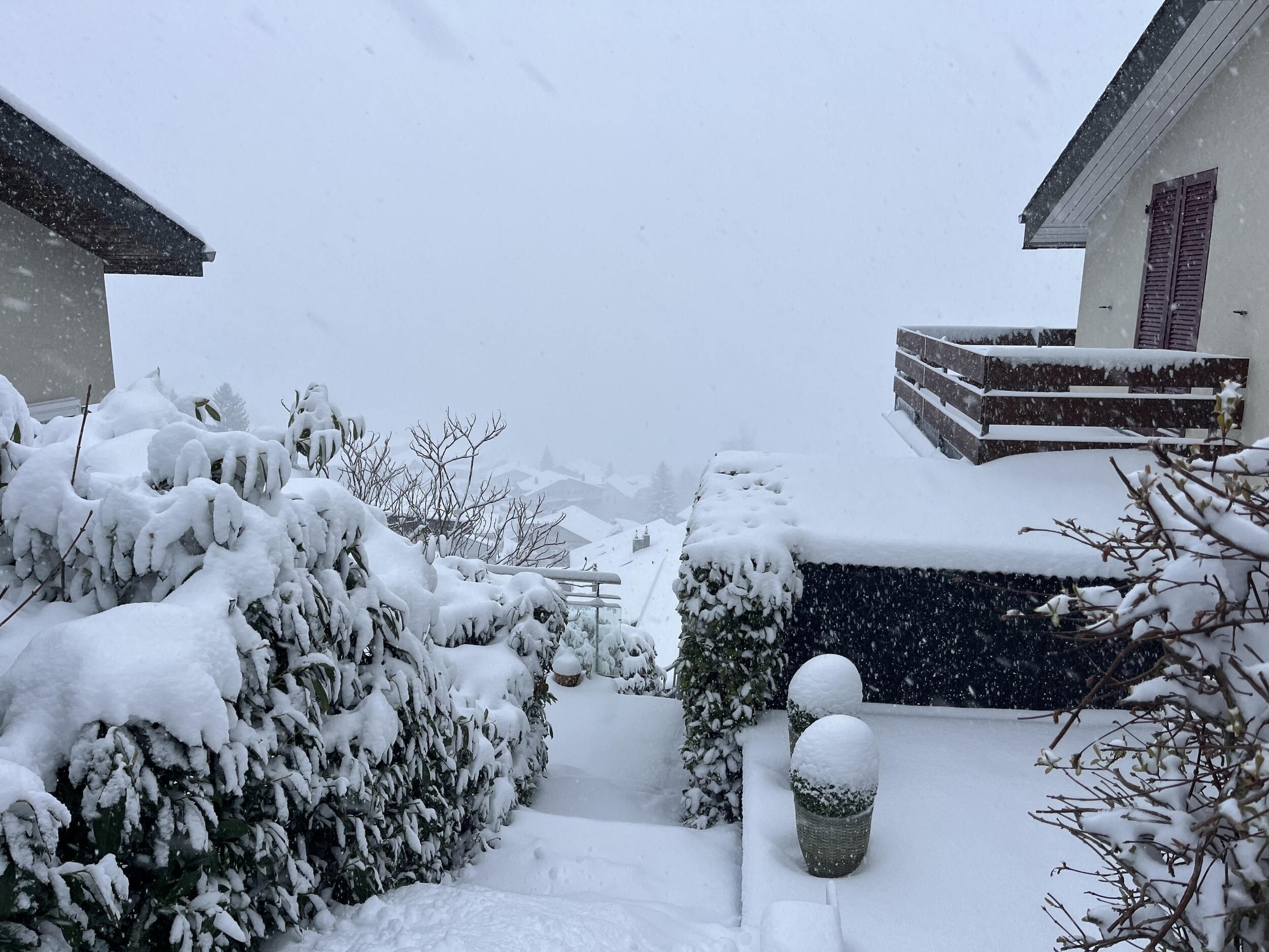 Über Nacht wieder 15cm und die nächsten Tage soll noch viel mehr dazukommen. Ein Jammer, dass dieser Schnee nicht im Dezember oder Februar kam.