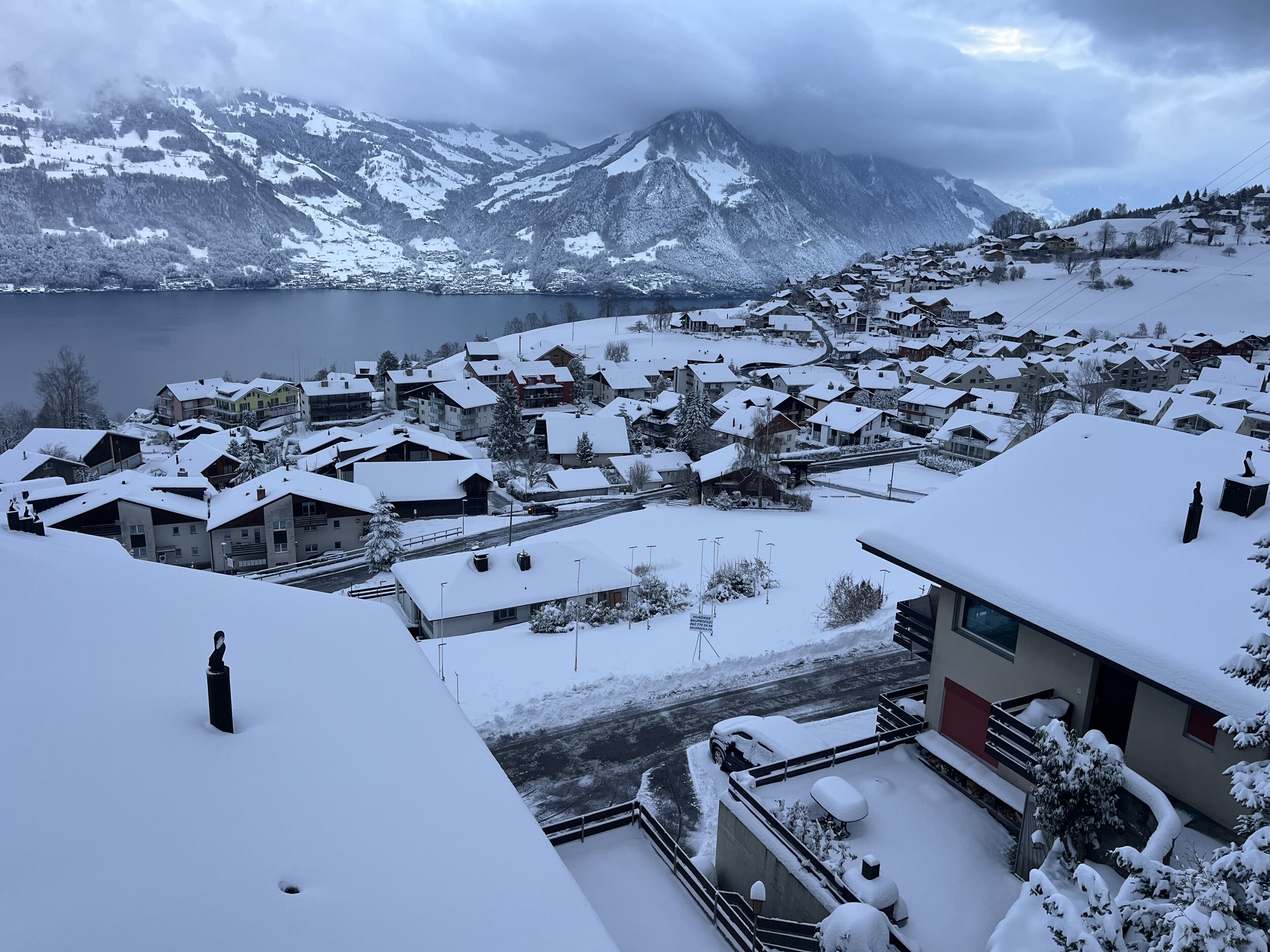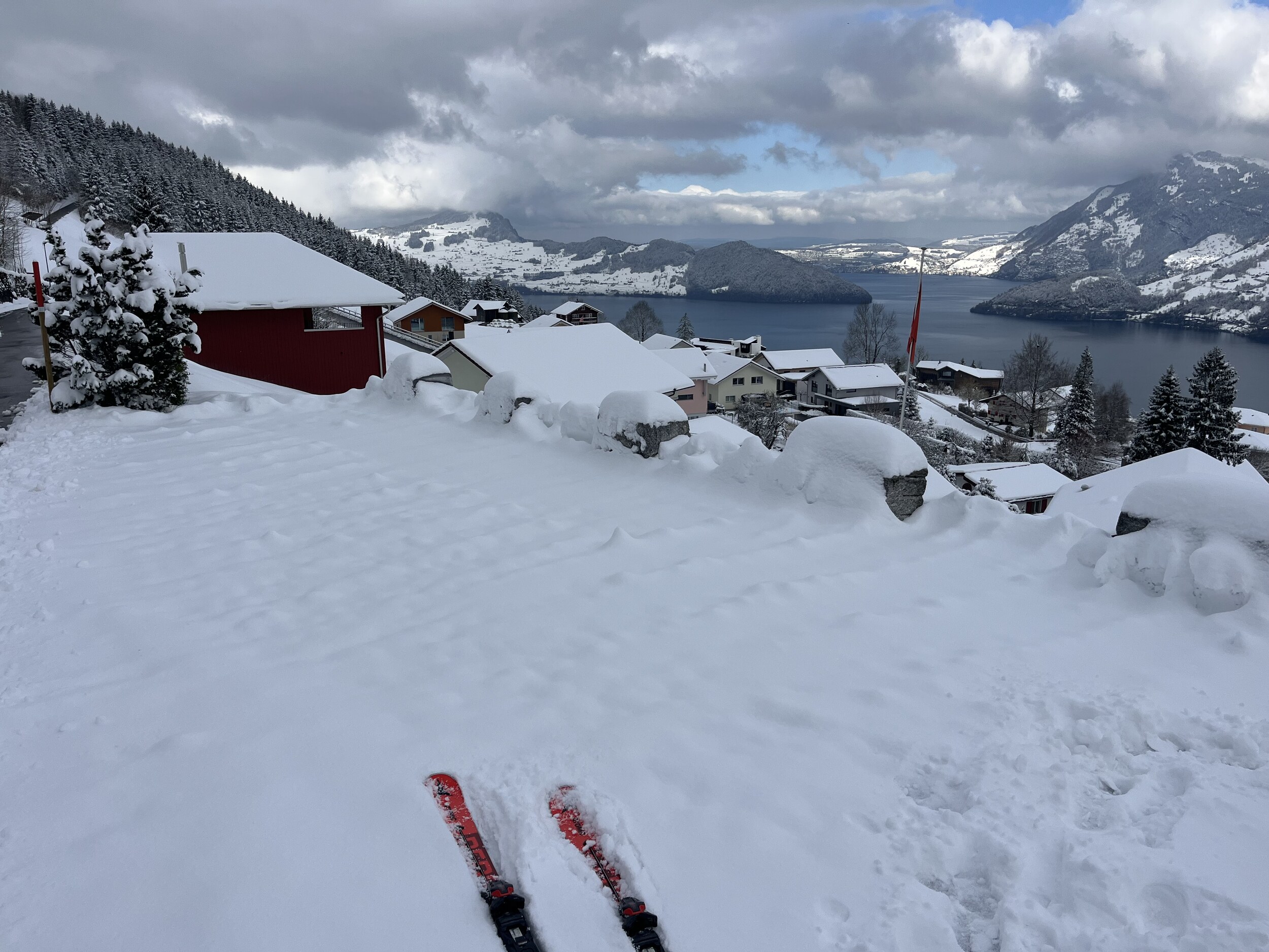 Der aktuelle Schnee wäre auch besser an Weihnachten gekommen. Aktuell 15cm in Emmetten und es schneit weiter wie verrückt.