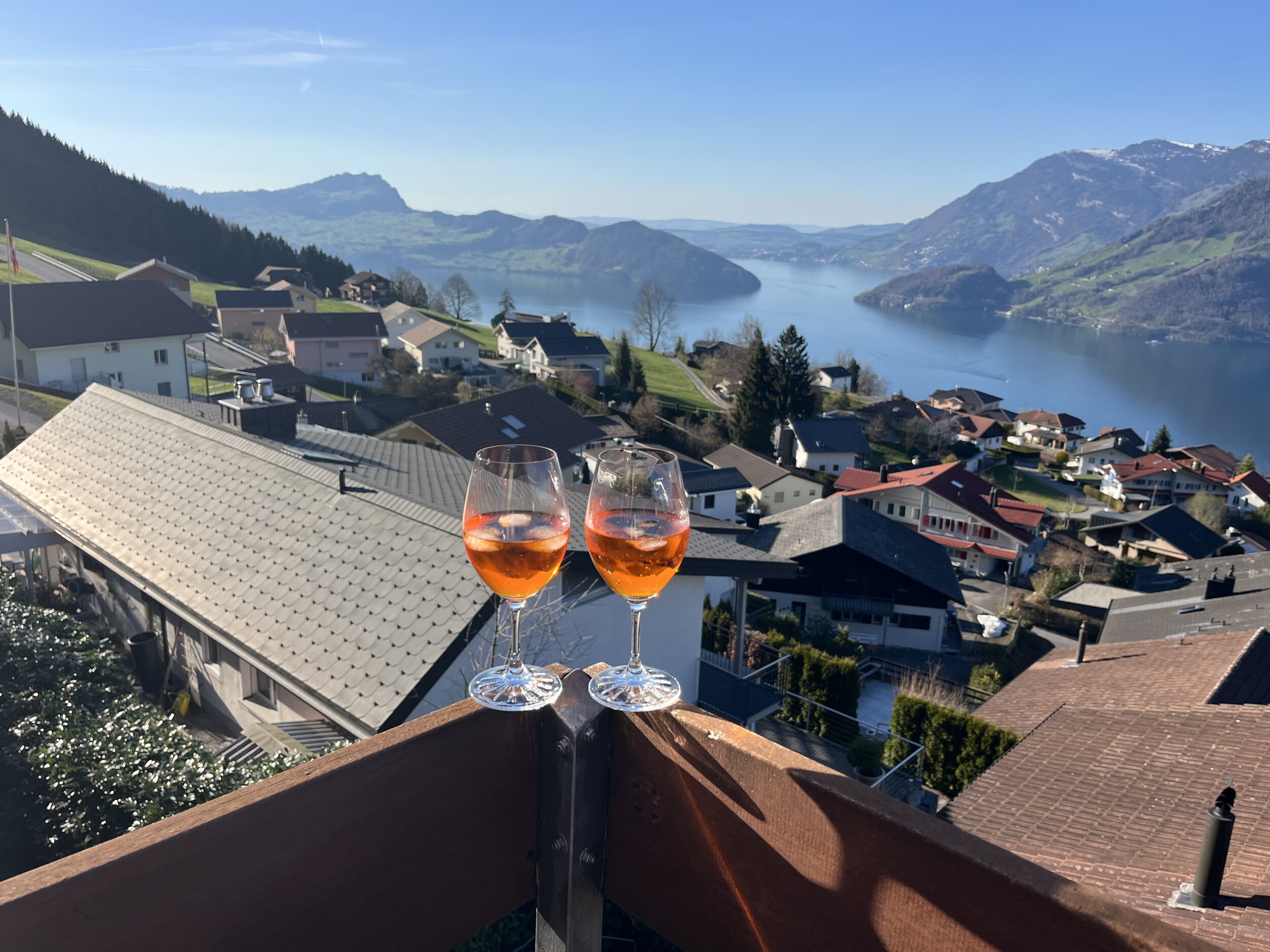 Krass. Am Donnerstag sind wir im tiefsten Winter hier losgefahren. Heute eröffnen wir die Balkon-Apéro-Saison (da etwas überraschend noch völlig unorganisiert).