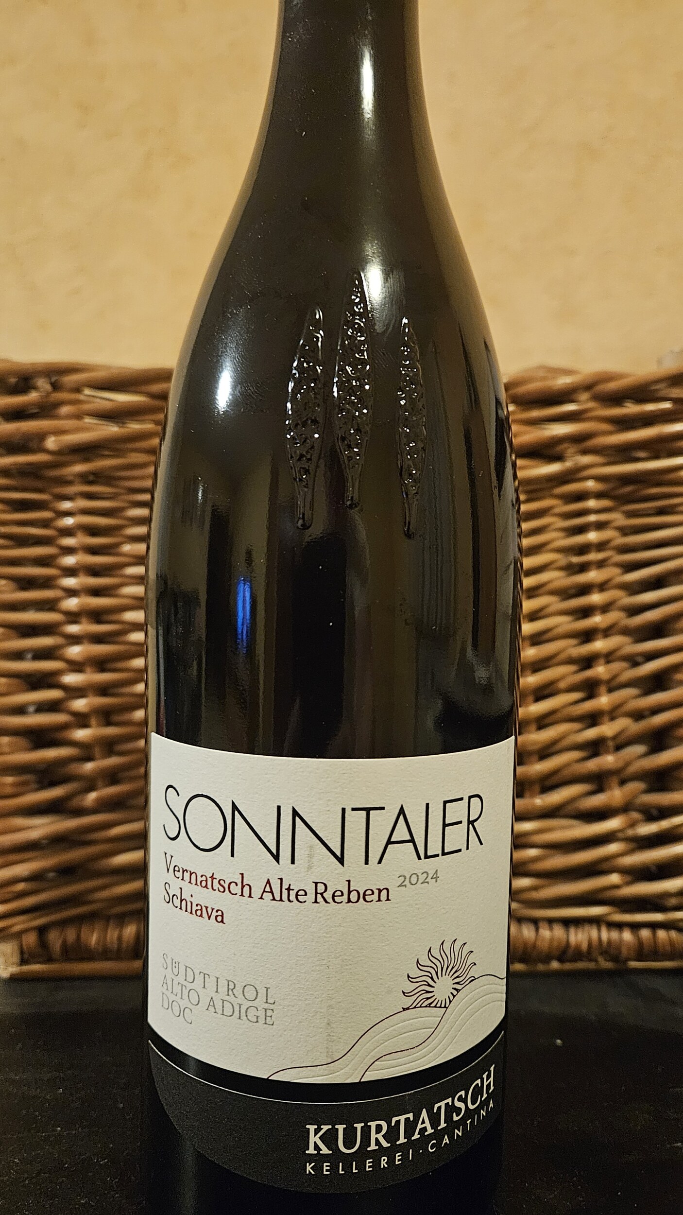 Berichtstechnisch bisher auf der Strecke geblieben, obwohl ich schon die halbe Kiste aufgebraucht habe: 2024er Vernatsch Alte Reben Sonntaler von der Kellerei Kurtatsch mit 12,5 Vol%.